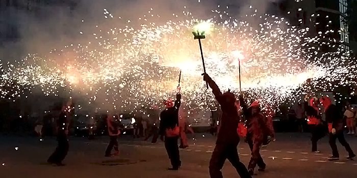 Amb l’encesa de la foguera per part dels diables, començava el Correfoc de Sant Joan! Desenes de curiosos i fans de la pólvora ens van acompanyar al llarg del recorregut, ple de foc verd, vermell i groc! Molts turistes, com sempre, van al·lucinar amb la marxa dels cremadors i tabalers. Amb el retorn a la foguera i una encesa final, vam cloure la celebració amb els companys de l’Esquerra Infernal. Això si, abans de marxar, vam gaudir del ambient de tot el veïnat que havia baixat a sopar a la revetlla, amb unes rondes de cerveses i salivant per la botifarrada organitzada per les entitats i col·lectius d’aquest barri barceloní.