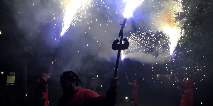 La Castanyada per Diables de Les Corts la celebrem, any rere any, amb un espectacle de foc i percussió a la Residència Sanitas Les Corts!