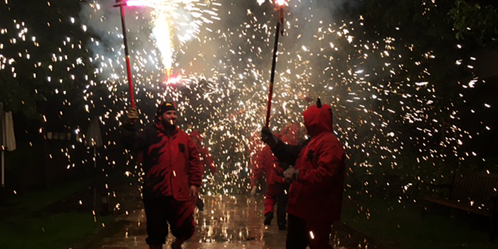El passat dimecres 18 d’octubre, tot i la pluja, vam poder realitzar l’espectacle de foc i percussió que teníem preparat per treure un somriure als nostres veïns més grans. Vam omplir el pati de llum i color amb les espurnes dels diables que ballaven sense parar, tot al ritme dels tabals.