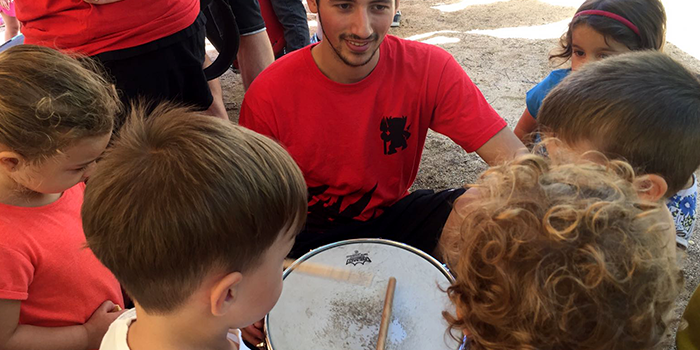 Així doncs, els tabalers de Diables de Les Corts vam col·laborar amb la gran festa de final de curs el passat divendres 30 de juny de l’Escola Bressol Municipal “La Granota” del Prat de Llobregat. Un matí ple de somriures i mirades curioses amb els infants del centre. Des de un petit taller on descobrien els diferents instruments i sons de la percussió, així com els ritmes de cançons infantils adaptades per l’ocasió per part de la colla. I com es tradició, tampoc hi va faltar una tabalada de rigor, on fins i tot un pare es va afegir a l’actuació, tot baixant el seu instrument per acompanyar la gran festa de “La Granota”.