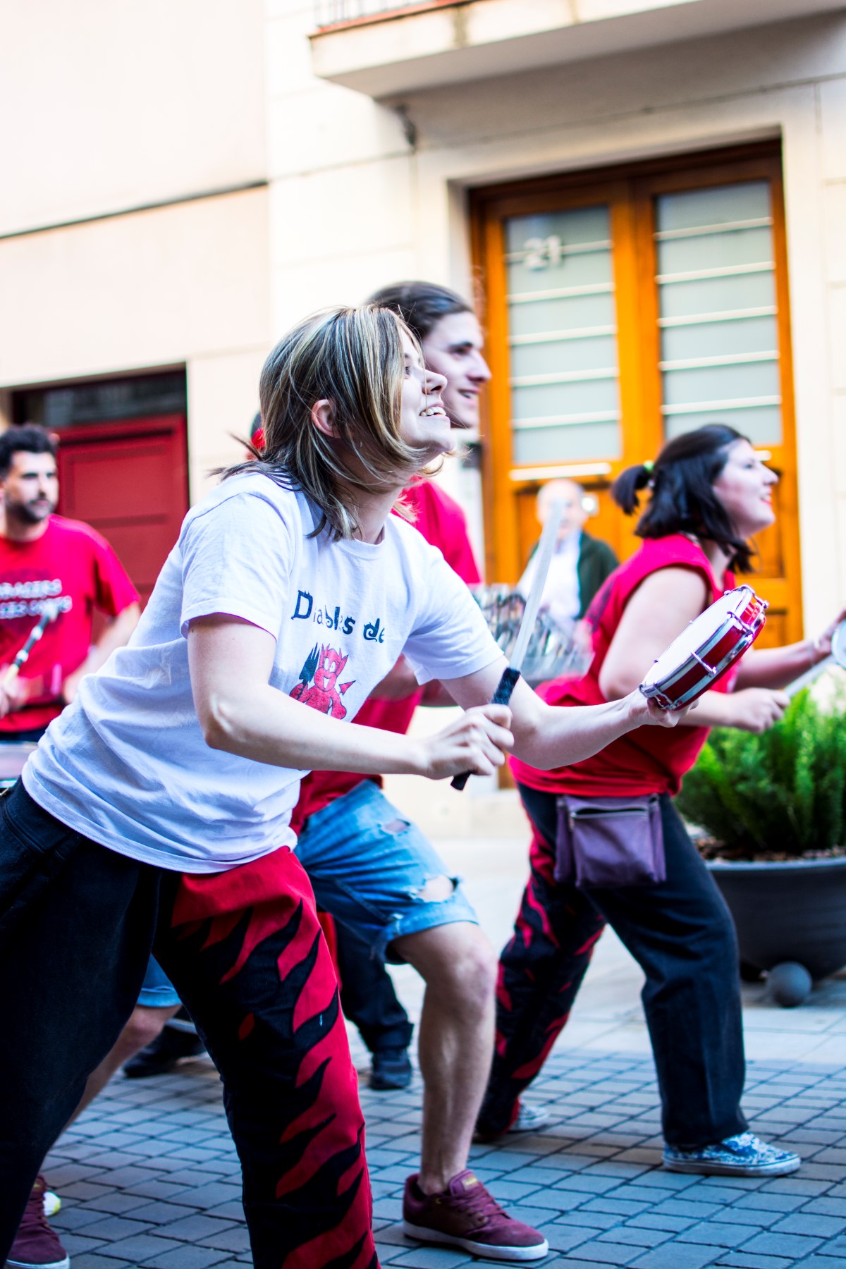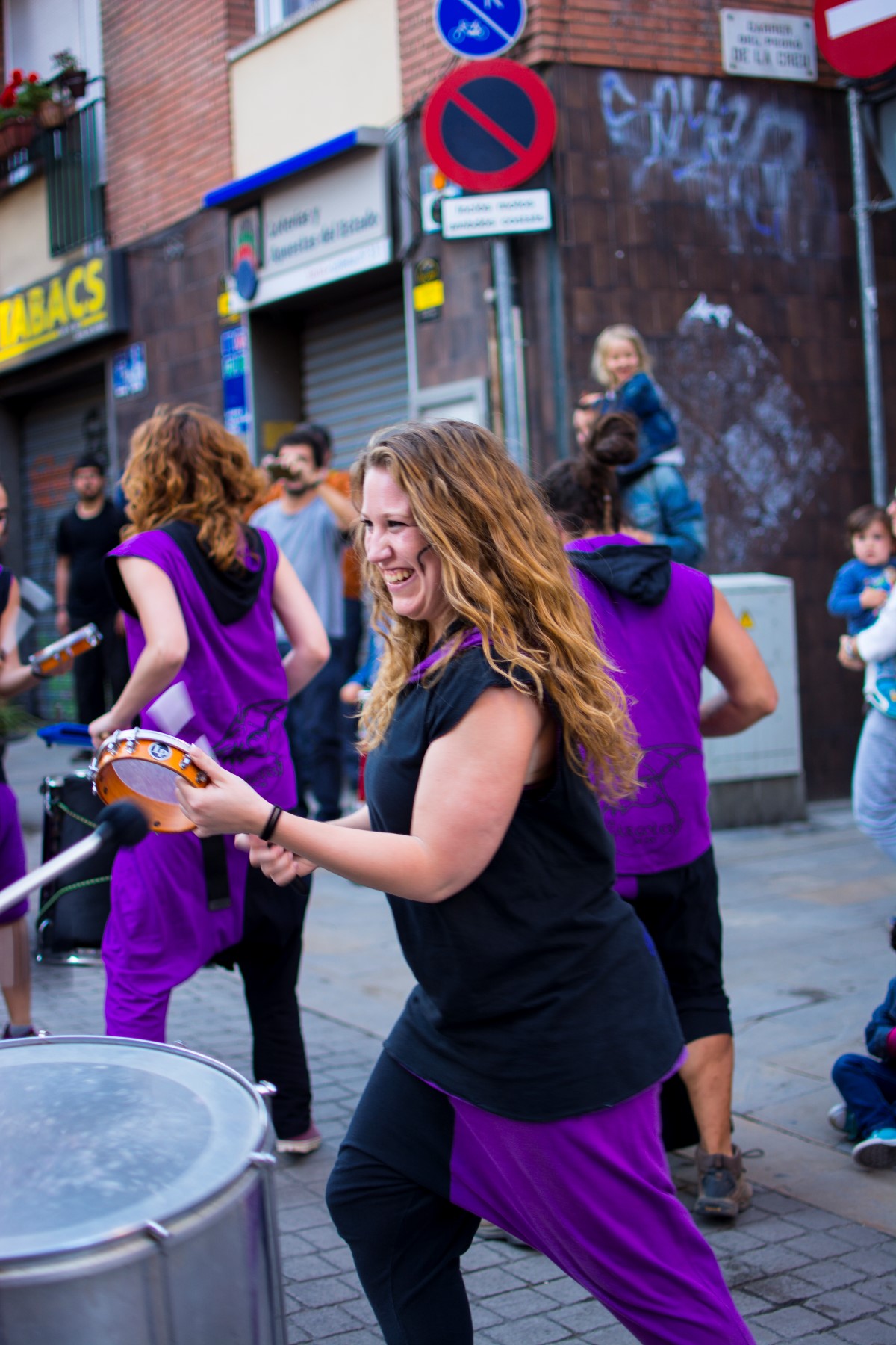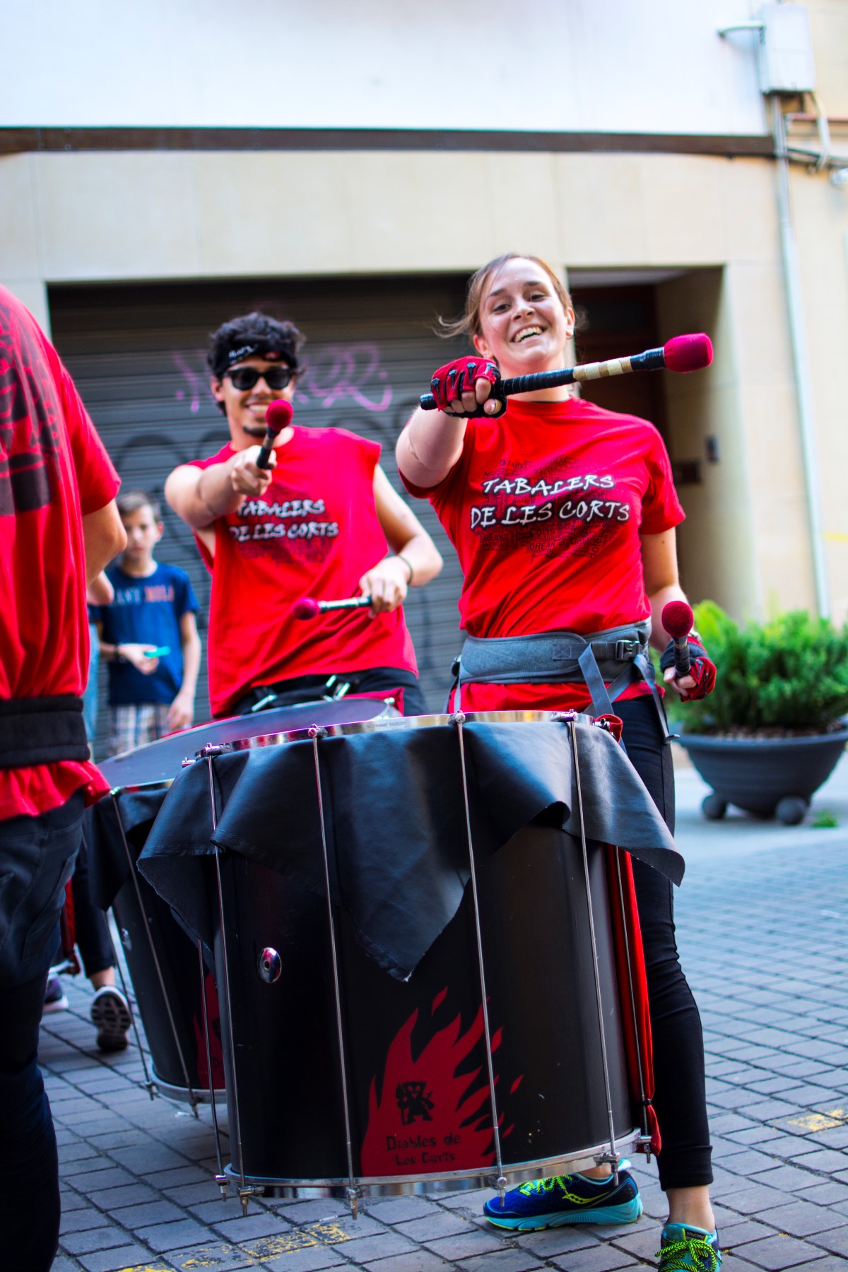 A la tarda el cercavila de percussió al llarg de Major de Sarrià va omplir de banyes, picarols i d’un ritme atronador tot el recorregut, amb un gran seguiment del veïnat. Fins i tot una família va sortir des de el seu balcó a tocar amb els seus instruments al pas dels tabalers!