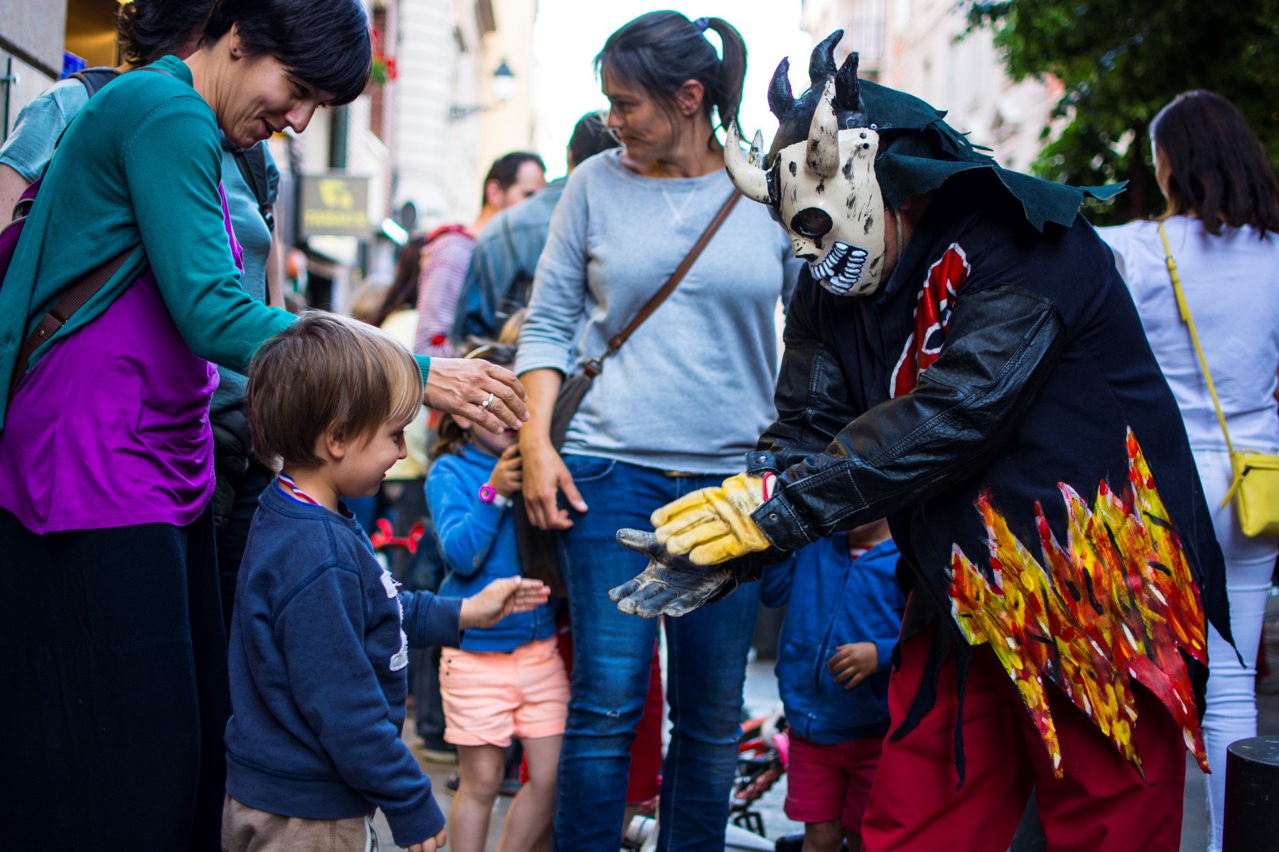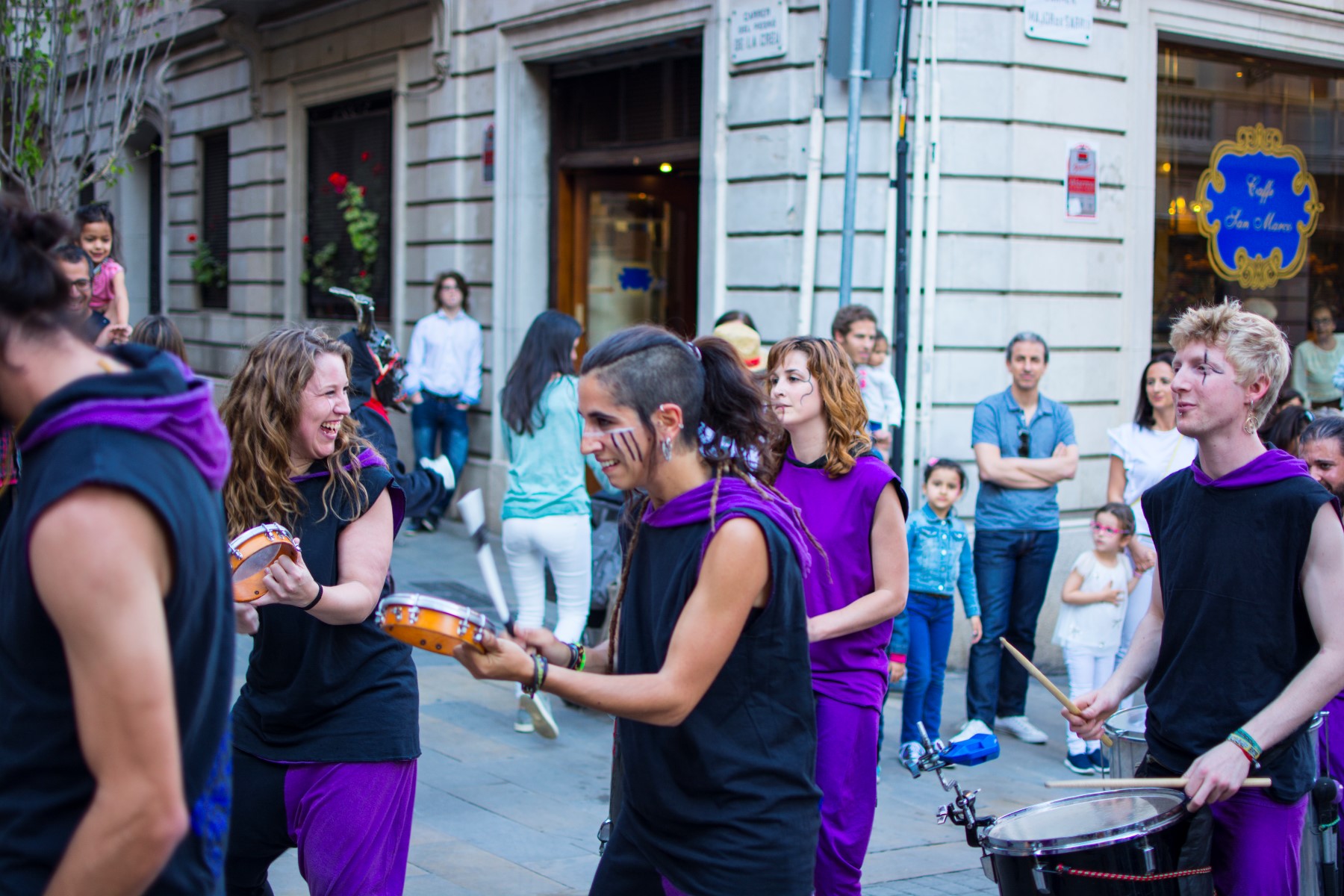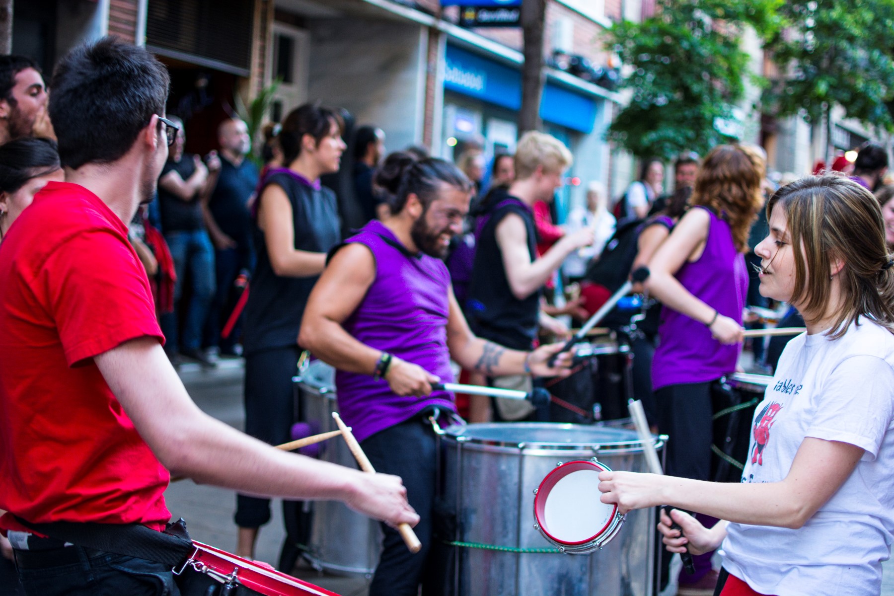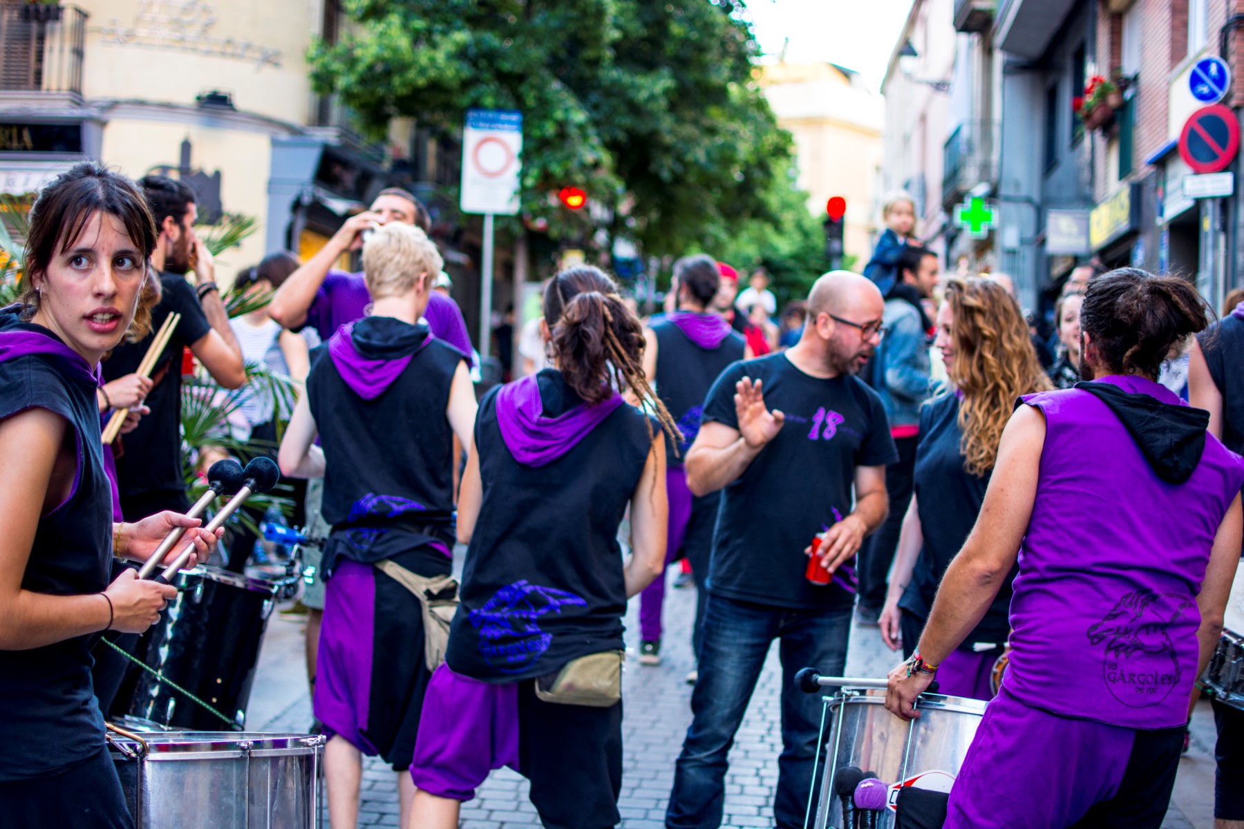 A la tarda el cercavila de percussió al llarg de Major de Sarrià va omplir de banyes, picarols i d’un ritme atronador tot el recorregut, amb un gran seguiment del veïnat. Fins i tot una família va sortir des de el seu balcó a tocar amb els seus instruments al pas dels tabalers!