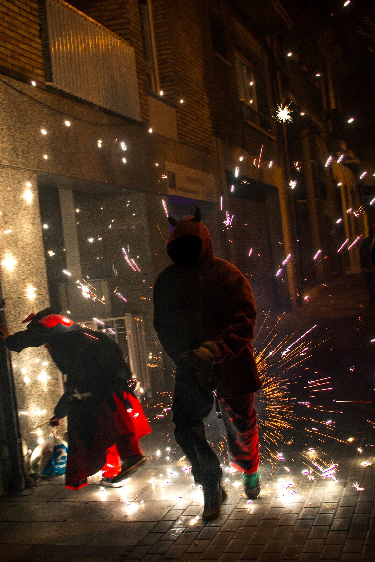 Al arribar a la Plaça de l’Església de Sarrià, es va realitzar l’espectacle pirotècnic per donar l’inici al Correfoc pels carrers i places del nucli antic del barri. Totes les colles ens vam congregar al final del recorregut, a la Plaça Sant Vicenç, pel gran final: l’encesa del sostre de carrutxes a plaça. Com a cloenda, tots plegats vam anar amb l’animació dels tabalers de Sant Vicenç a l’Església de Sarrià, per realitzar l’encesa de lluïment final de totes les colles i la gran ceptrotada.