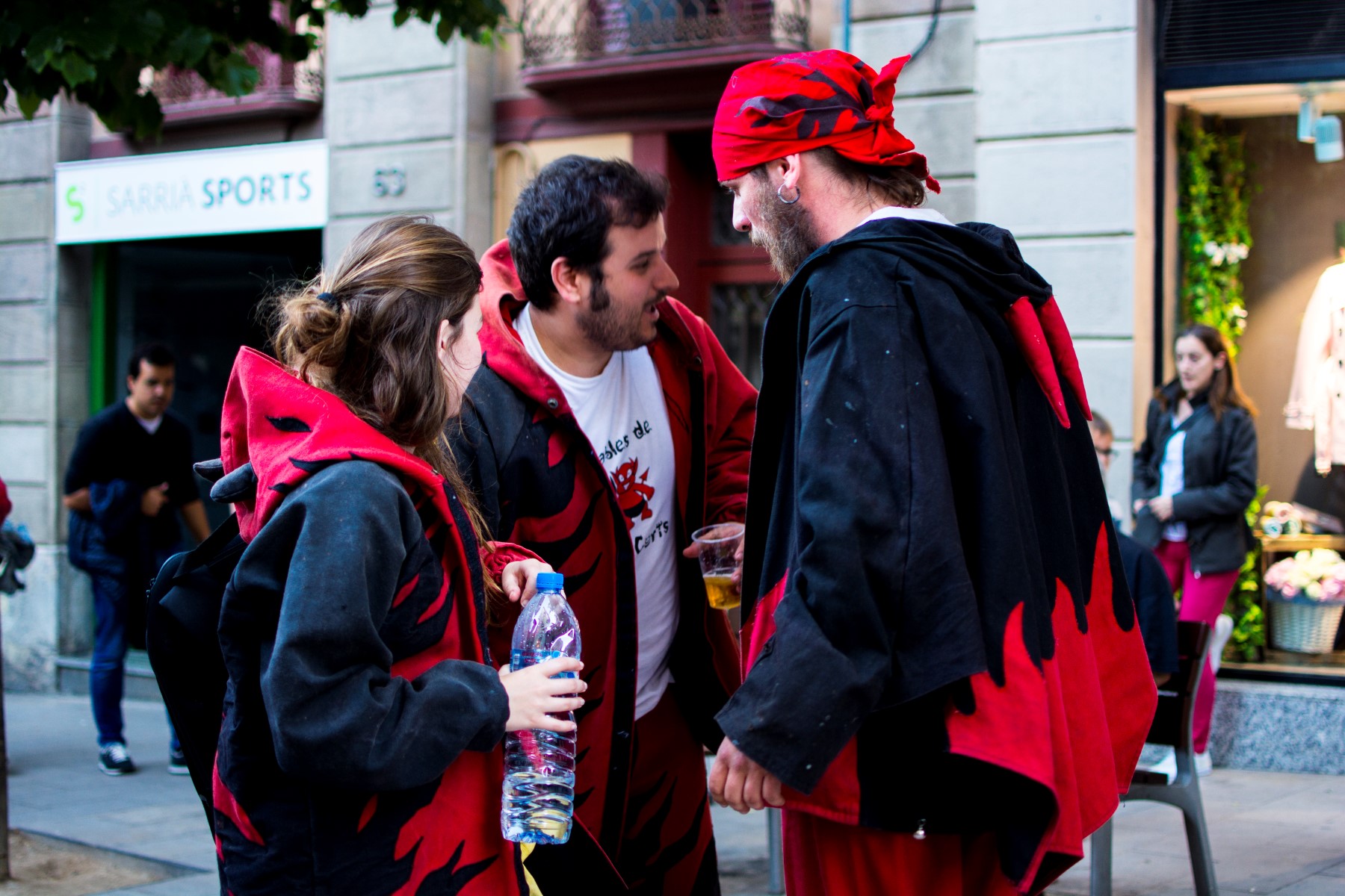 La diada pels més matiners va començar amb el despertar diabòlic plena de traques i l’actuació dels Trabucaires de Cardedeu pels carrers del casc antic de Sarrià. Desprès d’esmorzar per agafar forces, alguns diablillus van ajudar al muntatge del sostre de pirotècnia de Diablesses i Diables de Sarrià a la Plaça de Sant Vicenç, el gran final preparat pel correfoc de la nit! Diables de Les Corts ens vam reunir tots junts per gaudir al migdia del dinar de germanor amb la resta de colles convidades a la Porta de Sarrià: una bona fideuà, amb taronges i ensaïmada de postres (gràcies als companys diables vinguts de Sagunt i de Mallorca respectivament).