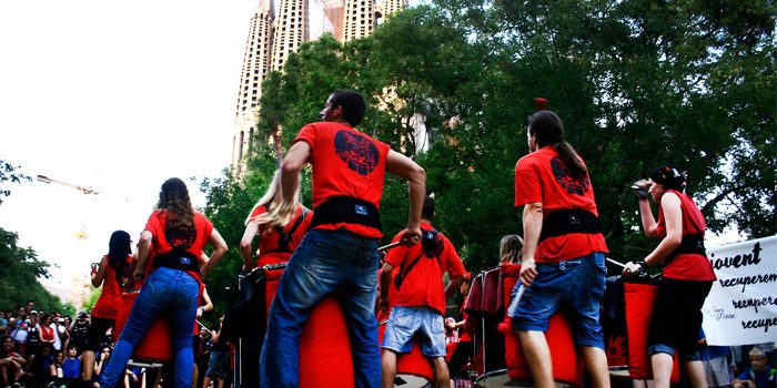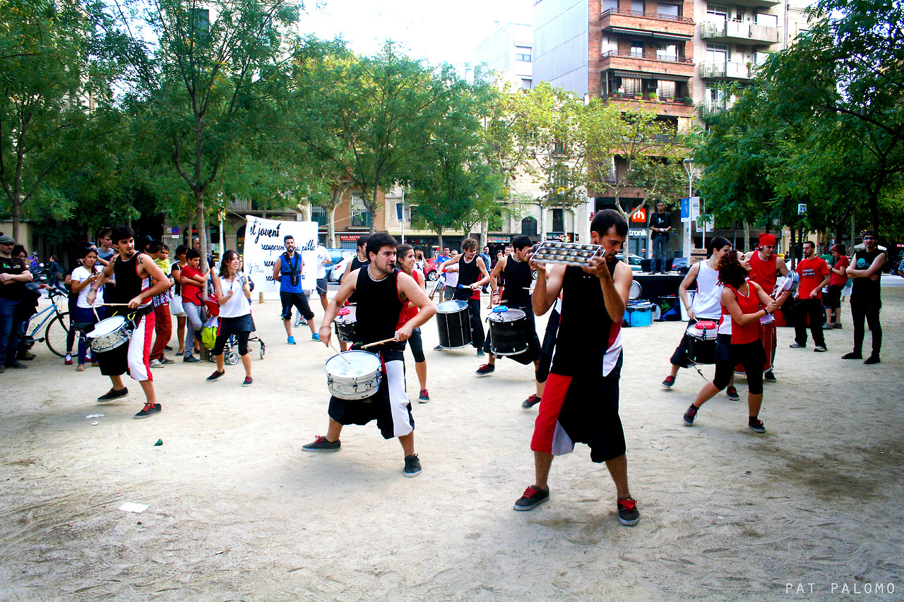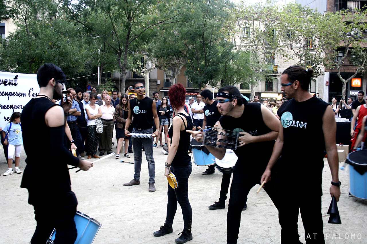 Un diumenge d’octubre amb un sol radiant. Un clima perfecte pel gran 1º Aniversari d’Insomnia Batucada, els nostres amics del barri de la Sagrada Família! Aquest projecte de percussió va encetar el passat 19 d’octubre una diada commemorant els seus primers 365 dies d’existència amb l’assistència -com a convidats de luxe- de la Banda d’en Pere Botero de Salt, Batinkat d’Igualada i els nostres Tabalers de Les Corts!