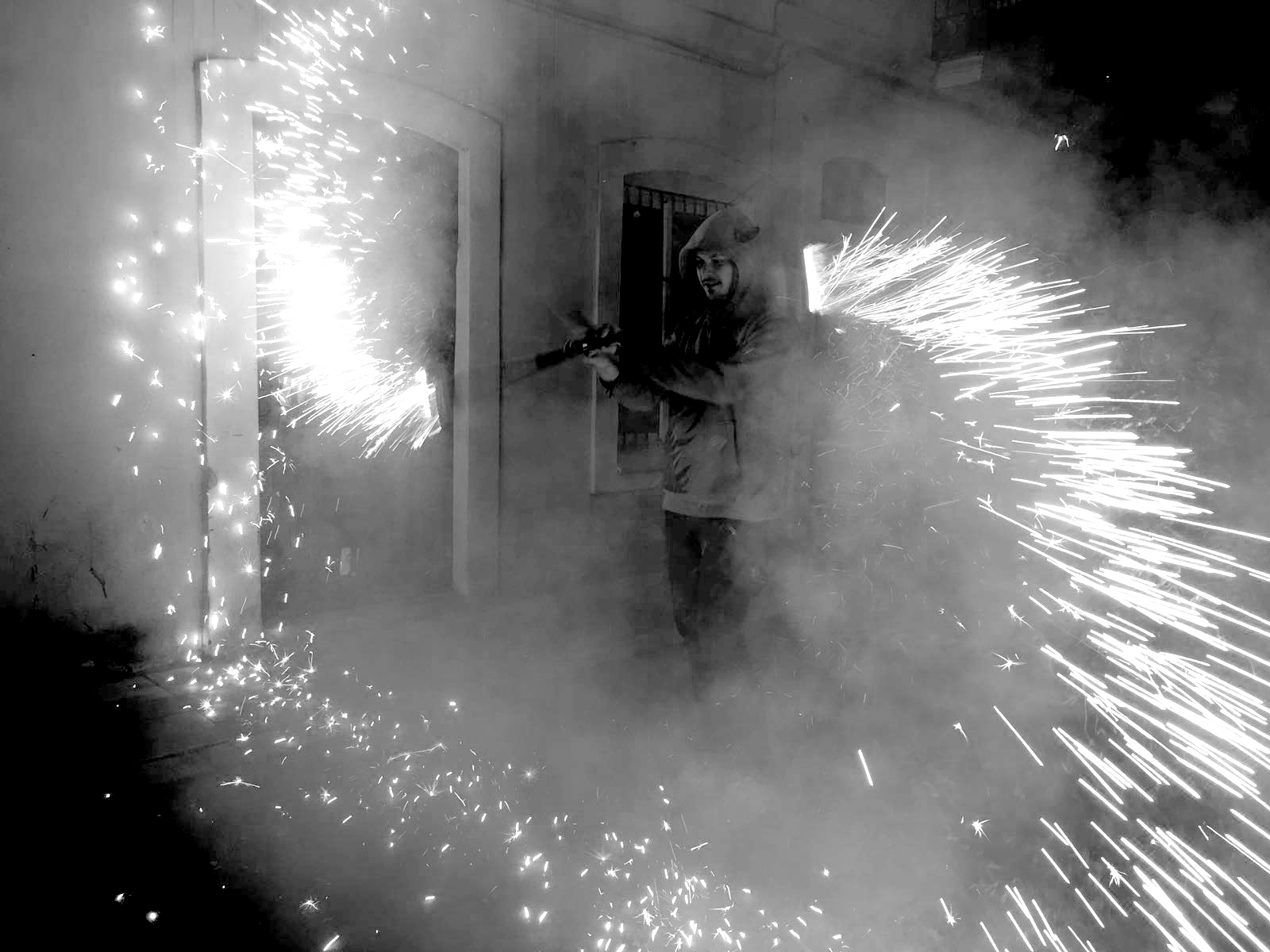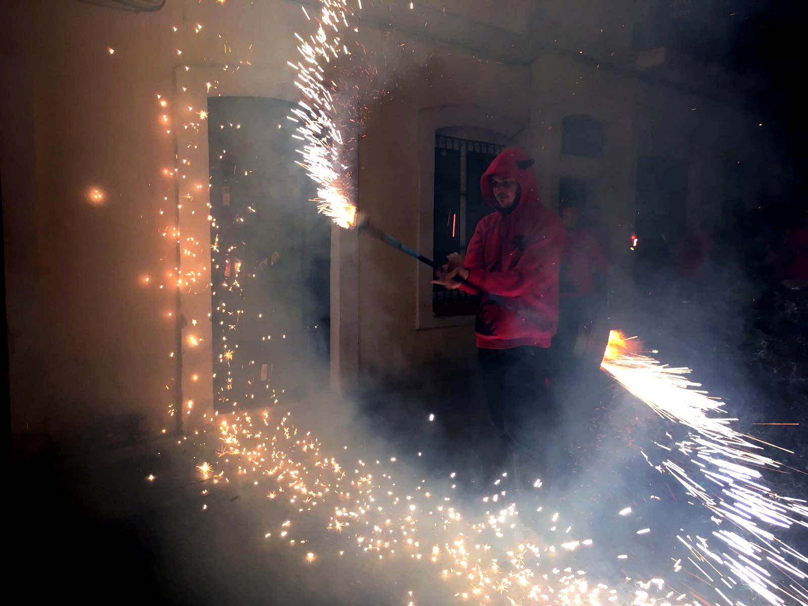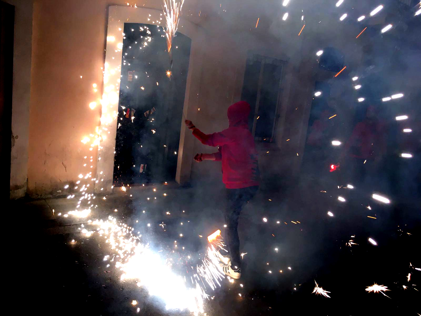 Des de les sis de la tarda, vam atabalar la Vila de Gràcia -en format cercavila- per donar el toc d’inici a aquesta particular festa. En acabar, davant de la porta de la clínica, vàrem realitzar un espectacle de foc, amb malabars, bufadors i carretillada.