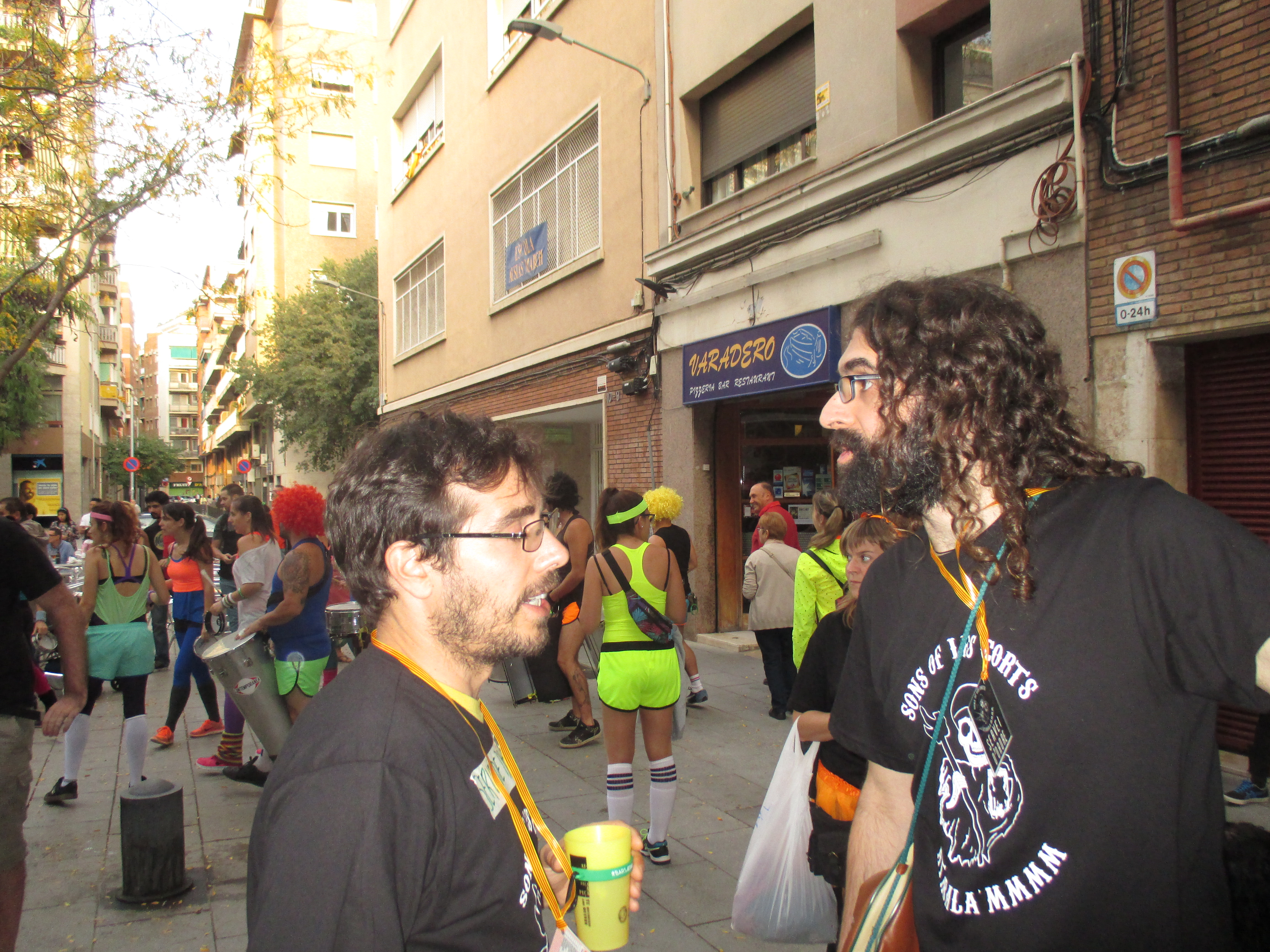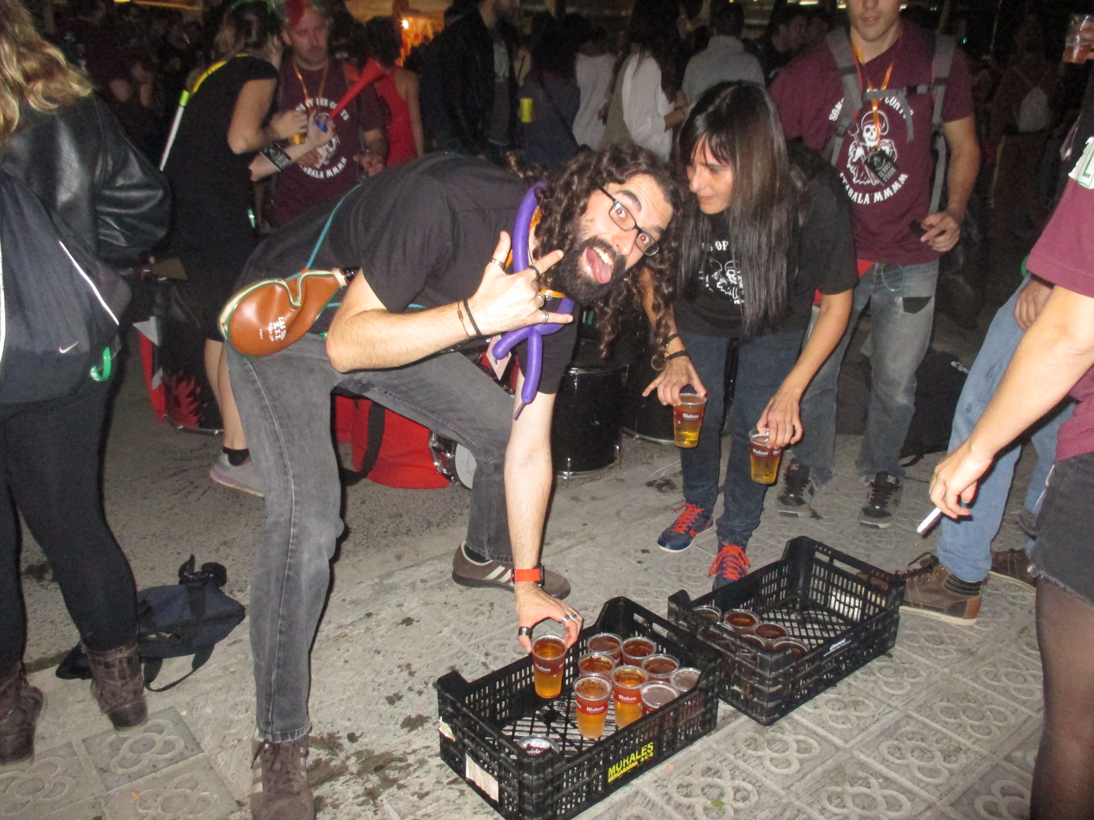Després, de 6 a 10 de la nit, ens desplacem pel barri, de bar en bar i de barra en barra, prenent birra, fent nous i inesperats amics, gaudint de la percussió… Oh! Nova menció especial: