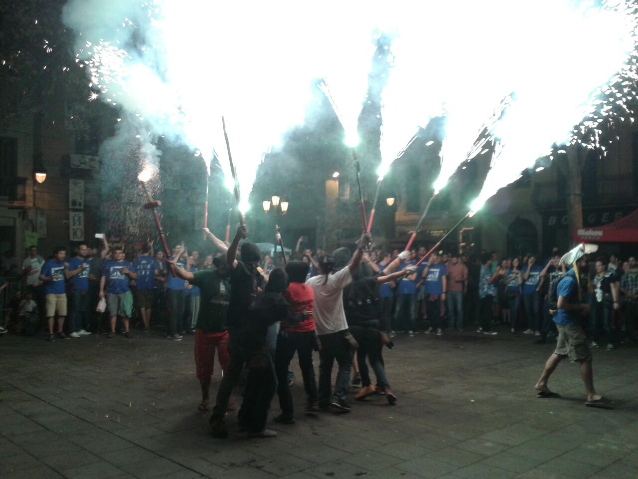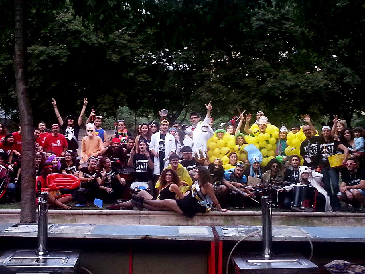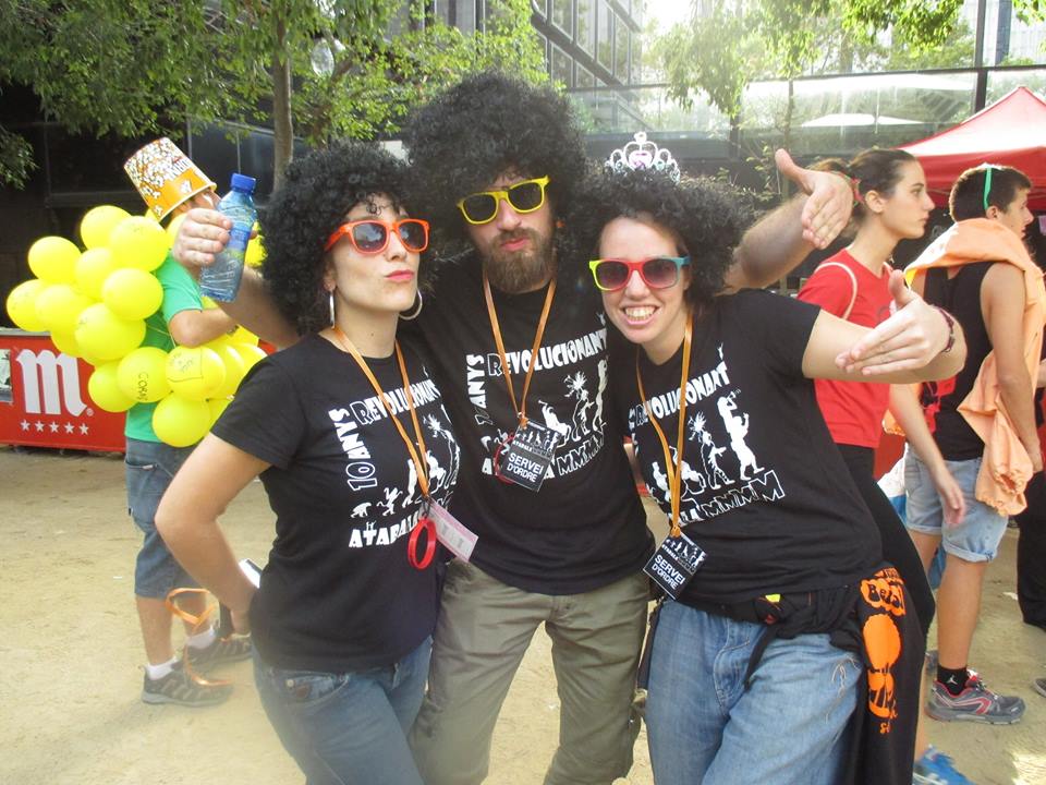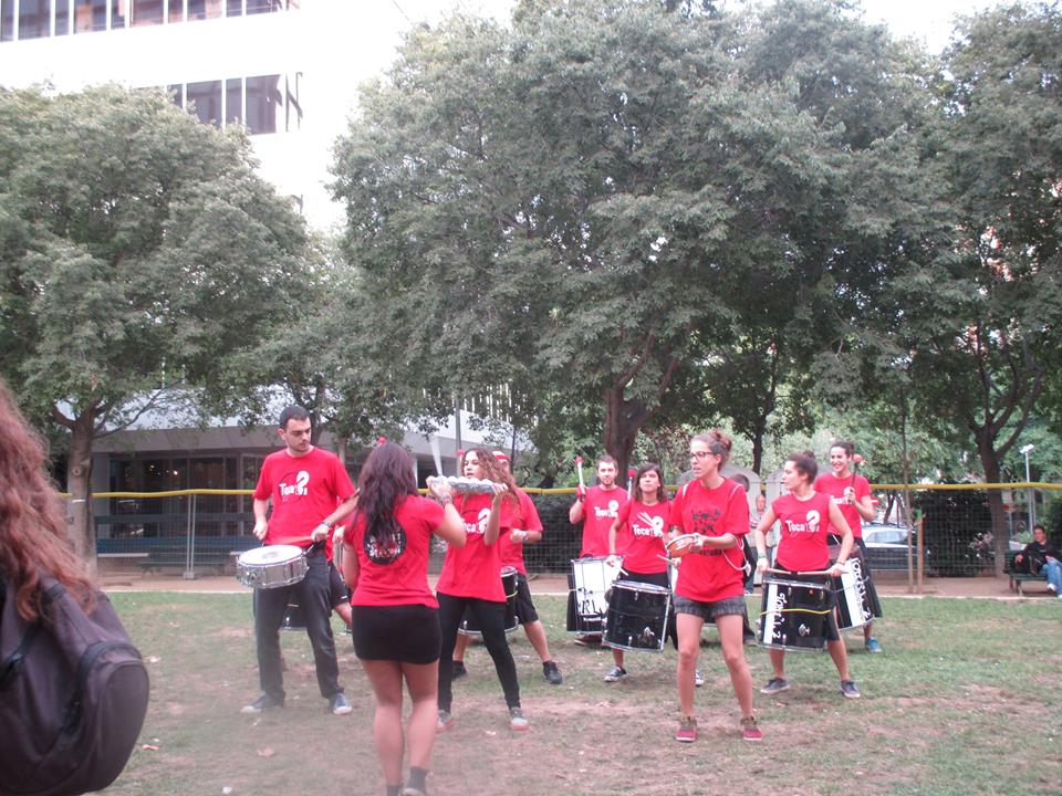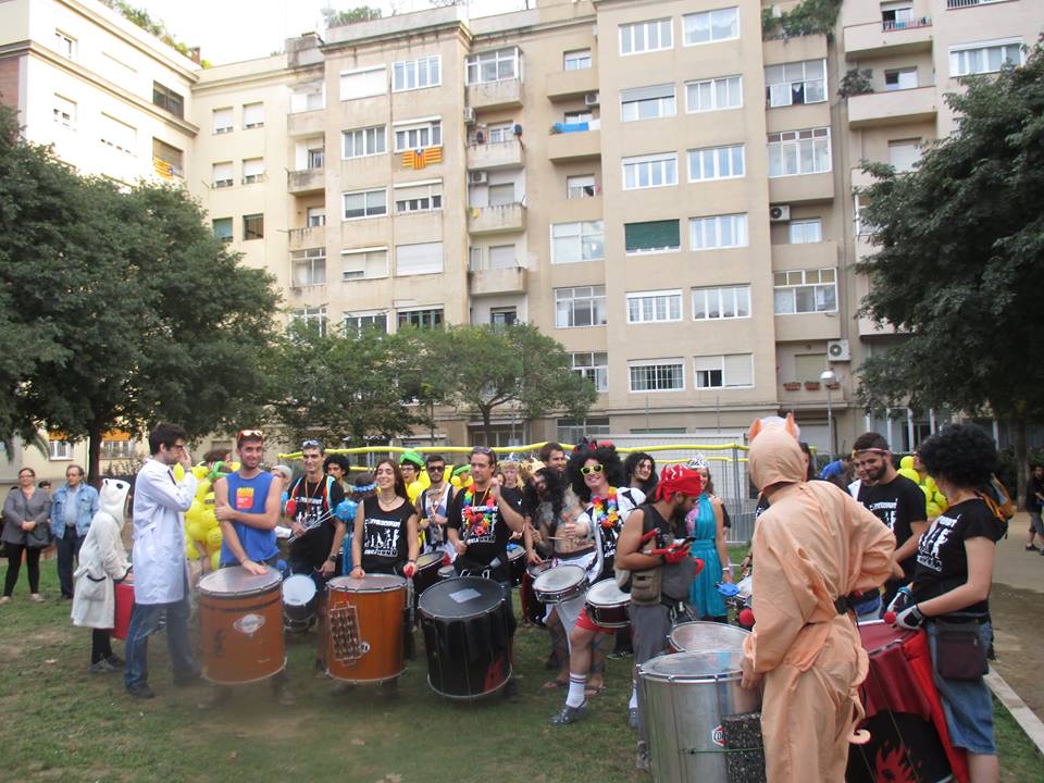 A les sis de la tarda, la comitiva va sortir dels Jardins de Clara Campoamor, seu de la Festa Major Jove de Les Corts, per recórrer el barri al so dels tabals de la nostra colla, dels nostres germans del nord, Les Gàrgoles de Foc de Banyoles i dels amics i colla convidada estrella d’enguany, els Toca’l 2 del barri de Sant Antoni de Barcelona. De bar en bar i de barra en barra de comissió, la festa es va anar animant, i cada cop tothom gaudia més i més, i nosaltres ens adonàvem que tota la feina feta (que és molta i prou feixuga i engegada des de el passat mes de juny) realment val la pena.