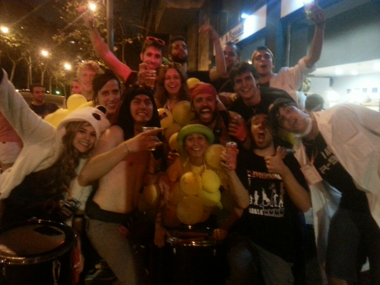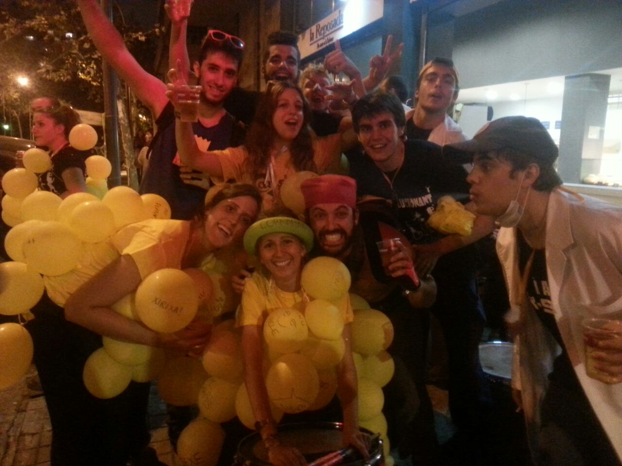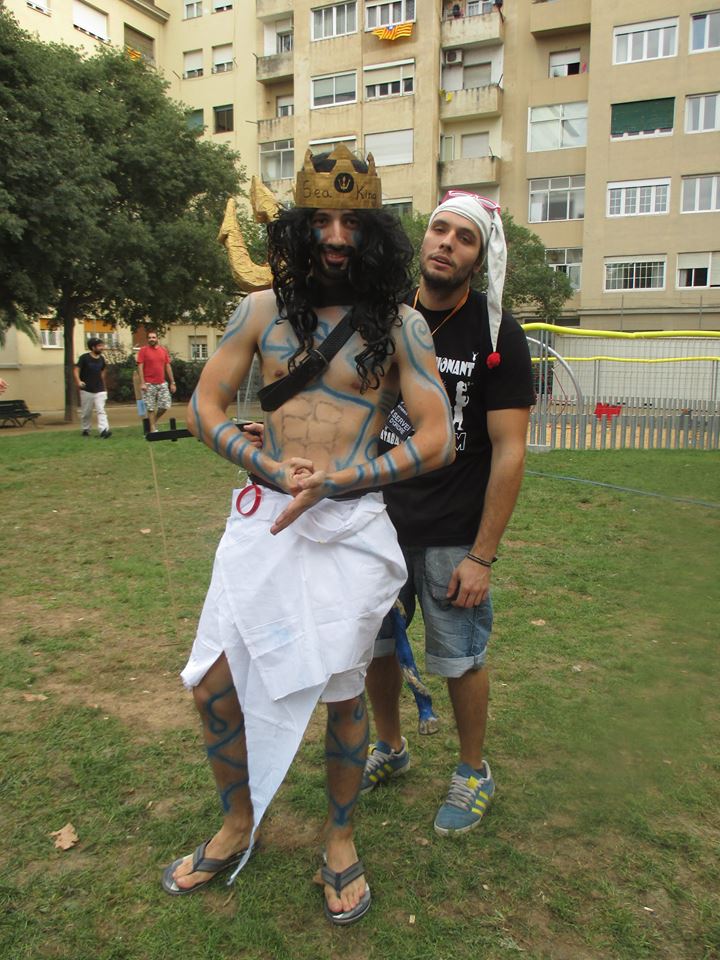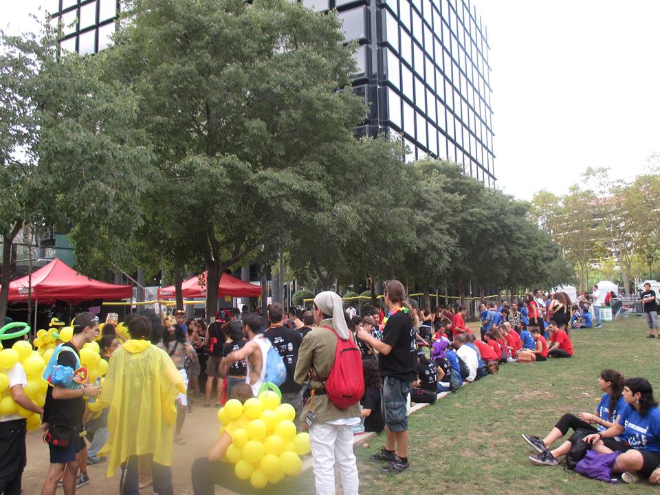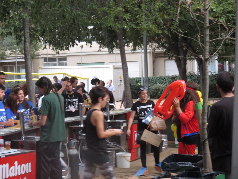 A les sis de la tarda, la comitiva va sortir dels Jardins de Clara Campoamor, seu de la Festa Major Jove de Les Corts, per recórrer el barri al so dels tabals de la nostra colla, dels nostres germans del nord, Les Gàrgoles de Foc de Banyoles i dels amics i colla convidada estrella d’enguany, els Toca’l 2 del barri de Sant Antoni de Barcelona. De bar en bar i de barra en barra de comissió, la festa es va anar animant, i cada cop tothom gaudia més i més, i nosaltres ens adonàvem que tota la feina feta (que és molta i prou feixuga i engegada des de el passat mes de juny) realment val la pena.
