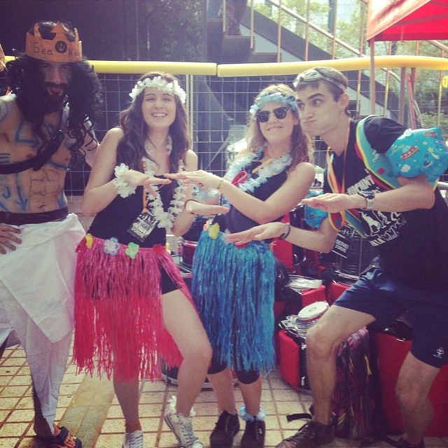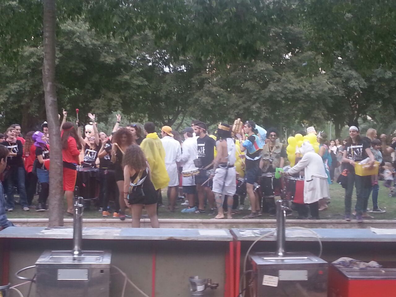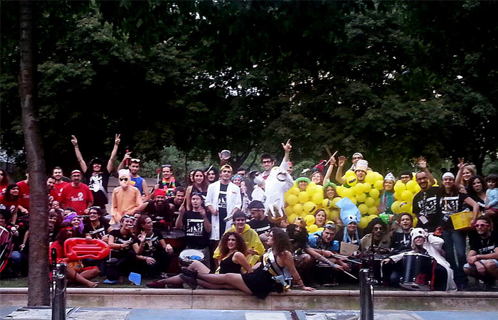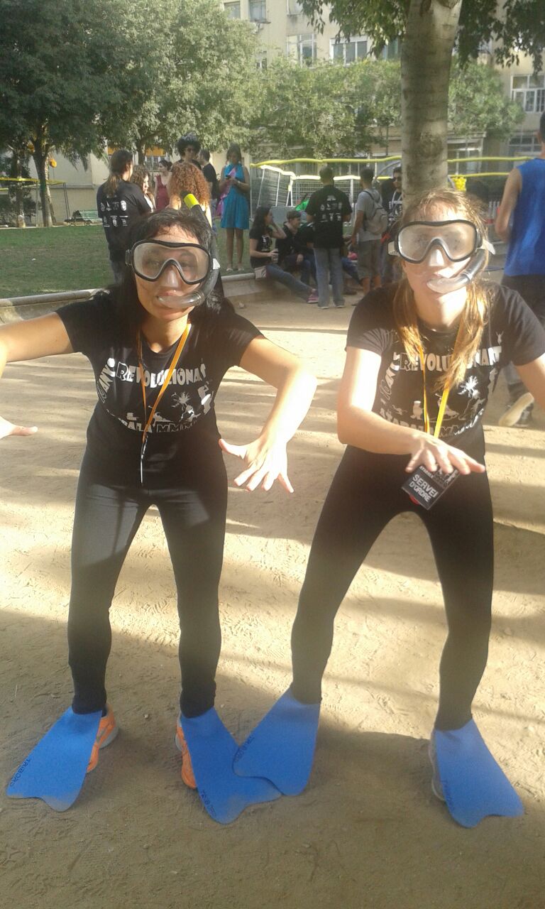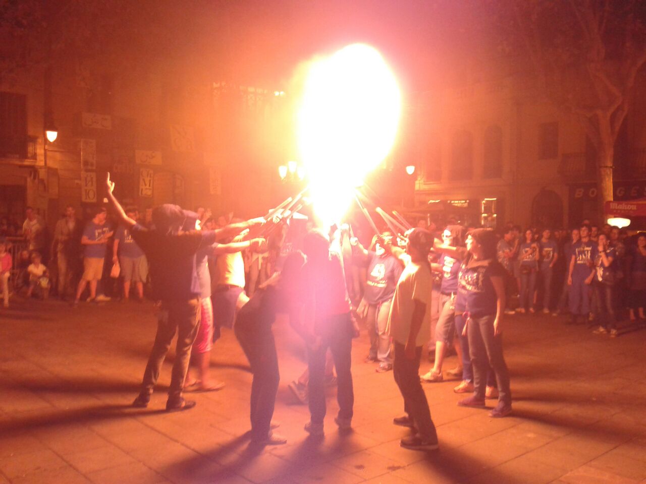 A les sis de la tarda, la comitiva va sortir dels Jardins de Clara Campoamor, seu de la Festa Major Jove de Les Corts, per recórrer el barri al so dels tabals de la nostra colla, dels nostres germans del nord, Les Gàrgoles de Foc de Banyoles i dels amics i colla convidada estrella d’enguany, els Toca’l 2 del barri de Sant Antoni de Barcelona. De bar en bar i de barra en barra de comissió, la festa es va anar animant, i cada cop tothom gaudia més i més, i nosaltres ens adonàvem que tota la feina feta (que és molta i prou feixuga i engegada des de el passat mes de juny) realment val la pena.