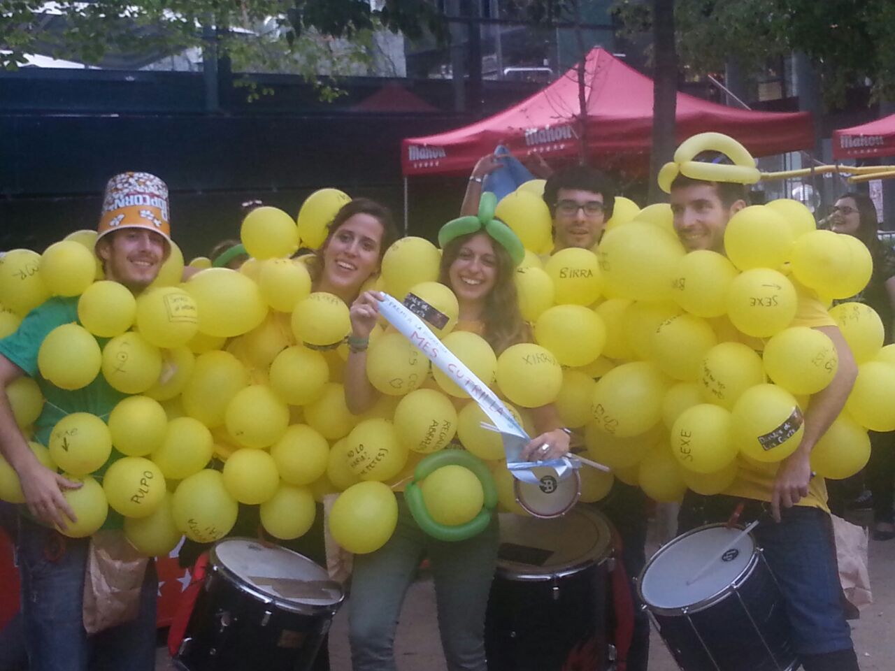 La tarda del dissabte 11 d’octubre, amb les panxes encara plenes, els Diables de Les Corts ens vam reunir al Casal de Joves al volt de les tres de la tarda per començar a engreixar la maquinària de l’ ATABALA’Mmmm. Tot llest, tot calculat, tothom a les seves posicions… Només calia començar a rodar i creuar els dits per què vingués tothom. I així va ser: no va quedar ni un sol Pack ATABALA’Mmmm per vendre, ni una sola samarreta sense amo, i cap anella sense got. La tarda començava bé!!!