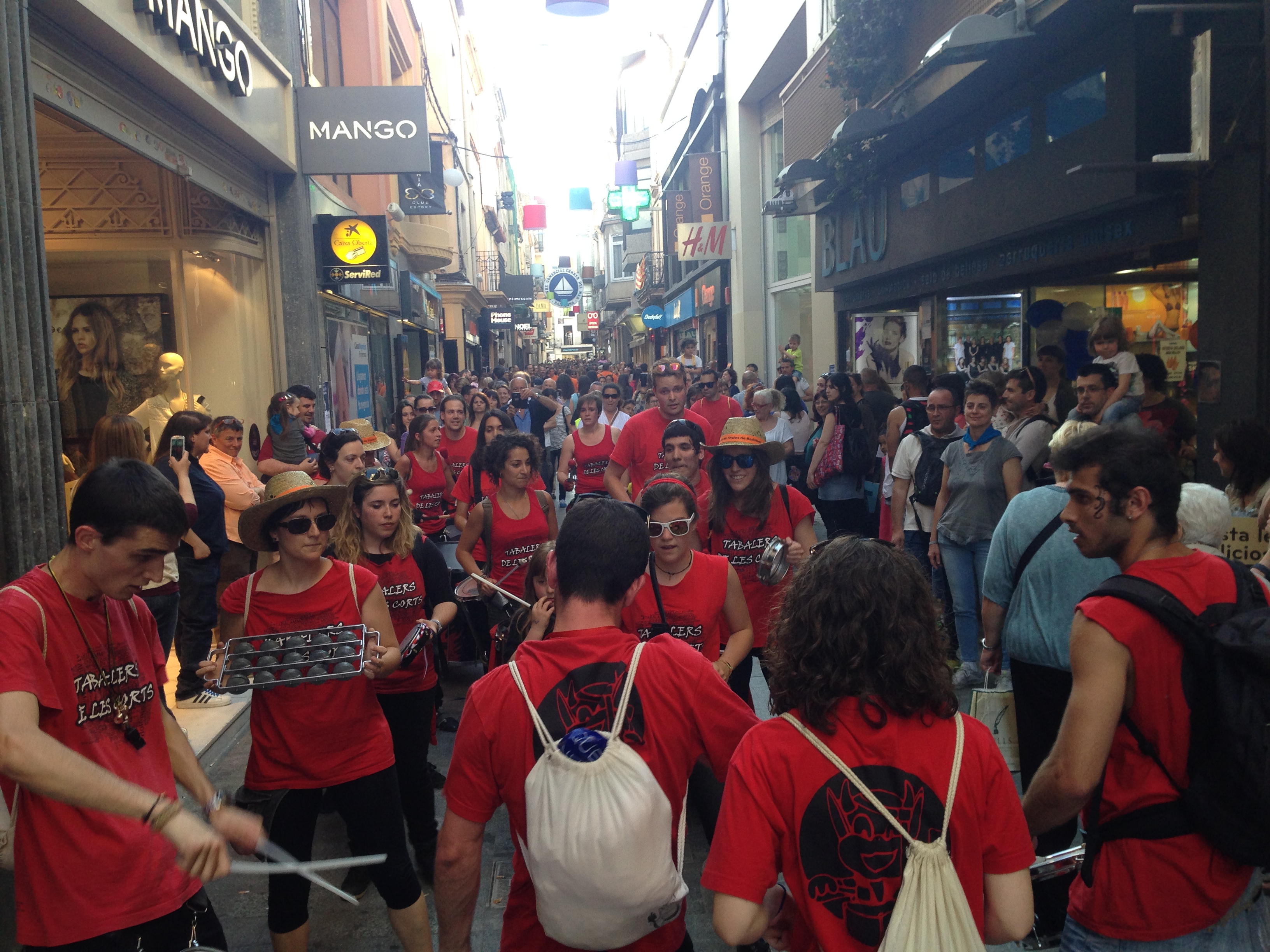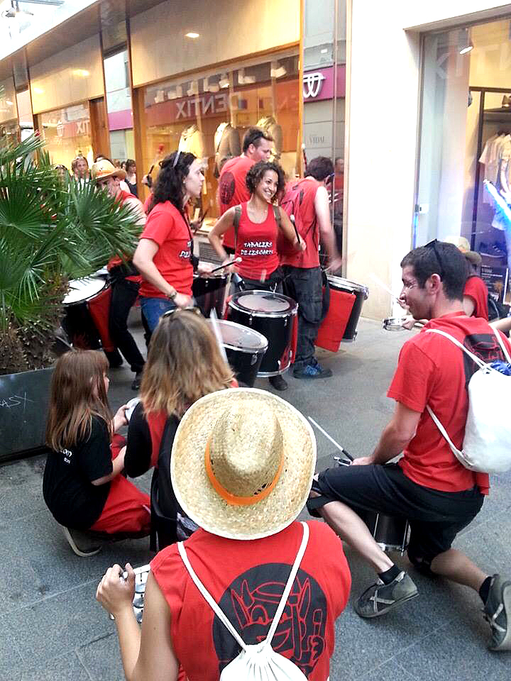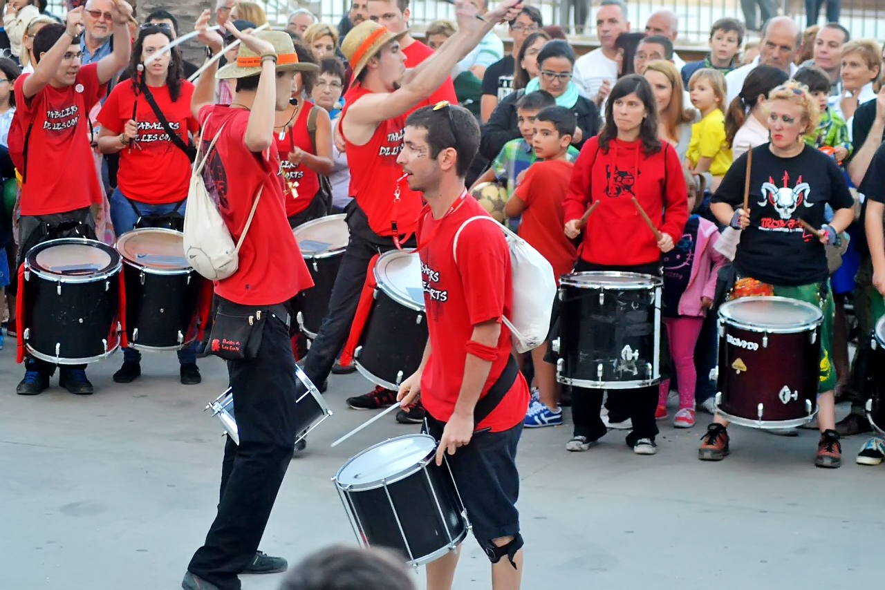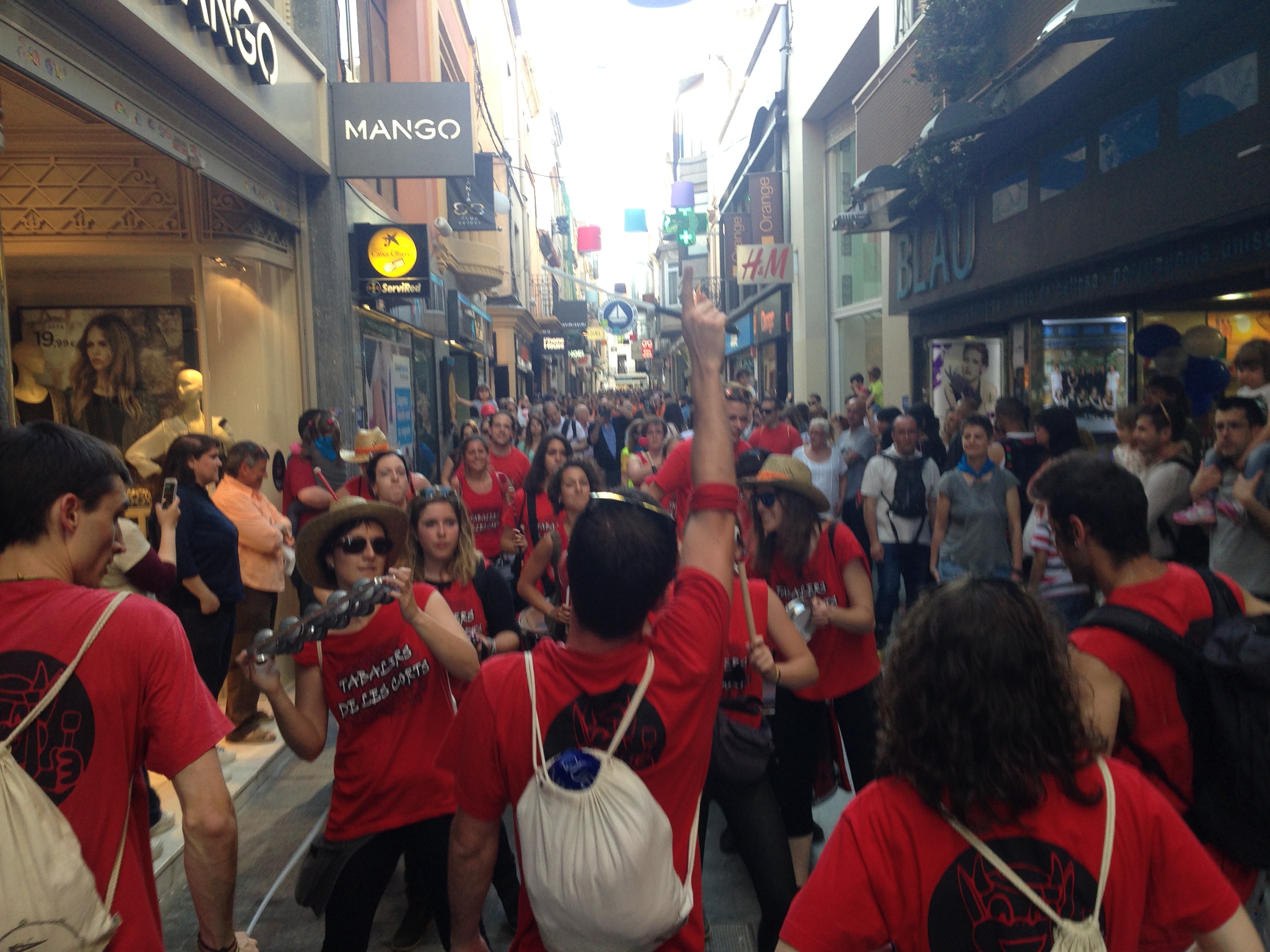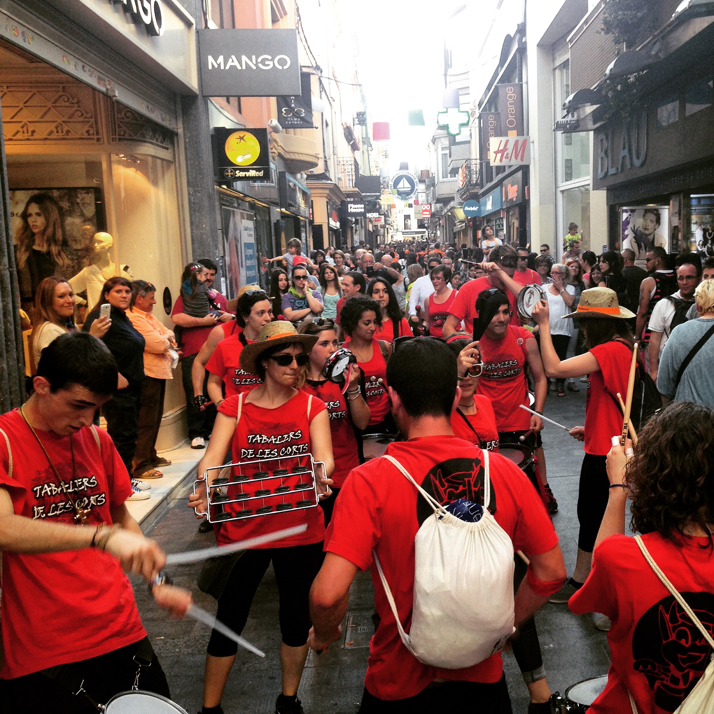Amb un sol de justícia, per torrar-nos prou bé volta i volta, vam iniciar la tabalada a la Plaça Pompeu Fabra a les sis de la tarda, amb un tema conjunt de totes les colles participants, l’inefable “Matador”. Tot just desprès, quan a plaça hi va acudir moltíssima gent a veure l’inici de l’acte, vam marxar en cercavila pels carrers de Badalona: un lluïment a la Plaça de l’Ajuntament, i especialment un ritme infernal amb molt públic pel Carrer del Mar i rodalies.