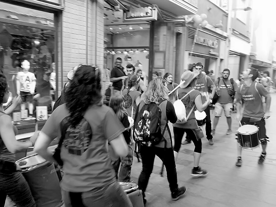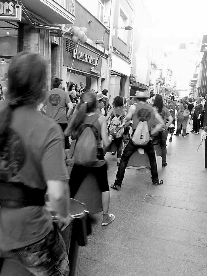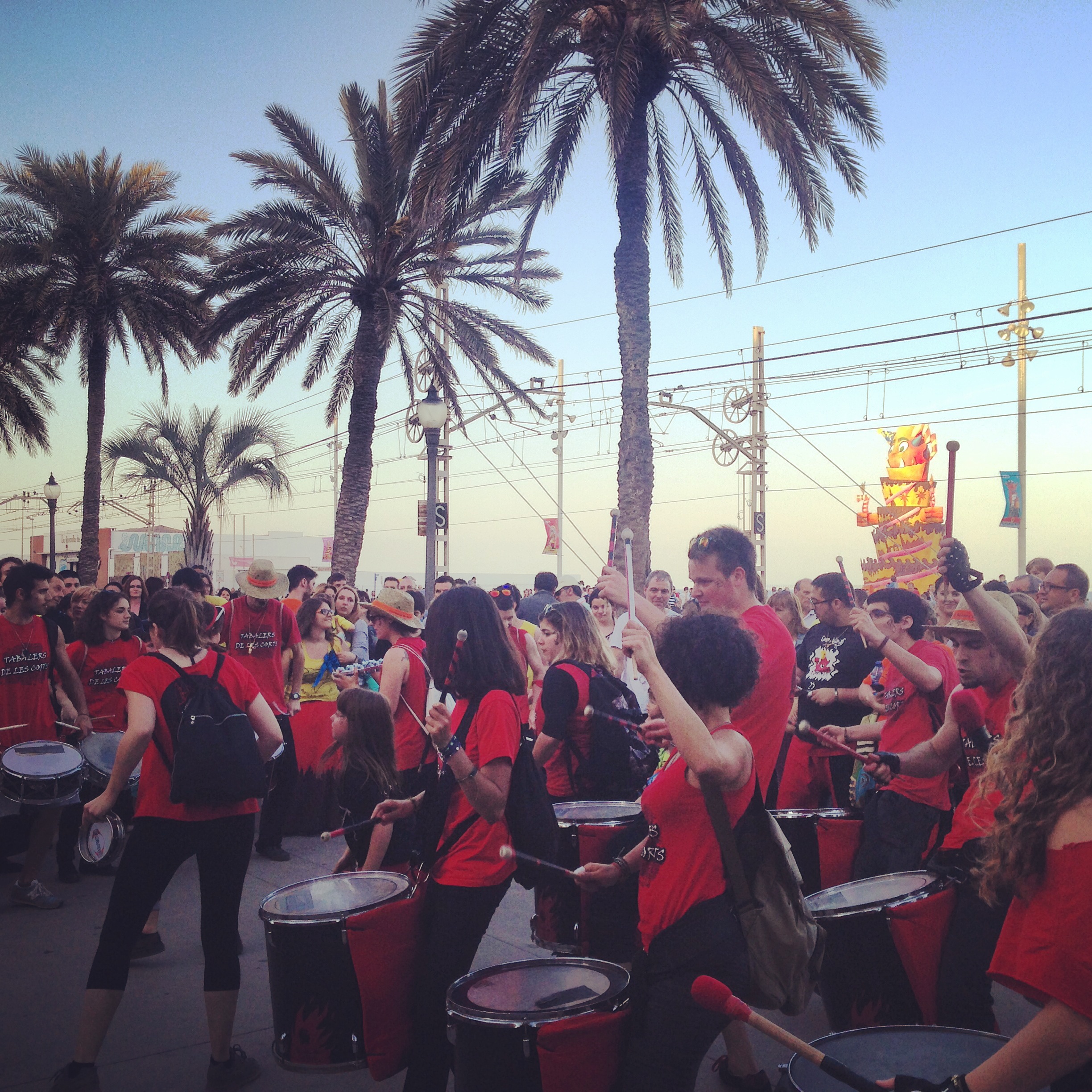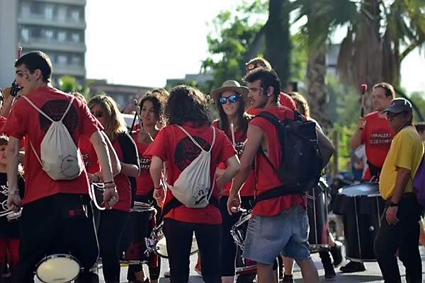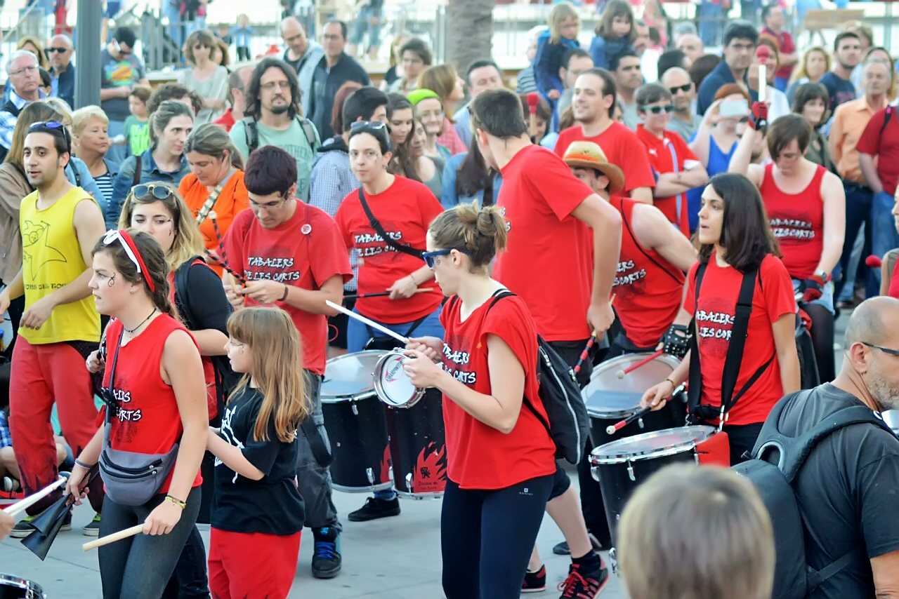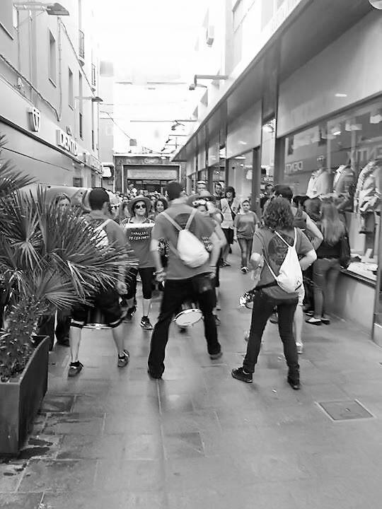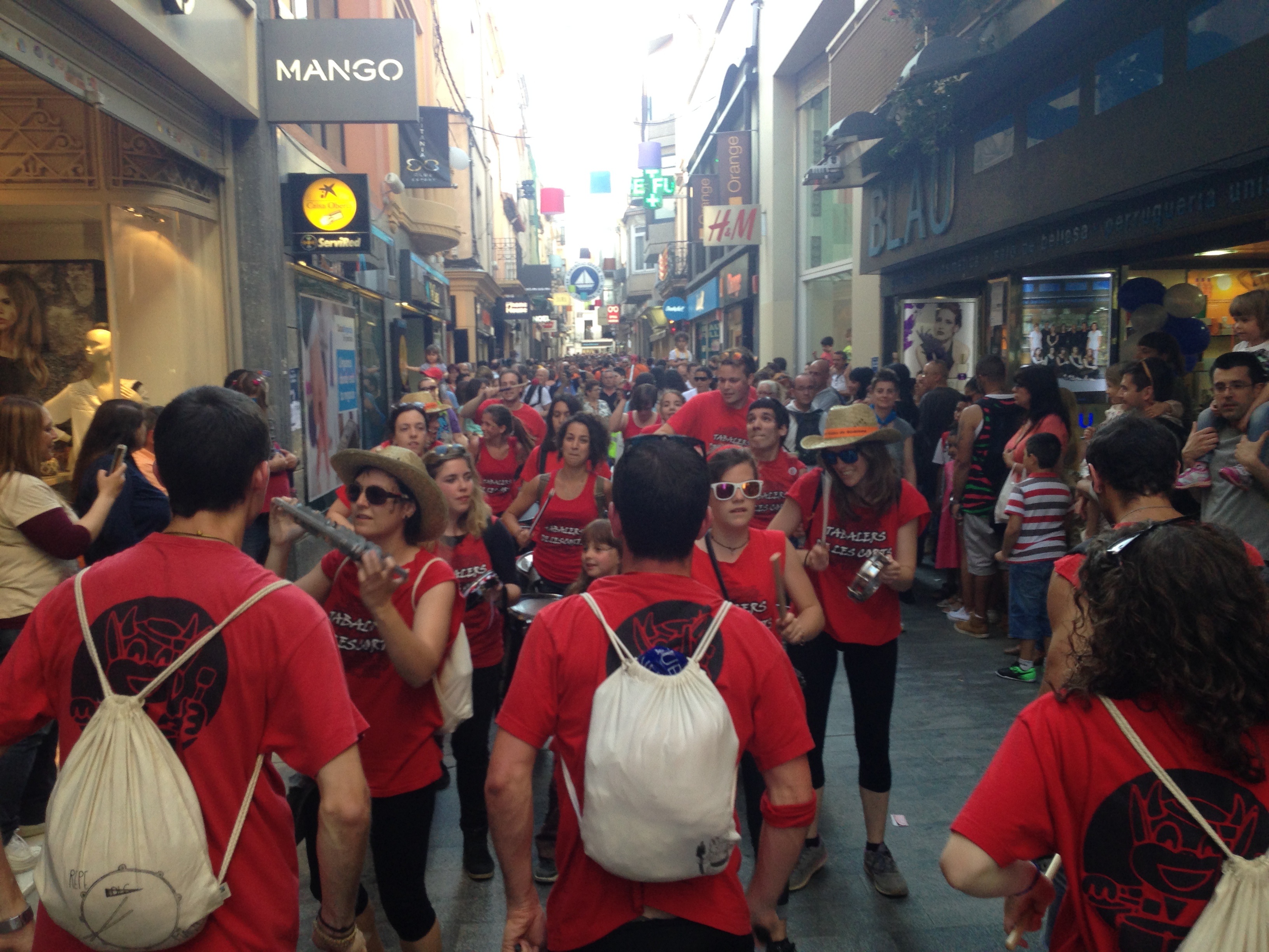 Amb un sol de justícia, per torrar-nos prou bé volta i volta, vam iniciar la tabalada a la Plaça Pompeu Fabra a les sis de la tarda, amb un tema conjunt de totes les colles participants, l’inefable “Matador”. Tot just desprès, quan a plaça hi va acudir moltíssima gent a veure l’inici de l’acte, vam marxar en cercavila pels carrers de Badalona: un lluïment a la Plaça de l’Ajuntament, i especialment un ritme infernal amb molt públic pel Carrer del Mar i rodalies.