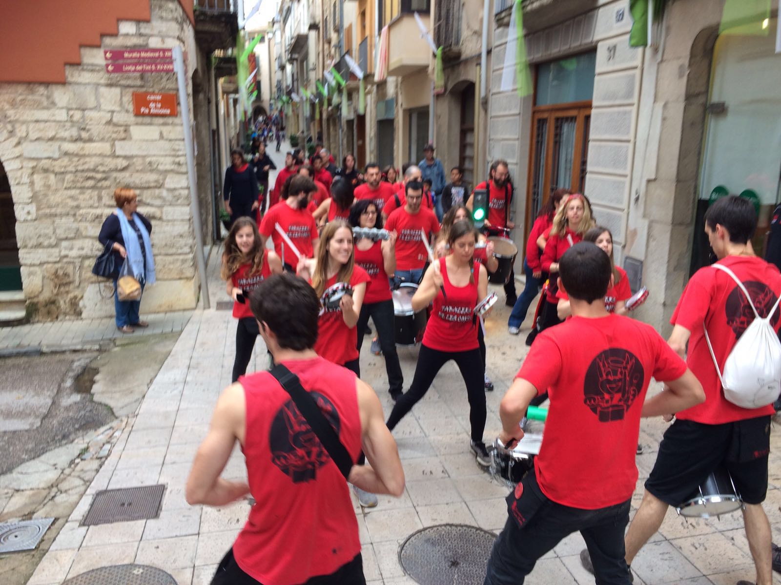I a la nit, vam continuar la festa a Nit de Bosc, el festival de música de Banyoles enmig de la natura. A les dues de la matinada, vam atabalar amb els nostres germans de Gàrgoles a tot el personal congregat. Entre concerts, la gent va ballar amb tots nosaltres de manera activa. Fins que va sortir el sol no vam marxar a dormir!