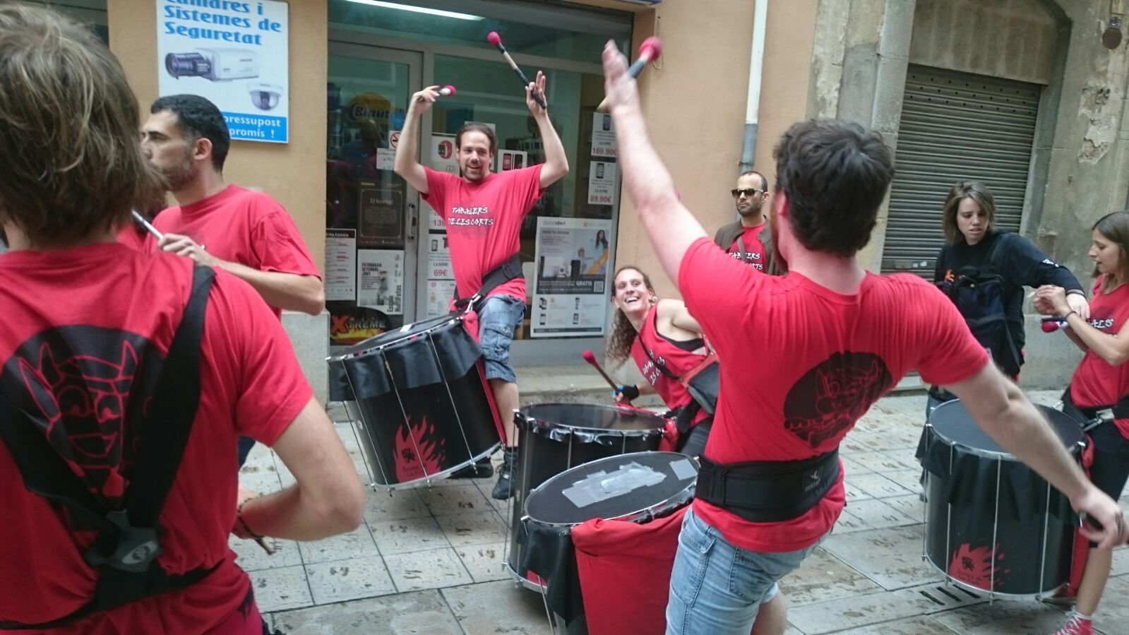 Una nova cita anual amb el ritme a les venes i el foc al cos: la Gran Batucada de Banyoles! El passat dissabte 18 de juny, quasi 40 diablillus (entre tabalers i supporters) vam marxar a la nostra segona casa, la capital del Pla de l’Estany. Un any més, gràcies als nostres germans del nord, les Gàrgoles de Foc, vam viure una XIII Batucada plena de festa. Enguany no vam deixar res que desitjar: ritme, música i diversió. Els tabalers vàrem arribar i besar el sant, ja que les previsions de pluja es van retirar i vam tenir una jornada de percussió d’allò més espectacular!