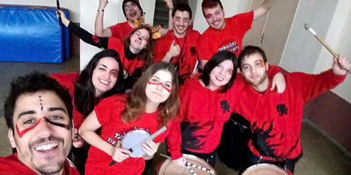 Tot i la pluja, el passat divendres 24 de febrer, els tabalers de Diables de Les Corts vam fer ressonar els tabals com a gran celebració del carnestoltes d’aquest centre. Un saló d’actes ple de joves disfressats d’una gran varietat de personatges diferents van poder gaudir d’una tabalada que va animar la festa.