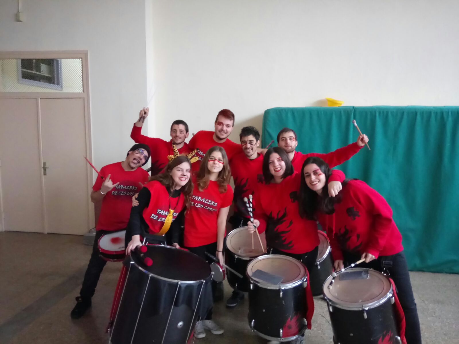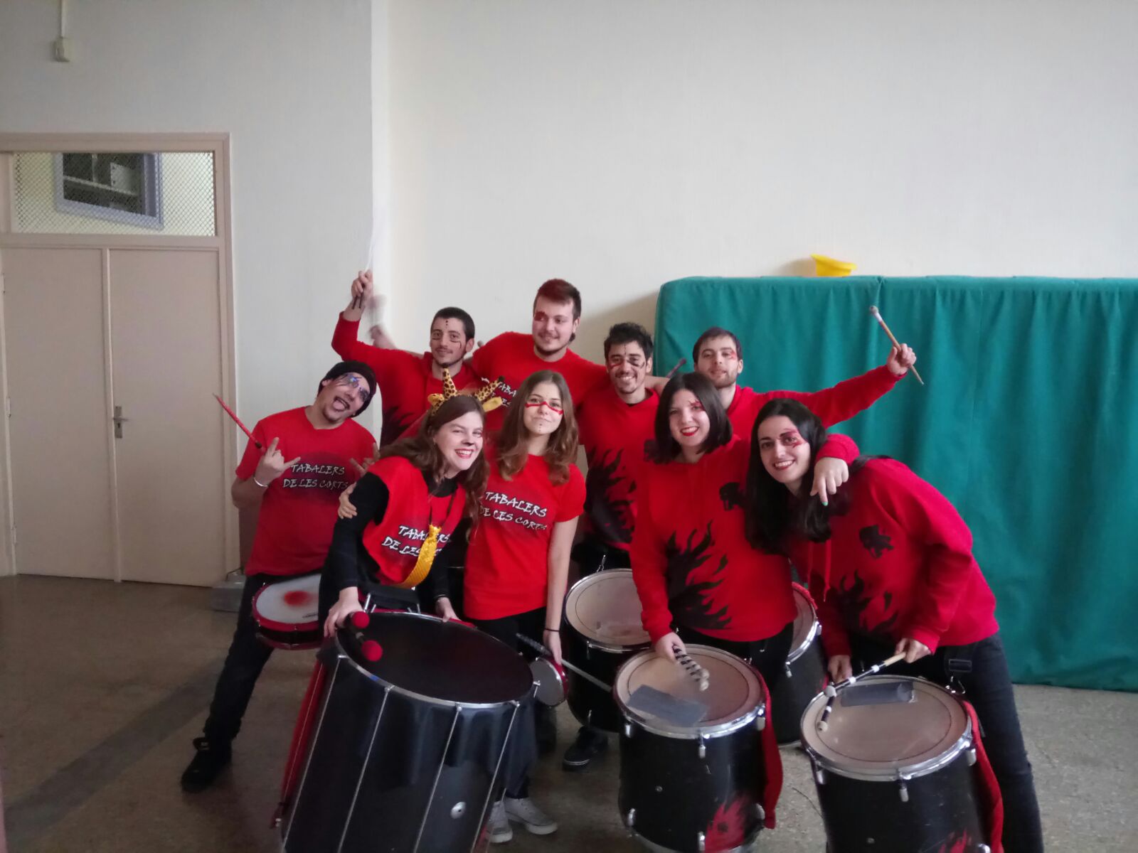 Tot i la pluja, el passat divendres 24 de febrer, els tabalers de Diables de Les Corts vam fer ressonar els tabals com a gran celebració del carnestoltes d’aquest centre. Un saló d’actes ple de joves disfressats d’una gran varietat de personatges diferents van poder gaudir d’una tabalada que va animar la festa.