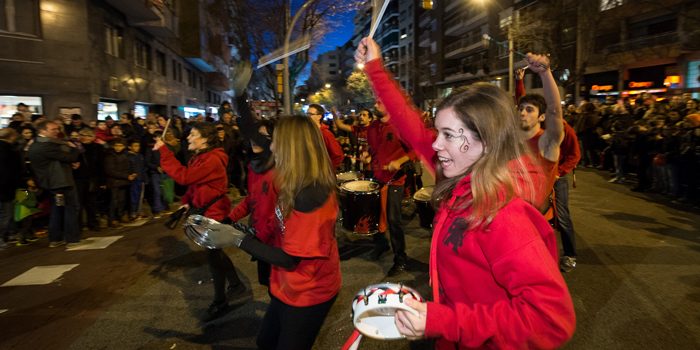 Tots els carrers estaven envoltats de nens i nenes que esperaven impacients per rebre els reis i poder entregar-lis la seva carta reial. Els assistents van gaudir bocabadats de les espectaculars carrosses i criatures màgiques tot ballant al ritme dels Tabalers de Les Corts. Diables vam tocar al llarg del recorregut davant del rei Gaspar i ens vam encarregar de llençar molts caramels, recollir algunes cartes, pintar calbes als més grandets i omplir els carrers de somriures, màgia i molta gresca. Llucifer també va sortir per la Cavalcada per recollir de manera endimoniada -amb l’ajuda dels diablillus-, els xumets dels més petits de Les Corts.