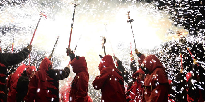 Mitjans de juliol! Tot ple de “guiris” pel Raval barceloní. El popular barri de la ciutat està de festa major. I el passat dissabte 16 de juliol vam tenir l’honor de compartir espurnes al Correfoc de Festa Major del Raval gràcies als amfitrions, els amics de la Kinta Forka. I així, deixar tots plegats bocabadats a desenes de turistes i gent de tota la vida del Raval amb la nostra percu i el foc conjunt de les dues colles.