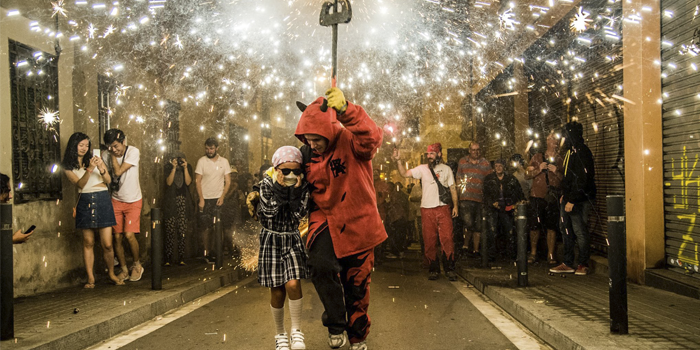 Acomiadàvem el mes d’agost, les vacances… amb pólvora! El passat dissabte 26 d’agost els Diables de Sants ens convidaven a participar al Correfoc de Festa Major de Sants. Tot un luxe i un plaer cremar a casa dels nostres veïns, tot sortint des de una de les places amb més moguda de Sants: plaça Osca! A més a més vam poder compartir espurnes amb els nostres companys de barri, els Bocs de Can Rosés, i el drac de Sants, el Pitu.