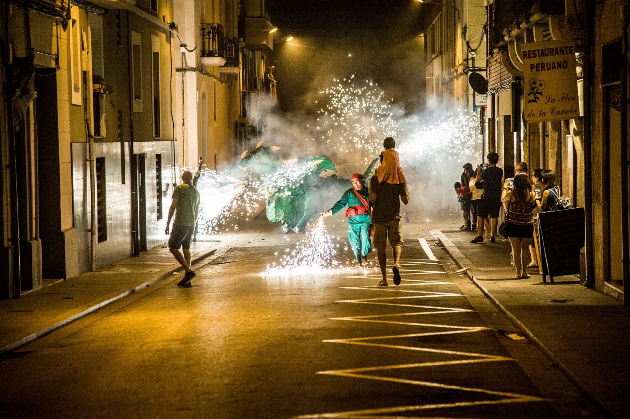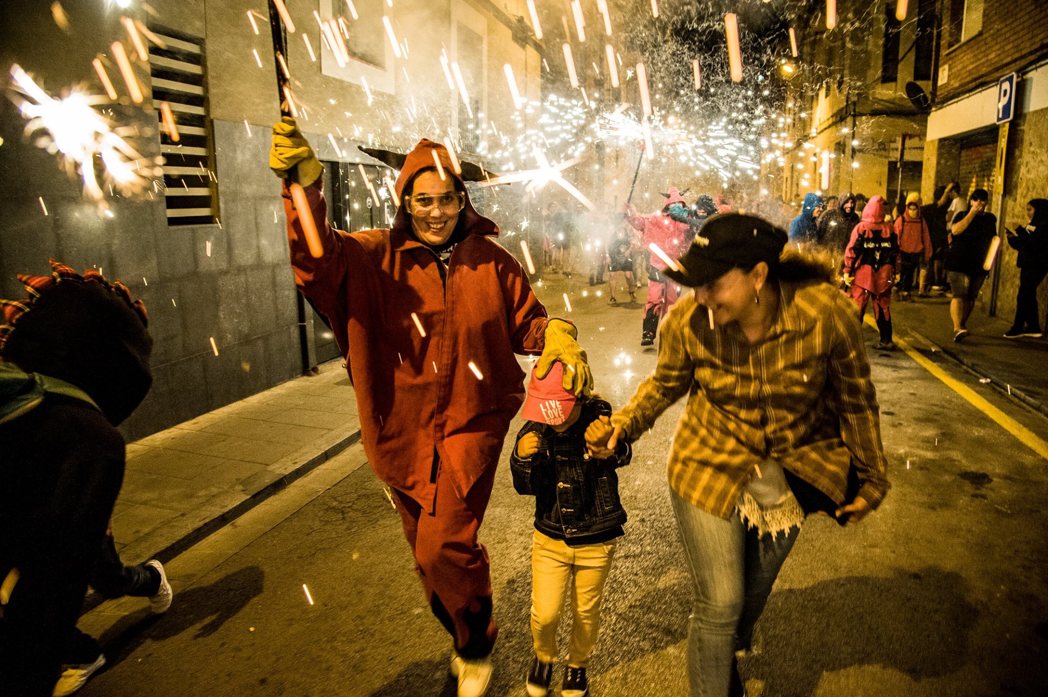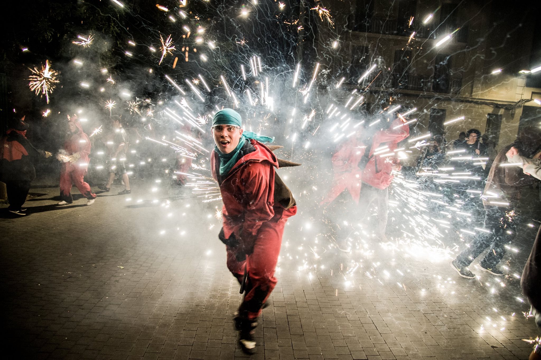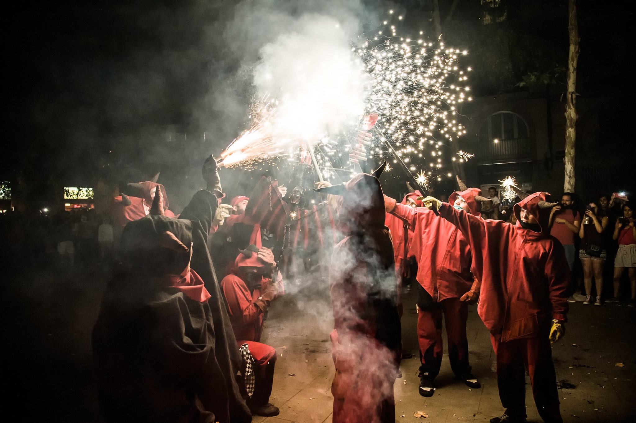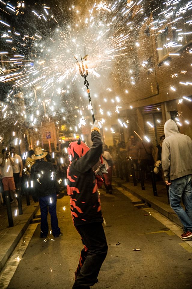 Acomiadàvem el mes d’agost, les vacances… amb pólvora! El passat dissabte 26 d’agost els Diables de Sants ens convidaven a participar al Correfoc de Festa Major de Sants. Tot un luxe i un plaer cremar a casa dels nostres veïns, tot sortint des de una de les places amb més moguda de Sants: plaça Osca! A més a més vam poder compartir espurnes amb els nostres companys de barri, els Bocs de Can Rosés, i el drac de Sants, el Pitu.