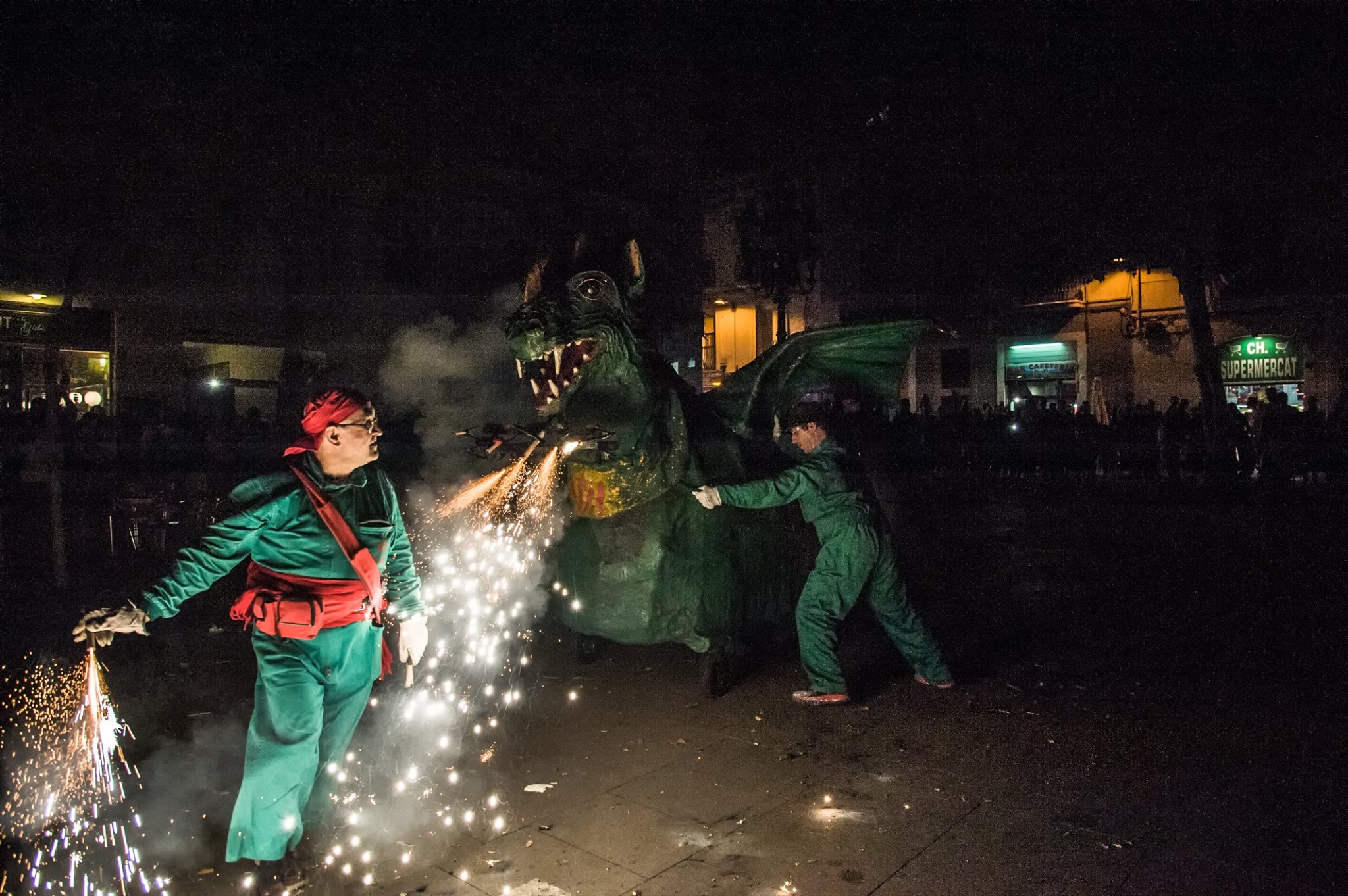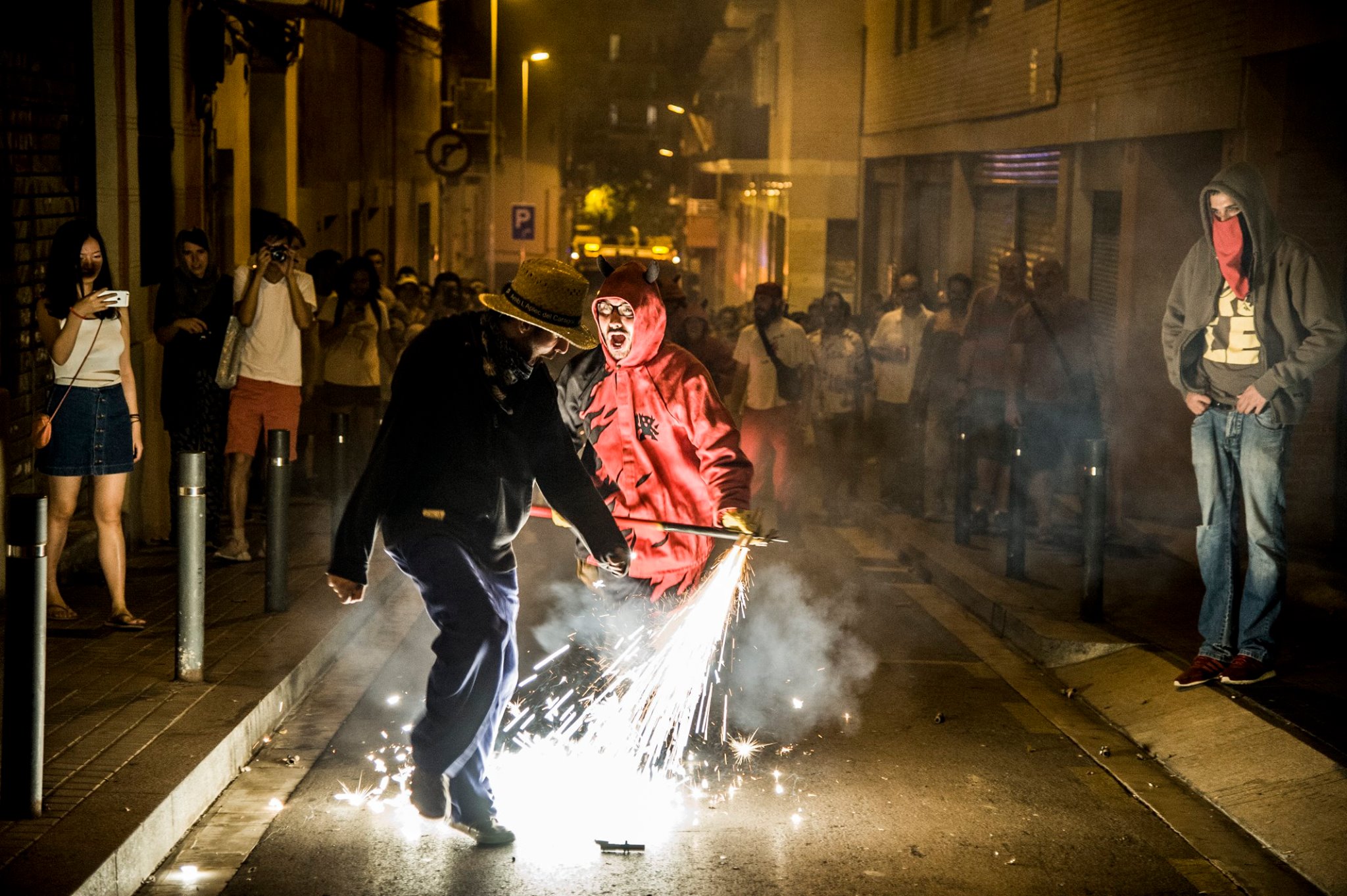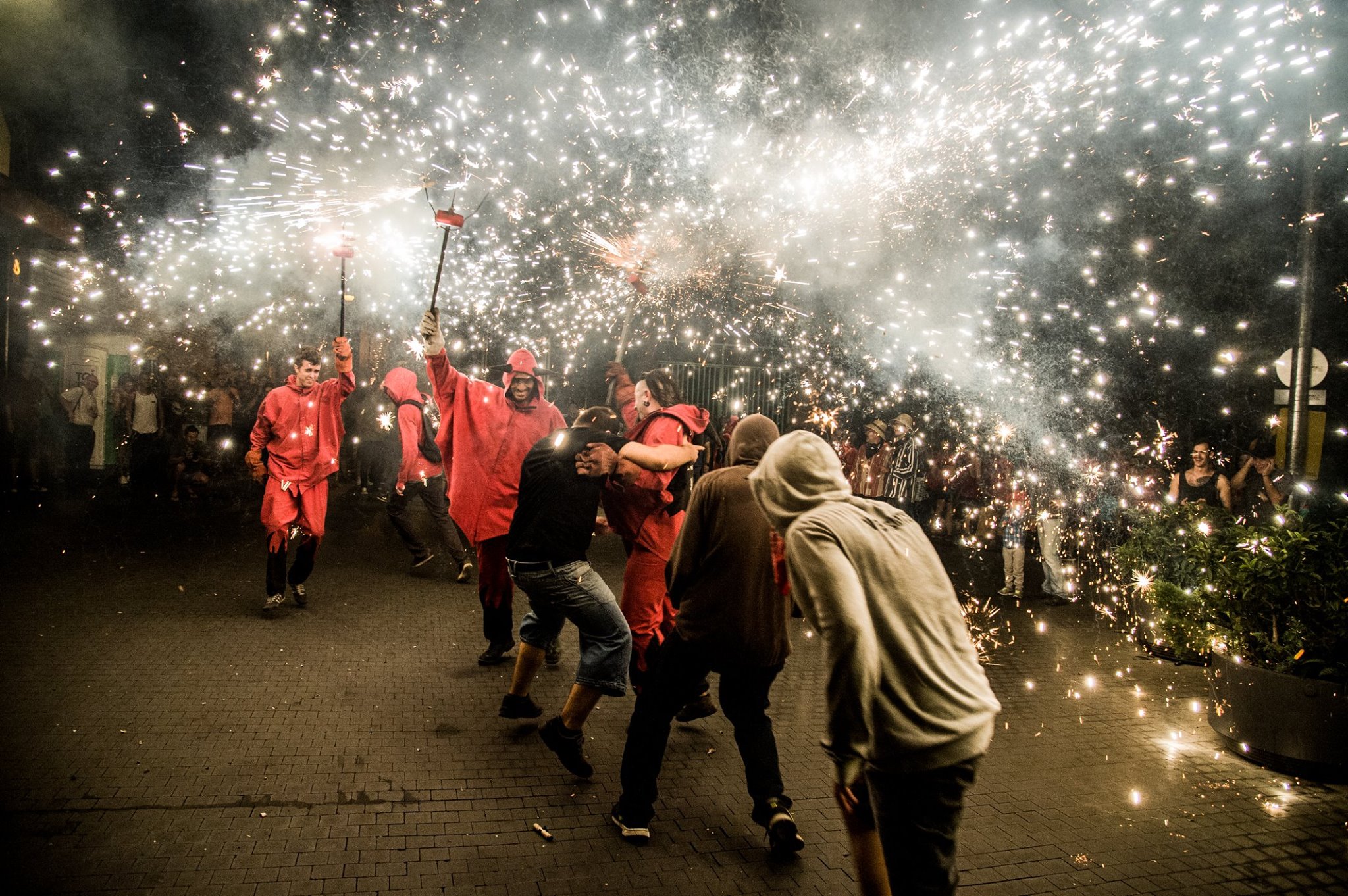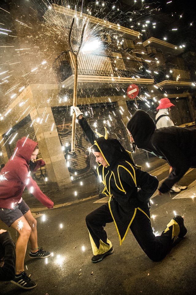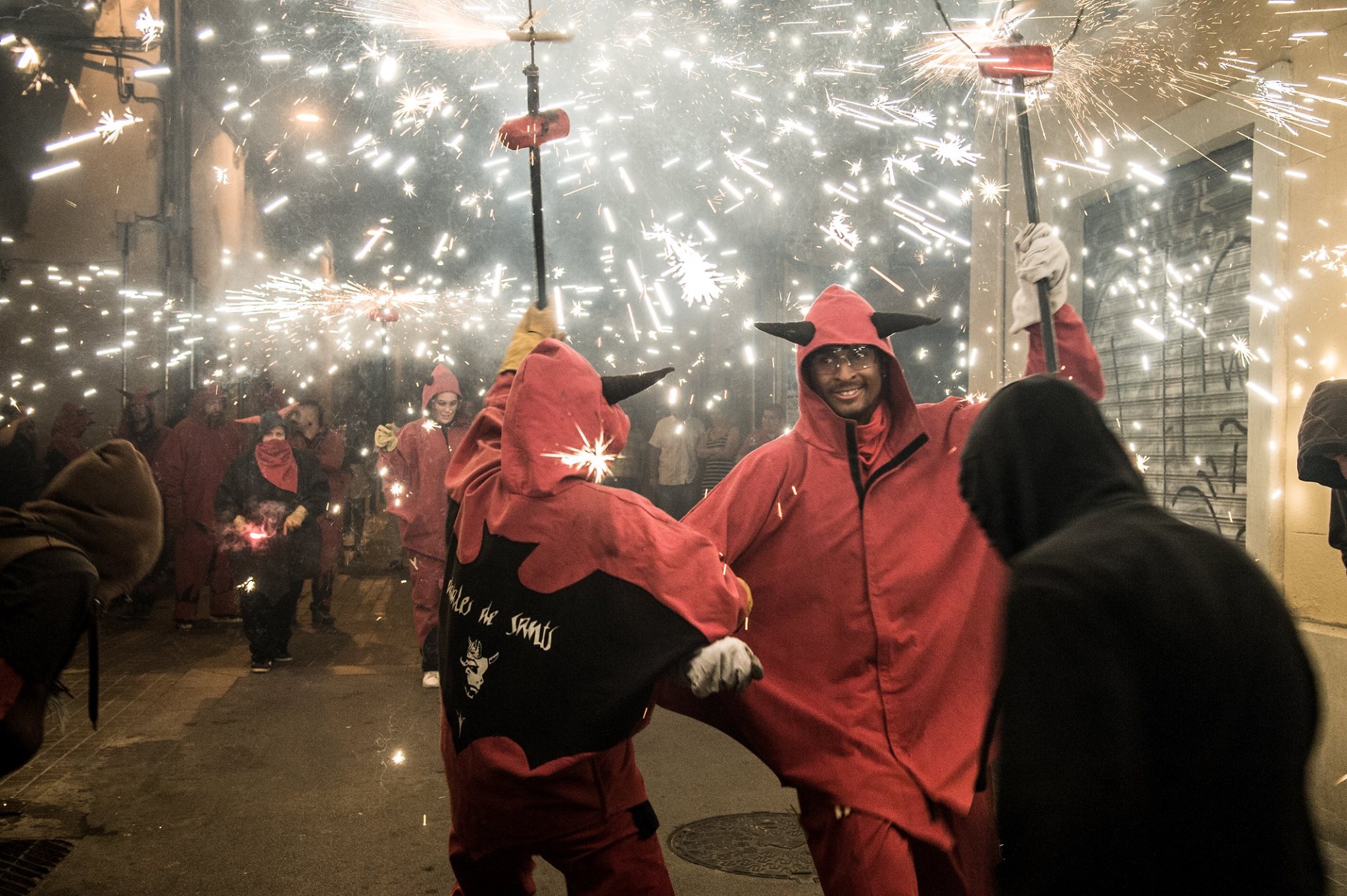 Acomiadàvem el mes d’agost, les vacances… amb pólvora! El passat dissabte 26 d’agost els Diables de Sants ens convidaven a participar al Correfoc de Festa Major de Sants. Tot un luxe i un plaer cremar a casa dels nostres veïns, tot sortint des de una de les places amb més moguda de Sants: plaça Osca! A més a més vam poder compartir espurnes amb els nostres companys de barri, els Bocs de Can Rosés, i el drac de Sants, el Pitu.