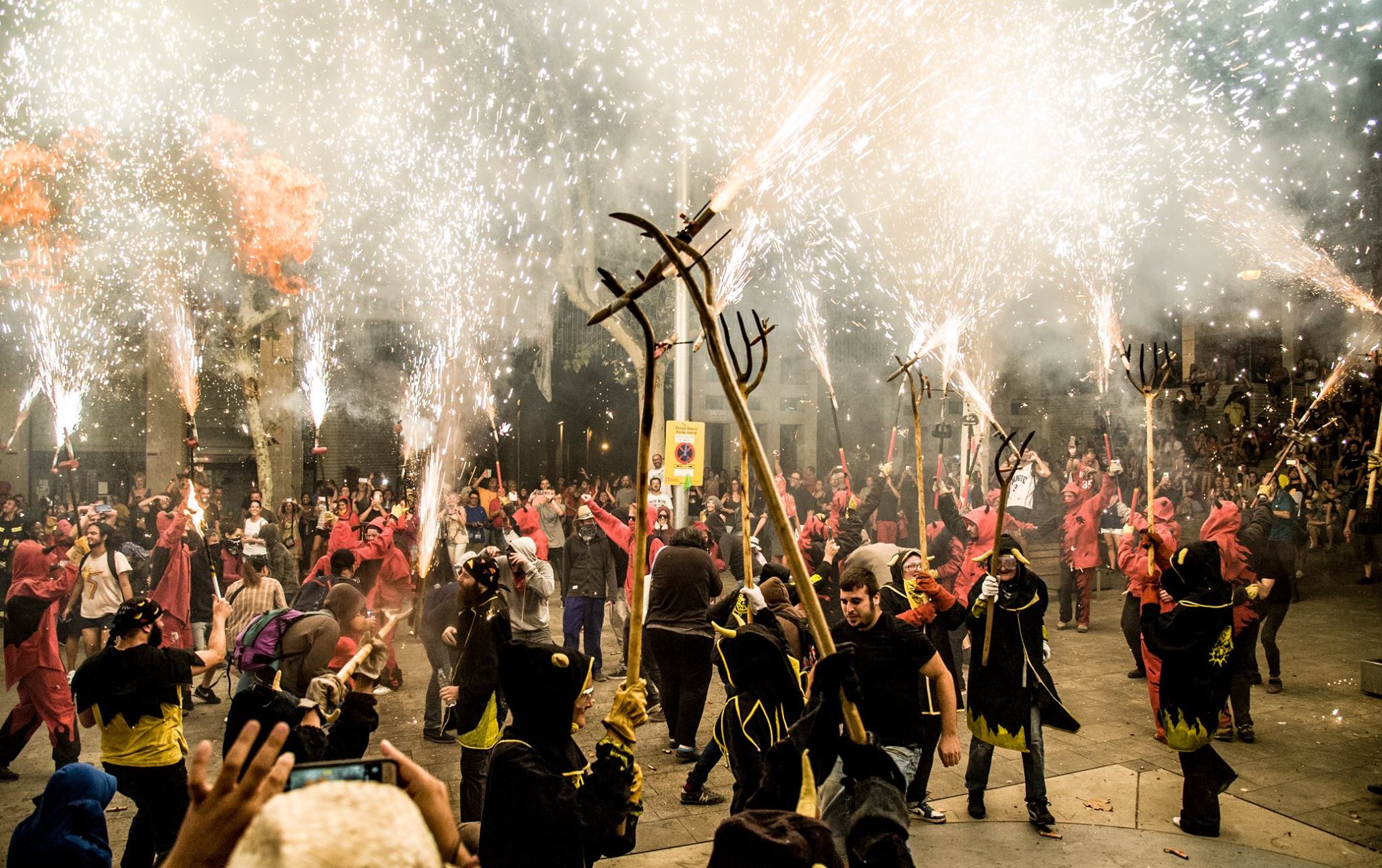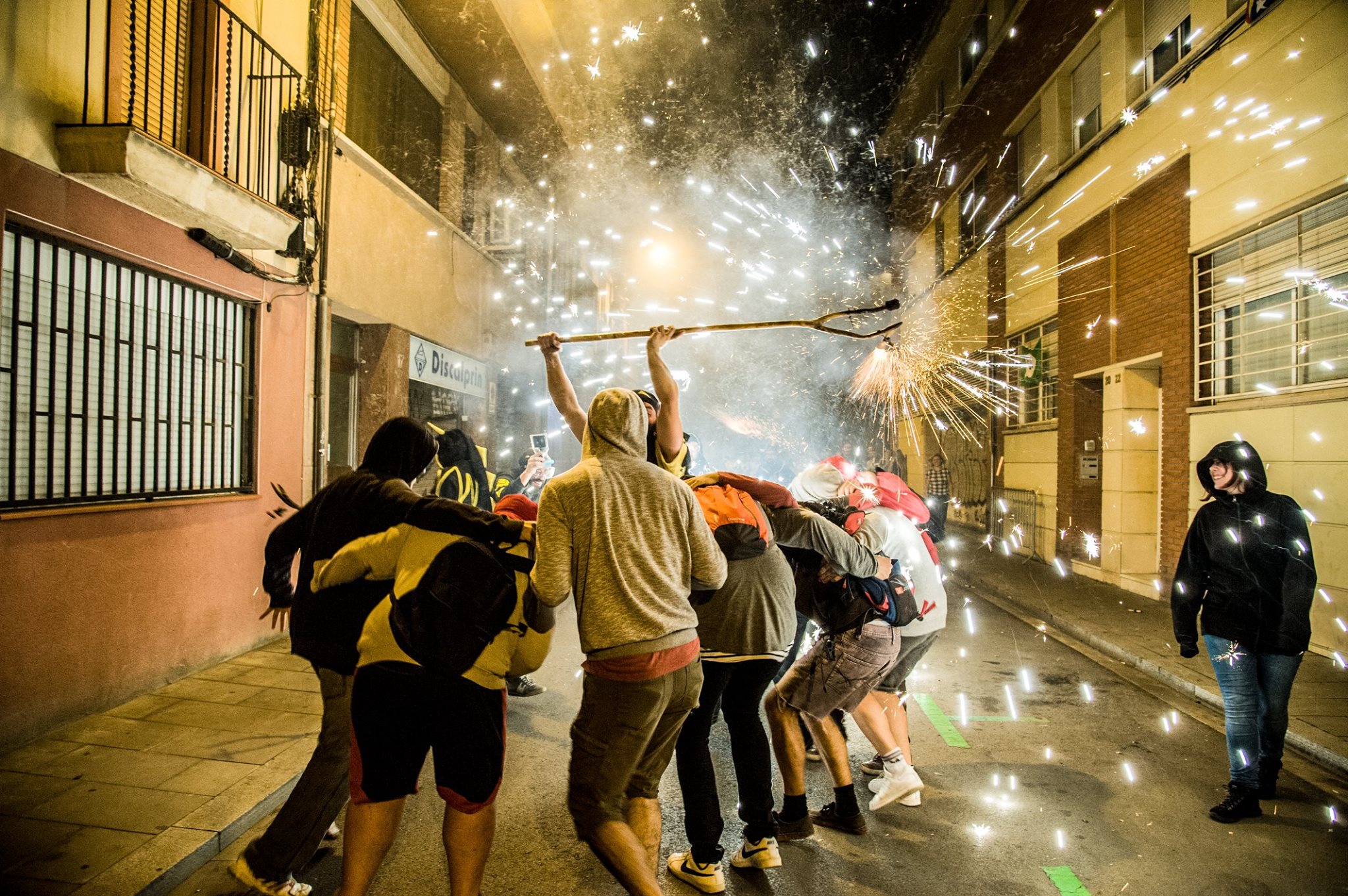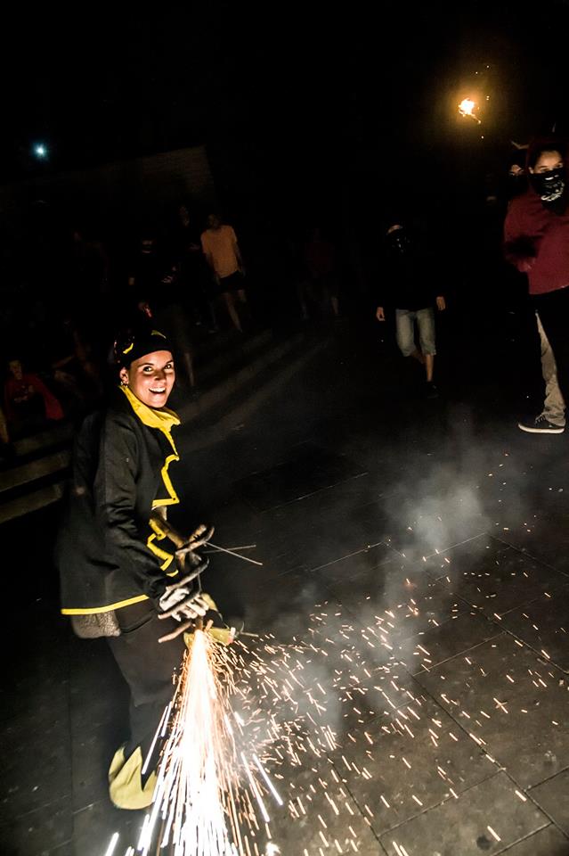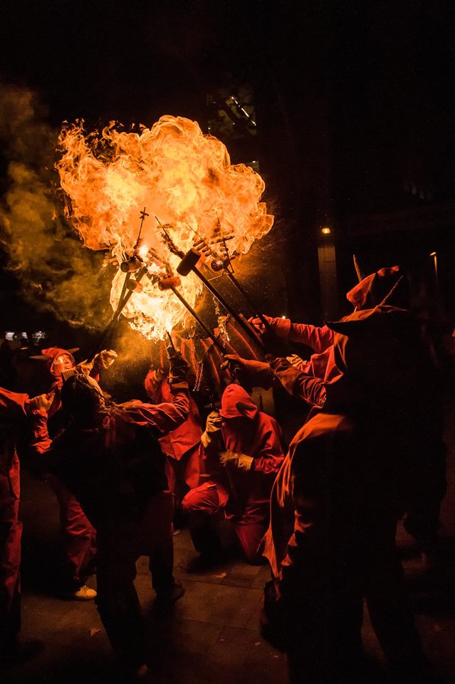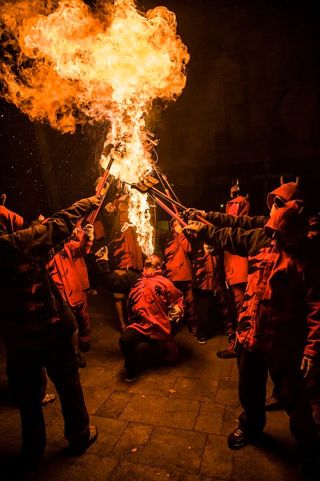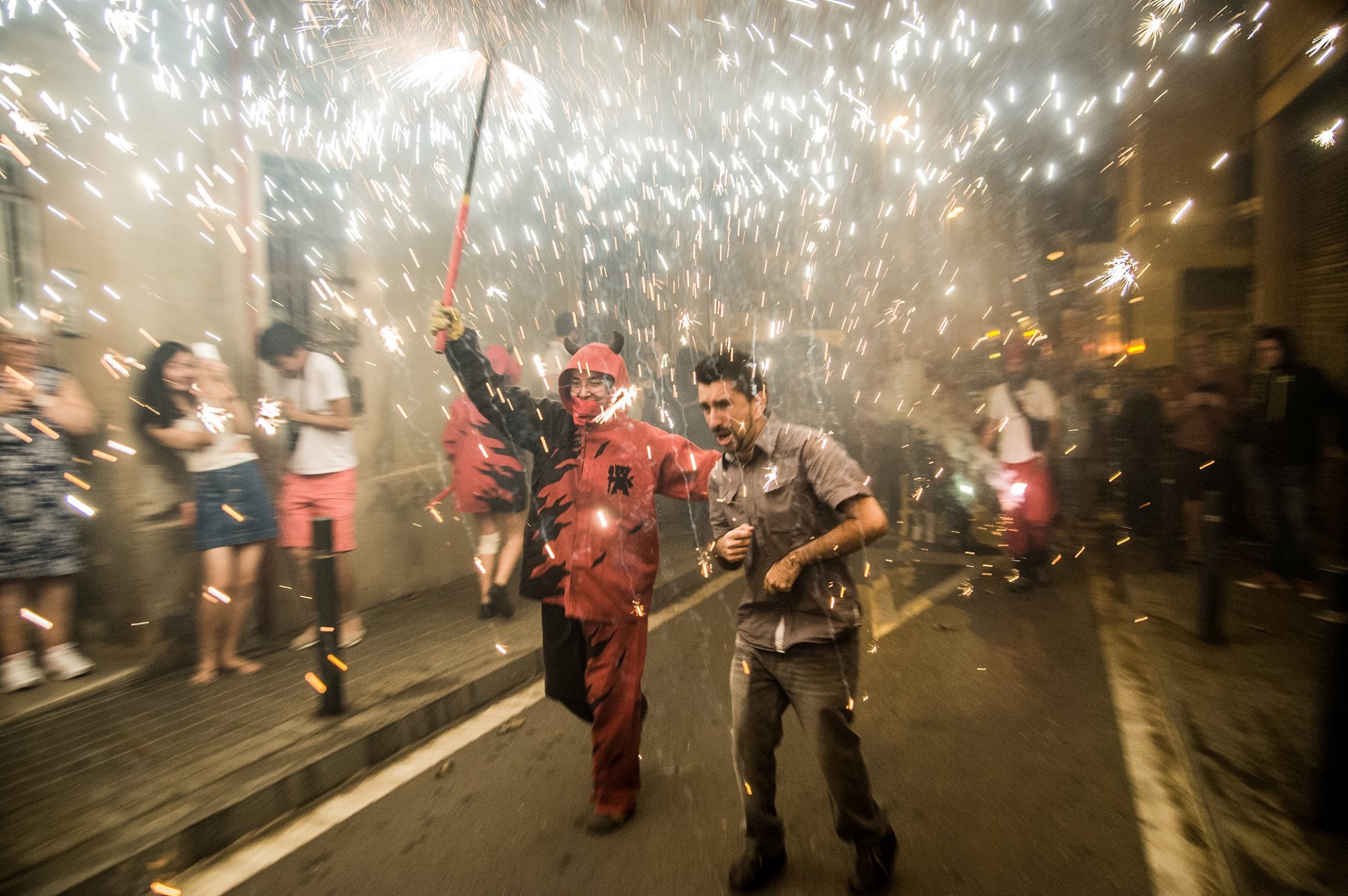 Acomiadàvem el mes d’agost, les vacances… amb pólvora! El passat dissabte 26 d’agost els Diables de Sants ens convidaven a participar al Correfoc de Festa Major de Sants. Tot un luxe i un plaer cremar a casa dels nostres veïns, tot sortint des de una de les places amb més moguda de Sants: plaça Osca! A més a més vam poder compartir espurnes amb els nostres companys de barri, els Bocs de Can Rosés, i el drac de Sants, el Pitu.