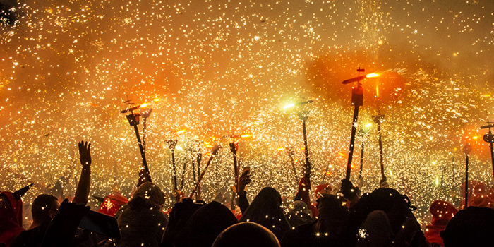 Com sempre, la Via Laietana amb Plaça Antoni Maura, on estava instal·lada la Porta de l’Infern, estava plena a vessar de gentada. A més a més de la Ceptrotada, l’encesa de la porta i l’espectacle amb motiu dels 40 anys dels Diables del Clot, el correfoc va sortir rodó. La cirereta final va ser una altre novetat: l’encesa final de les colles, tots junts, a l’últim tram del recorregut. Una experiència genial que esperem que continuï any rere any.