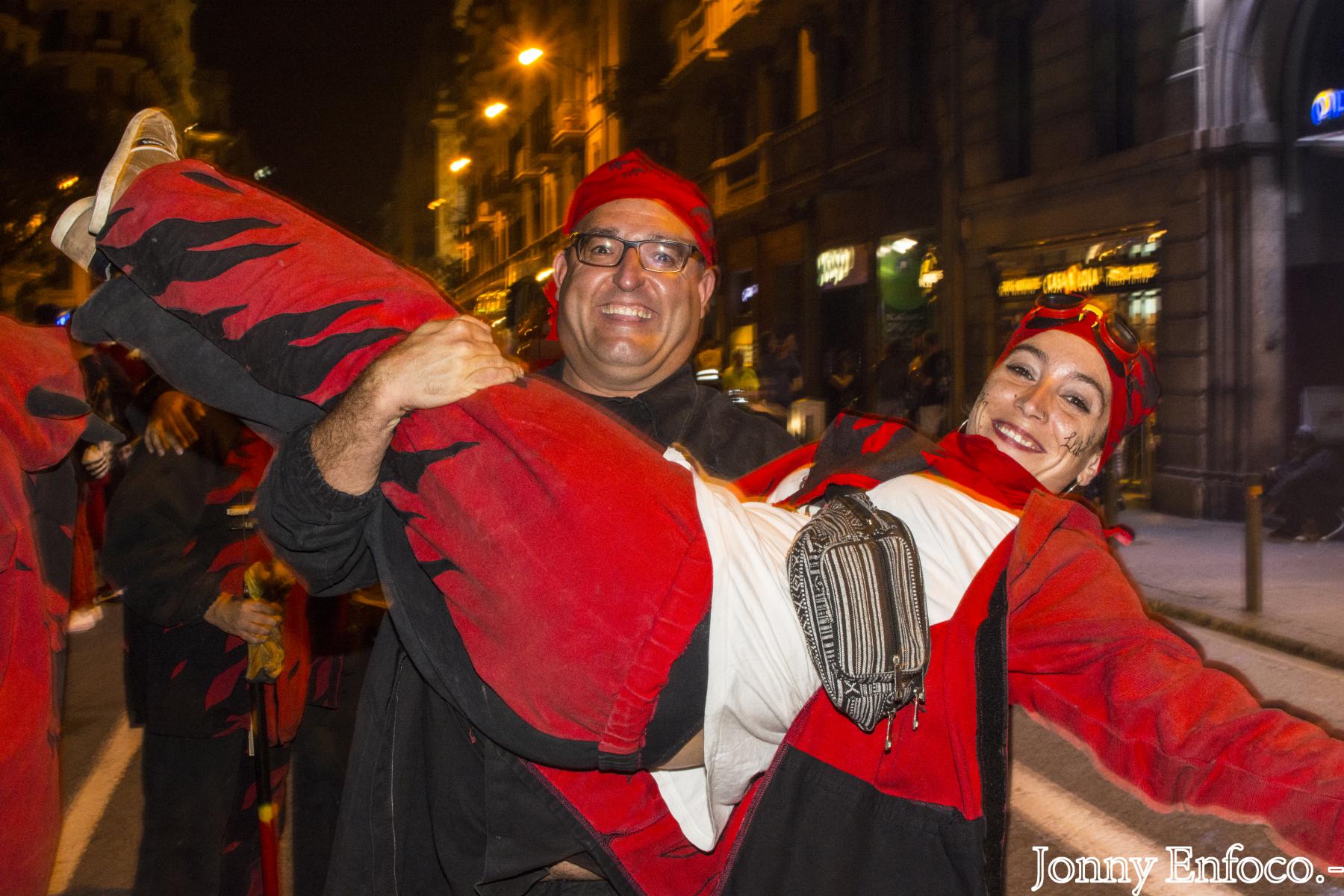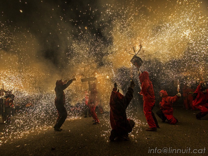 Com sempre, la Via Laietana amb Plaça Antoni Maura, on estava instal·lada la Porta de l’Infern, estava plena a vessar de gentada. A més a més de la Ceptrotada, l’encesa de la porta i l’espectacle amb motiu dels 40 anys dels Diables del Clot, el correfoc va sortir rodó. La cirereta final va ser una altre novetat: l’encesa final de les colles, tots junts, a l’últim tram del recorregut. Una experiència genial que esperem que continuï any rere any.