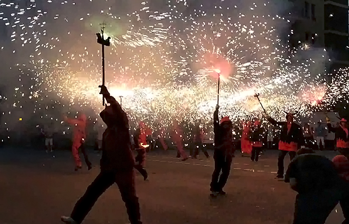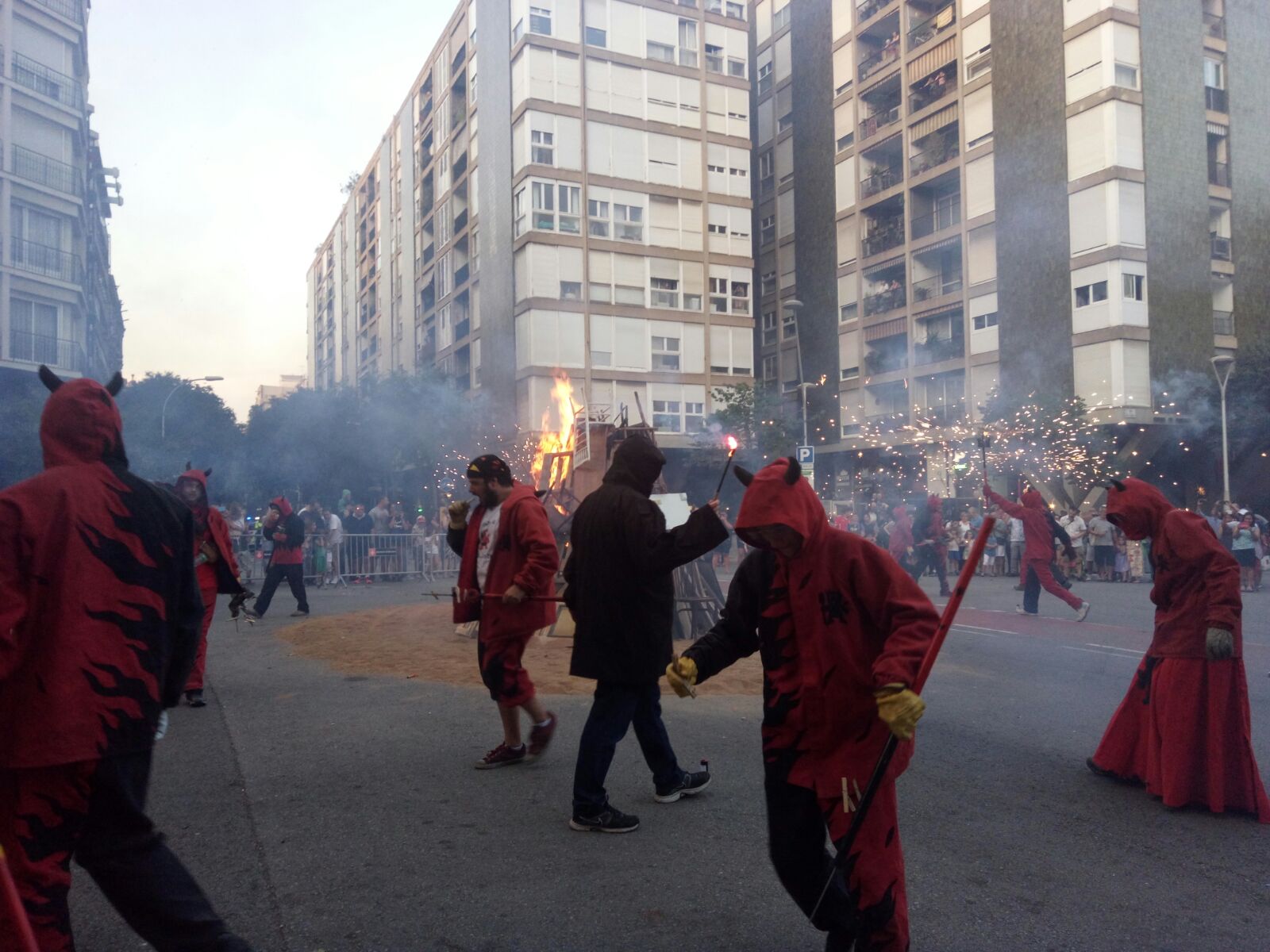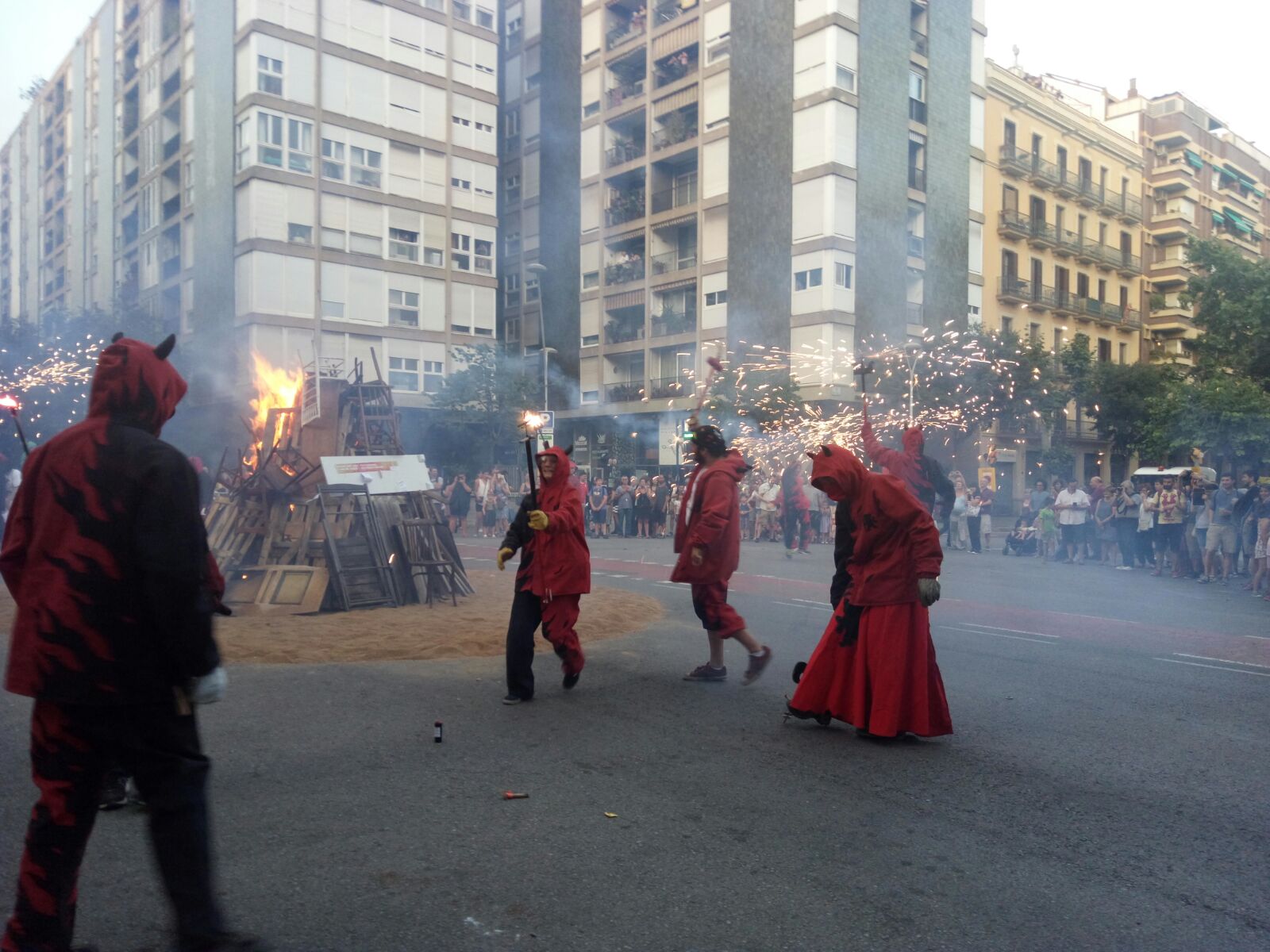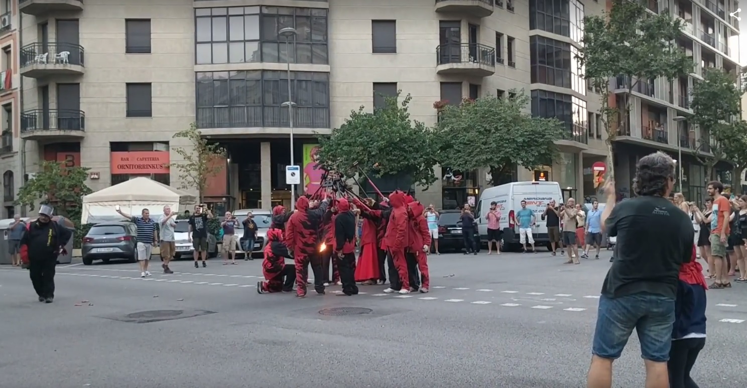 Amb l’encesa de la foguera per part dels diables, començava el Correfoc de Sant Joan! Desenes de curiosos i fans de la pólvora ens van acompanyar al llarg del recorregut, ple de foc verd, vermell i groc! Molts turistes, com sempre, van al·lucinar amb la marxa dels cremadors i tabalers. Amb el retorn a la foguera i una encesa final, vam cloure la celebració amb els companys de l’Esquerra Infernal. Això si, abans de marxar, vam gaudir del ambient de tot el veïnat que havia baixat a sopar a la revetlla, amb unes rondes de cerveses i salivant per la botifarrada organitzada per les entitats i col·lectius d’aquest barri barceloní.