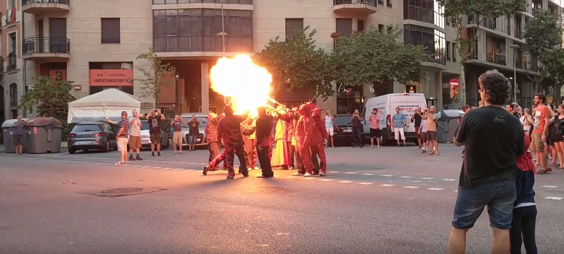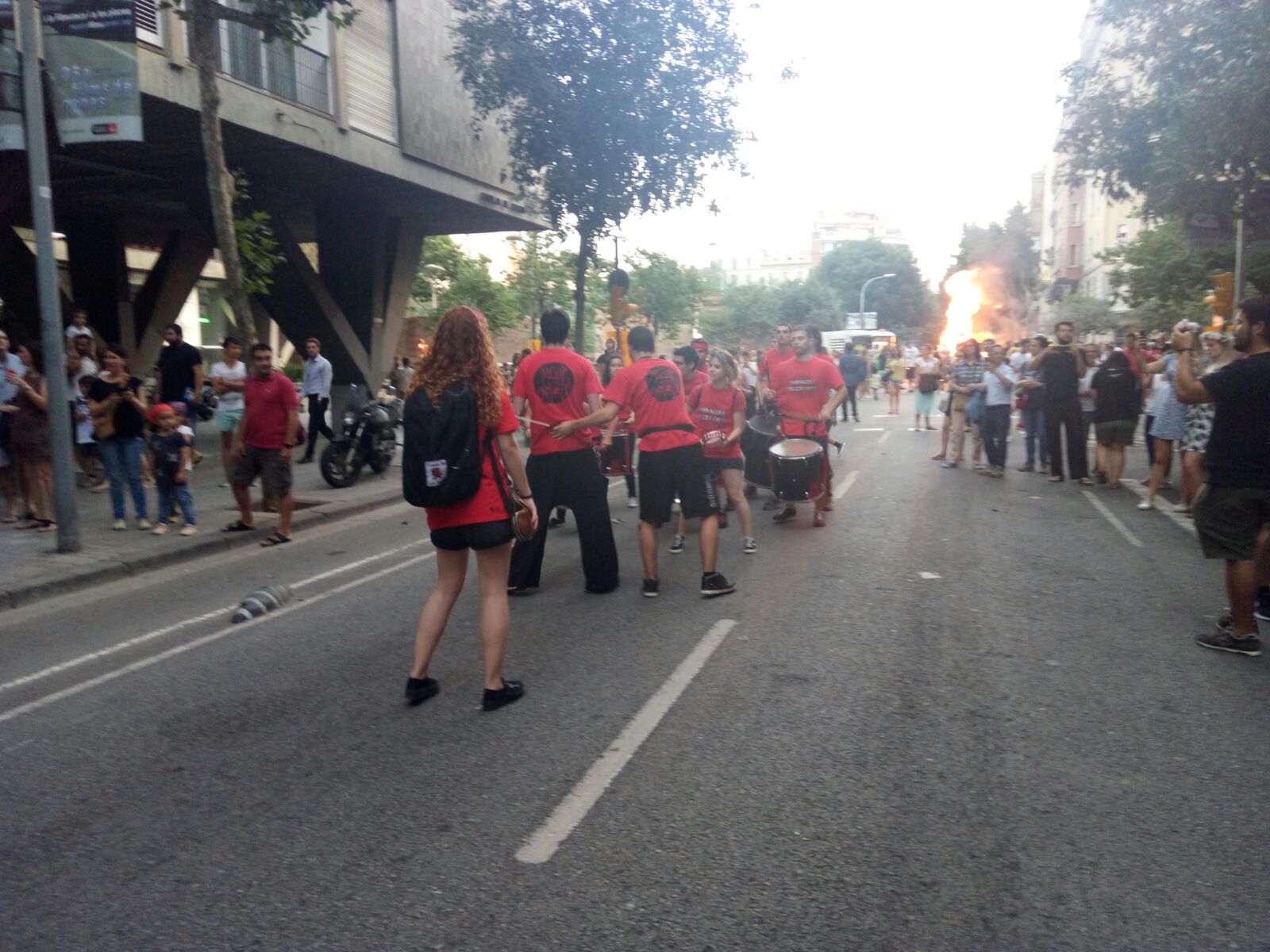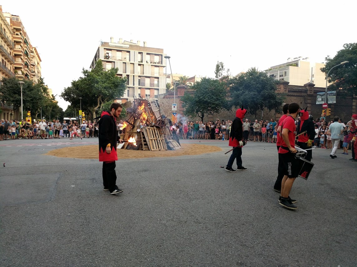 El passat 23 de juny, tabalers i cremadors de Diables de Les Corts vam baixar a fer festa i tradició amb els nostres veïns de l’Esquerra de l’Eixample. Primer vam escalfar l’ambient amb la percussió cortsenca davant de la foguera de la revetlla del barri, a la cruïlla del C/Borrell amb C/Consell de Cent.