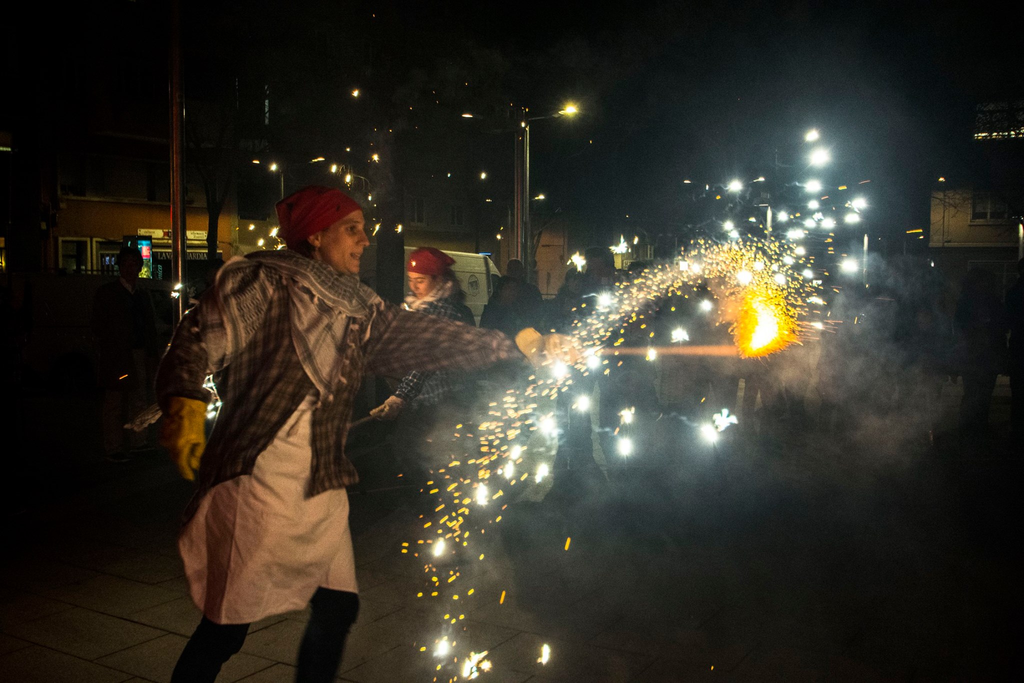 El passat dimecres 1 de març, després de setmanes d’assaig i preparació, vam oferir al veïnat l’espectacle que va escenificar la mort de la Reina Carnestoltes a mans de la Vella Quaresma a la Plaça Comas. Carrutxes, malabars de foc, el ritme dels tabalers… tot ben quadrat per passar del temps de festa sense fre del Carnaval al de reflexió i penediment que representa la Quaresma. I com a fi de festa, no van faltar els 18 quilos de sardines a la brasa i els 25 litres de vi blanc que van poder gaudir tots els veïns i veïnes congregats a plaça, com a cloenda de l’espectacle de foc. Cada any que passa, més persones del barri venen a participar en una de les tradicions més arrelades del nostre país. I si es amb la panxa plena i l’esperit satisfet, millor que millor!