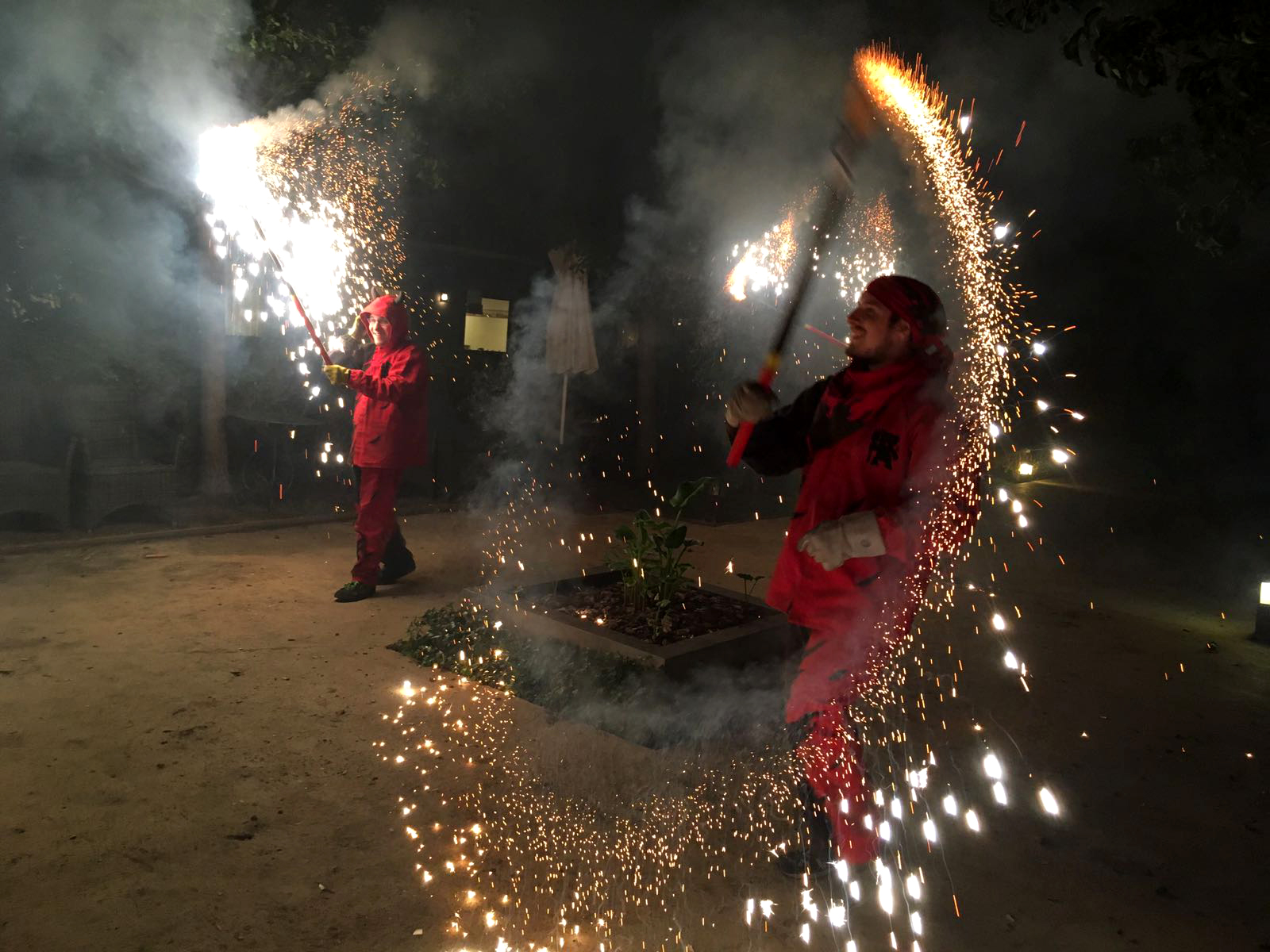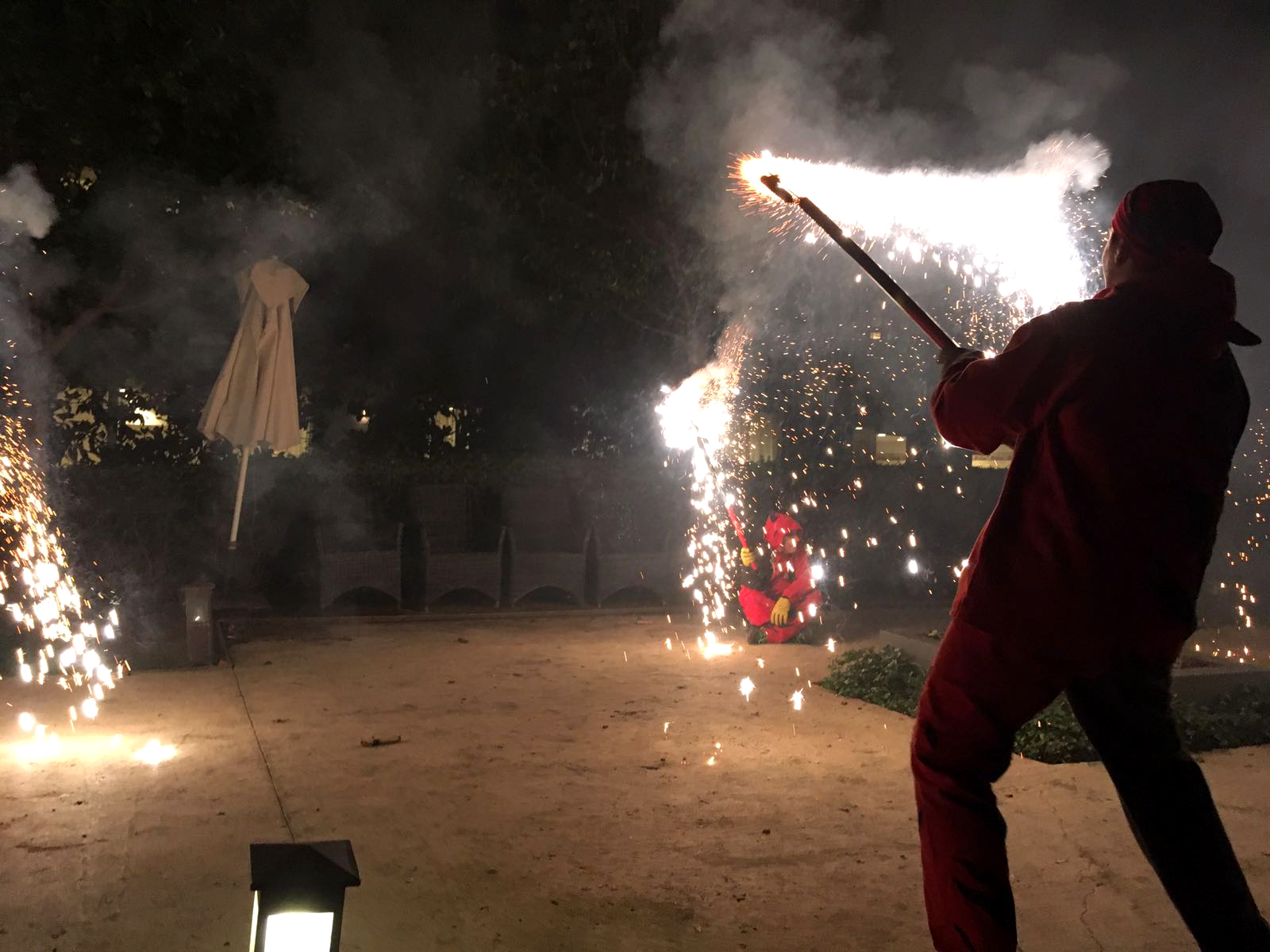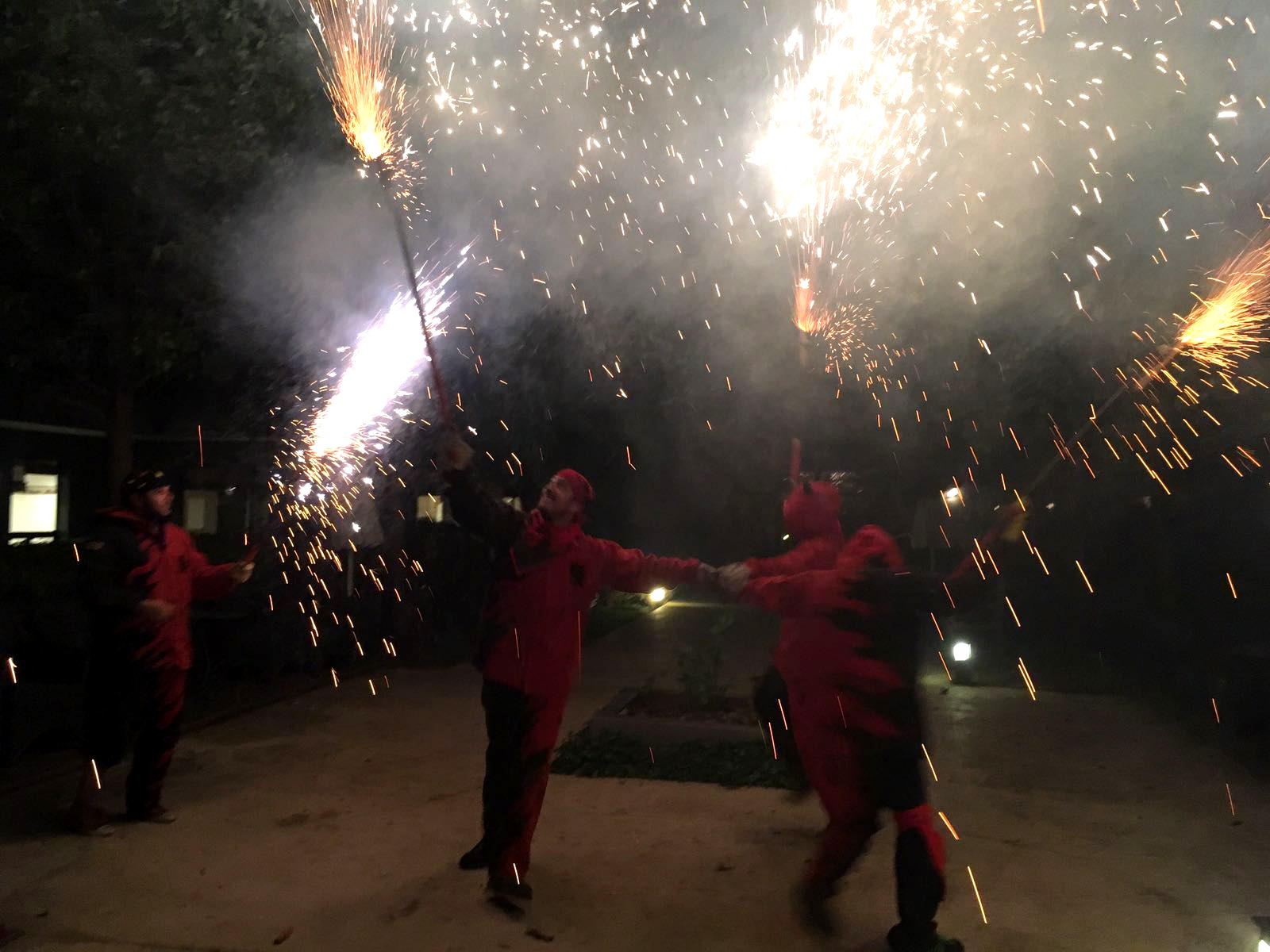 Com ja ben be es tradició, quan arriben les castanyes, els panellets i el moscatell també arriba el nostre espectacle de foc de tardor. Aquí trobem una bona oportunitat per mostrar la nostra pirotècnia més lluïda per fer gaudir als nostres veïns mes grans. Acompanyats per la nostra percussió vam fer bategar el centre. Després dels aplaudiments i les salutacions, vam gaudir d’un bon tiberi de panellets, moniatos i moscatell cortesia dels treballadors de la Residència Sanitas Les Corts.