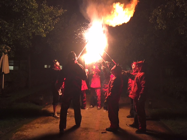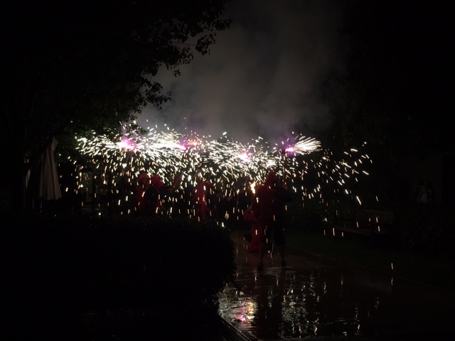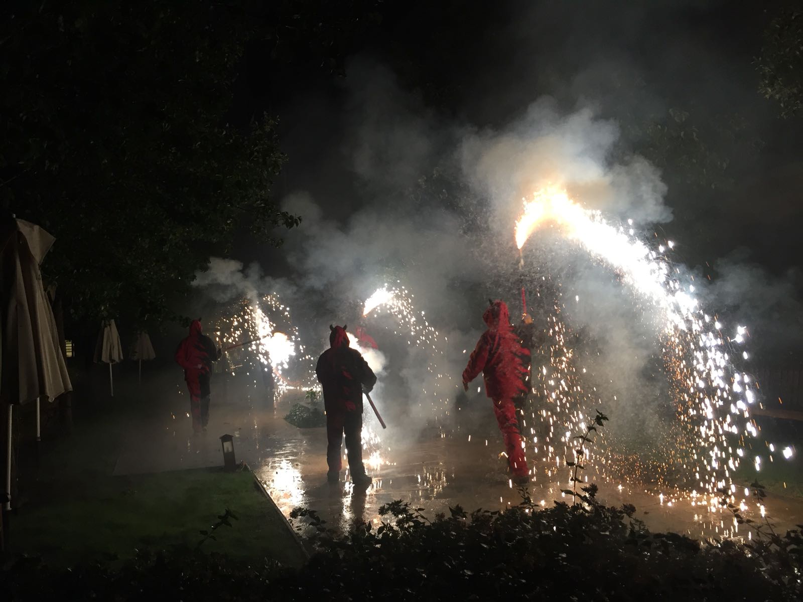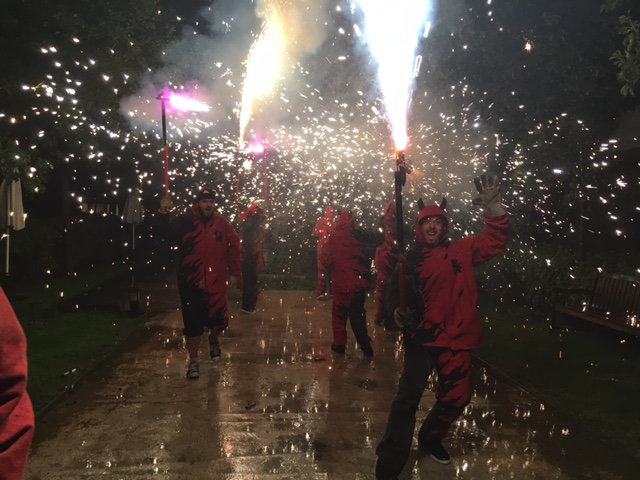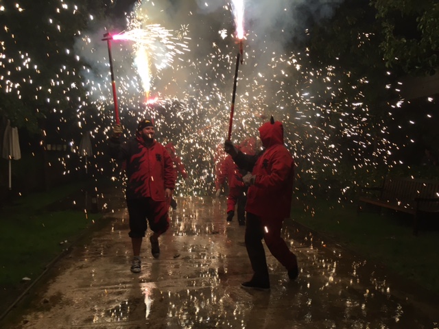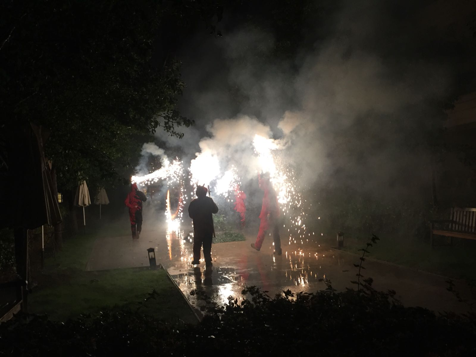 El passat dimecres 18 d’octubre, tot i la pluja, vam poder realitzar l’espectacle de foc i percussió que teníem preparat per treure un somriure als nostres veïns més grans. Vam omplir el pati de llum i color amb les espurnes dels diables que ballaven sense parar, tot al ritme dels tabals.