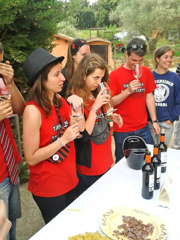 Desprès de gaudir d’un dinar a càrrec de l’organització de la fira, vam marxar a les Bodegues Mas Vida properes a Cistella, on la Dri, tabalera il·lustre de la colla ens va fer de guia pel negoci familiar, tot remullat amb un tastet de vins combinat amb un aperitiu.