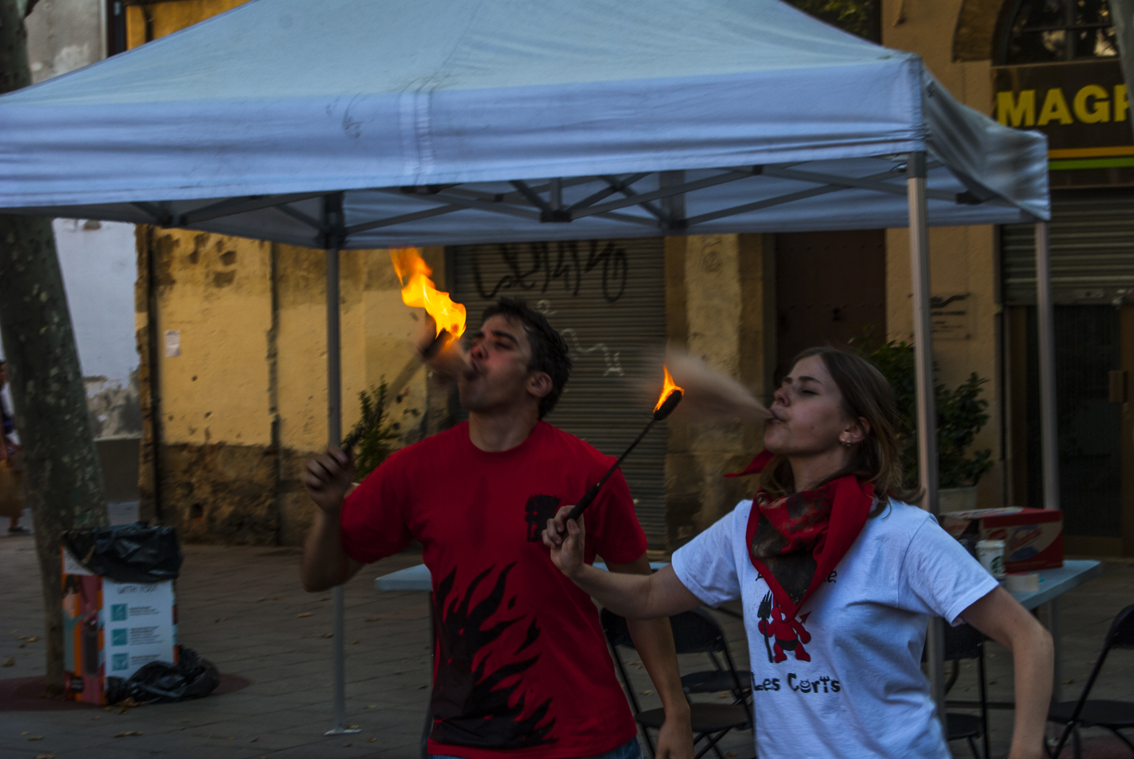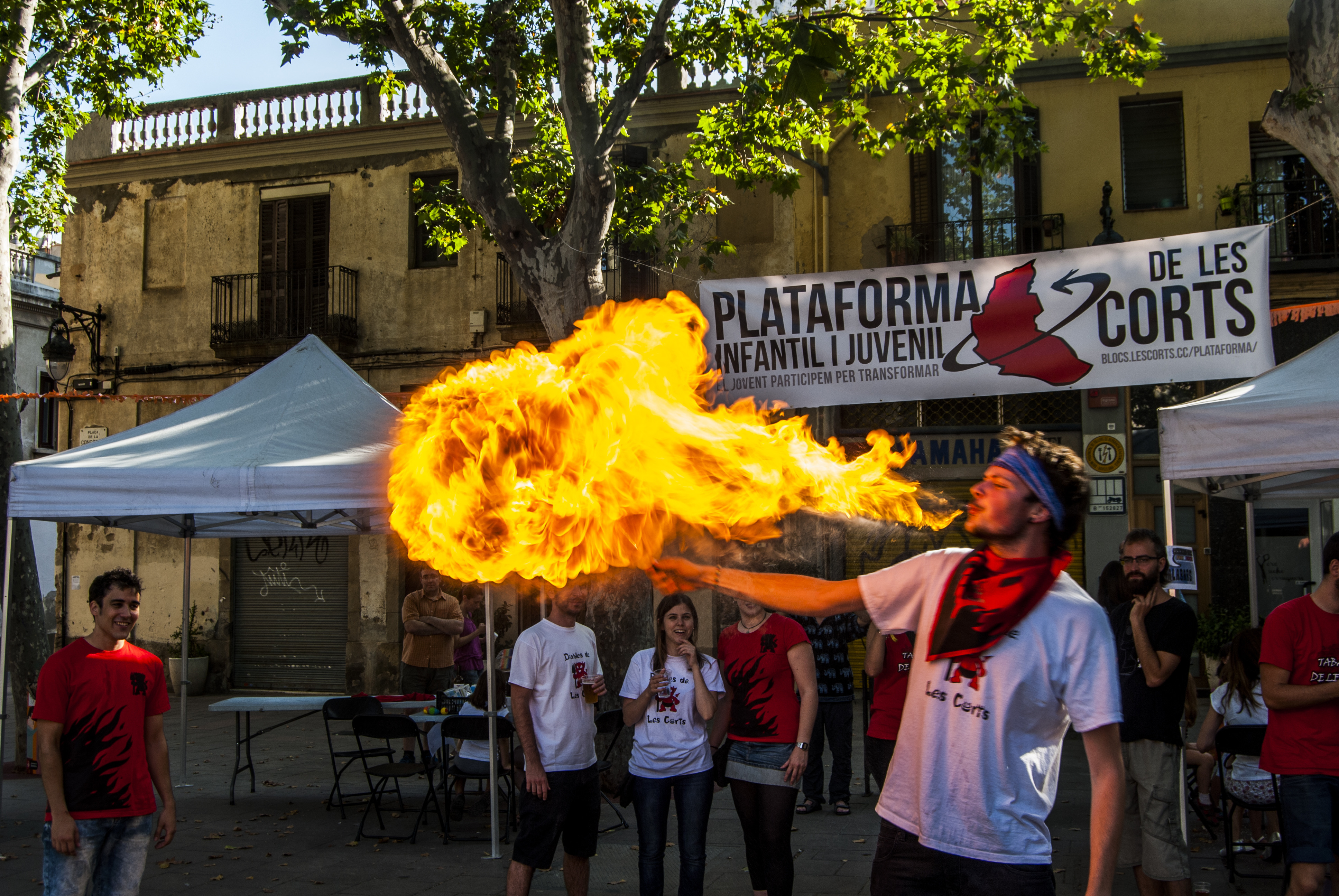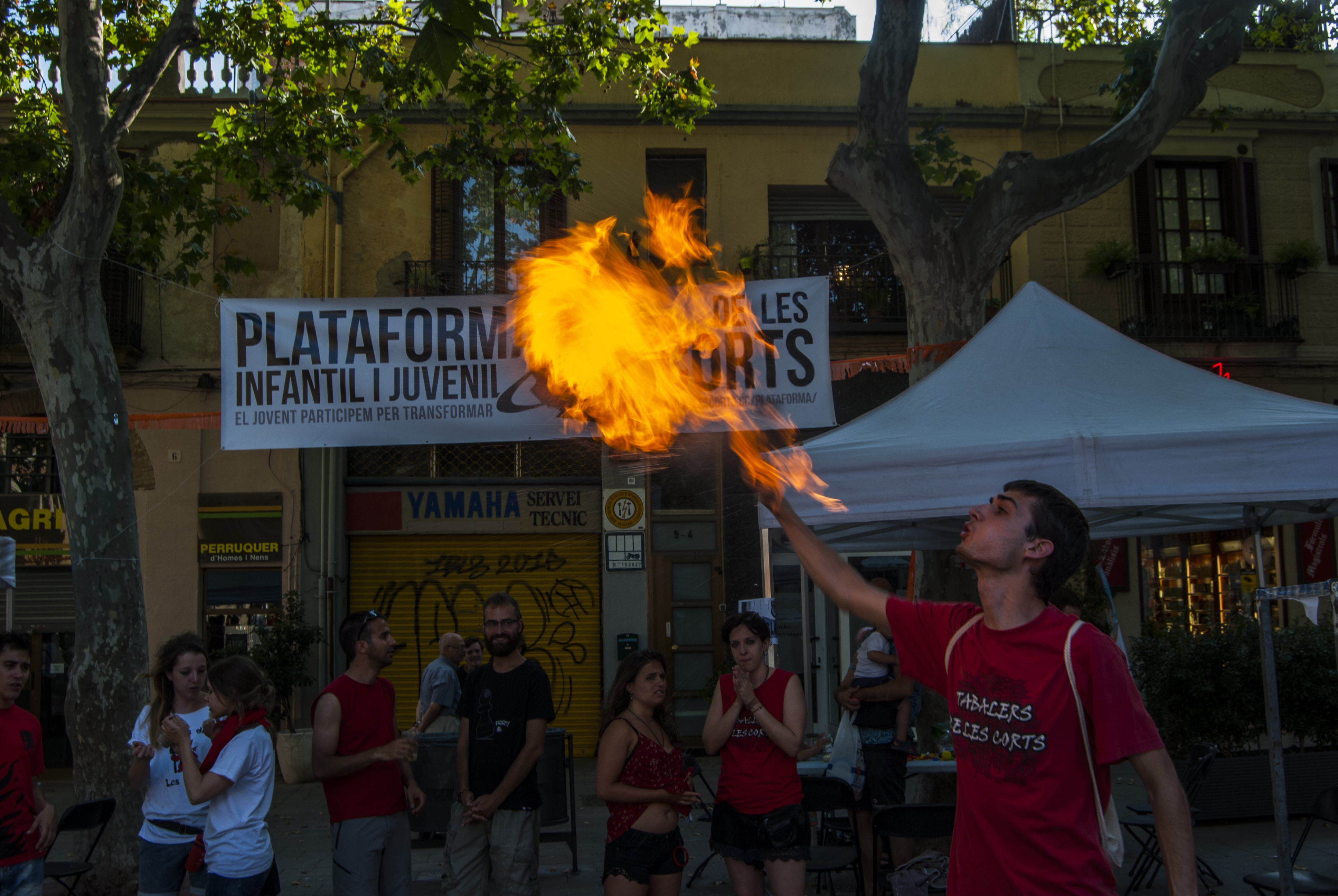 L’objectiu de la revetlla: fer una gran festa del foc i la música pels carrers del casc antic del barri, amb l’epicentre a la Plaça Concòrdia. A l’inici de la tarda, temps de Cafès Feministes, a càrrec de Cortsenques Dissidents. Al finalitzar, els més menuts van poder crear els seus propis instruments reciclats o crear malabars, i els més grandets, tocar el djembé i el “cajón flamenco” o bufar foc amb cola-cao.