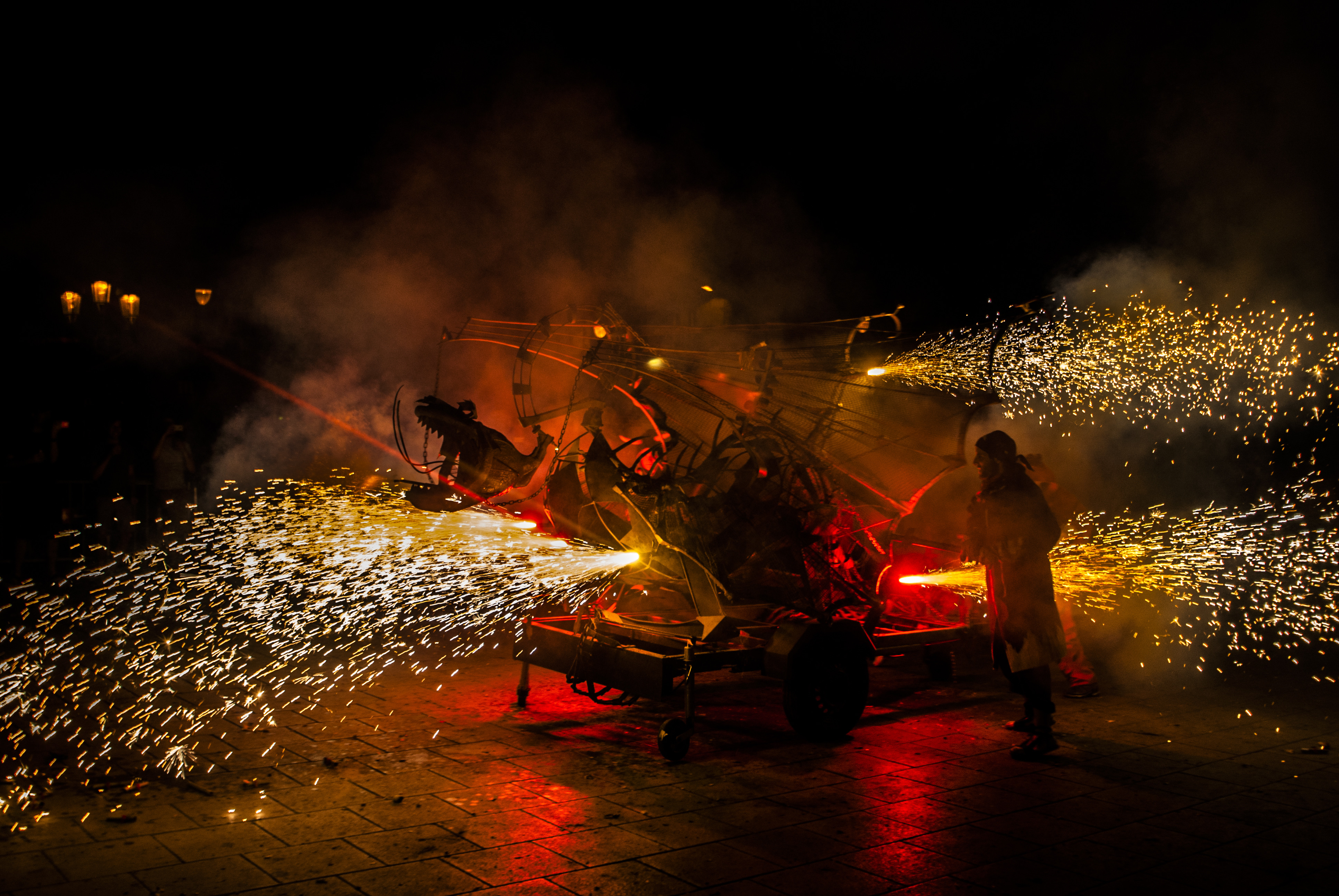 Al vespre, temps de la cercavila amb els tabalers de la Repúbli-k de l’Avern, Bocs de Can Rosés, Trip-Itaka i Diables de Les Corts. Per anar escalfant la nit, el primer concert amb el heavy de Kill The Krait, i al finalitzar, els diables vam poder gaudir d’un gran correfoc. El Guardià de Les Corts, el drac del barri, com a protagonista al inici i final del recorregut a plaça.