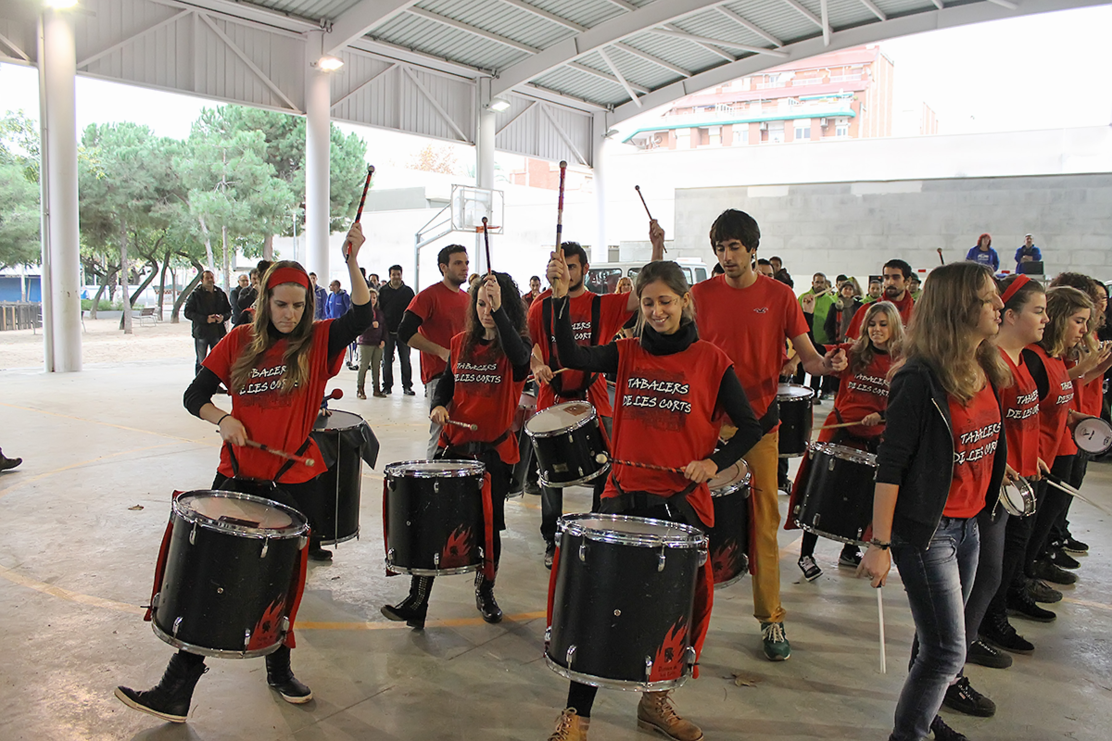 Dotze grups de percussió, bastoners, castellers, geganters i altres entitats i manifestacions de la cultura popular d’Esplugues i la resta de Barcelona es van donar cita per una fita solidaria. I els Tabalers de Les Corts vam aportar el nostre humil granet de sorra!