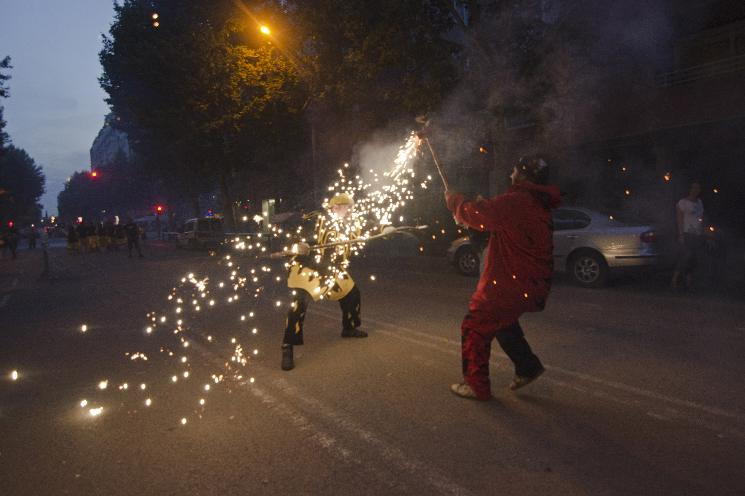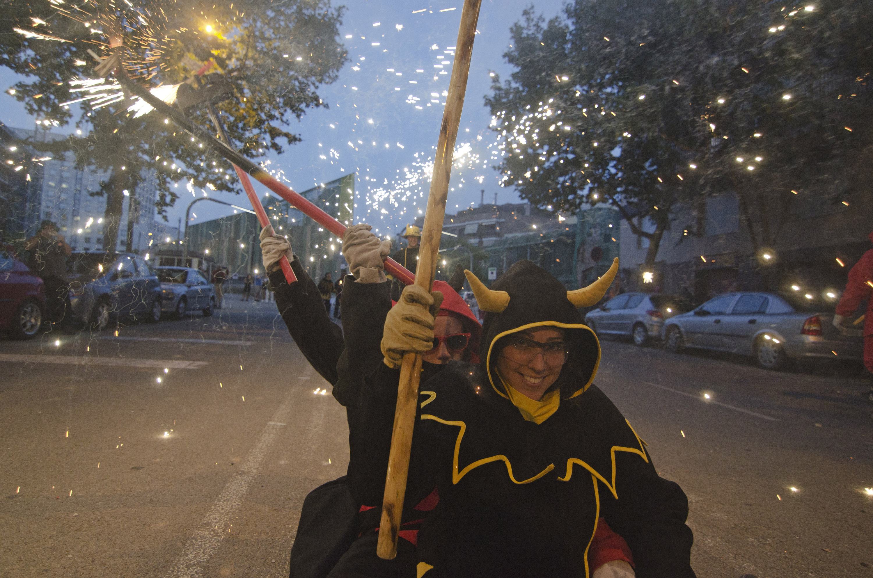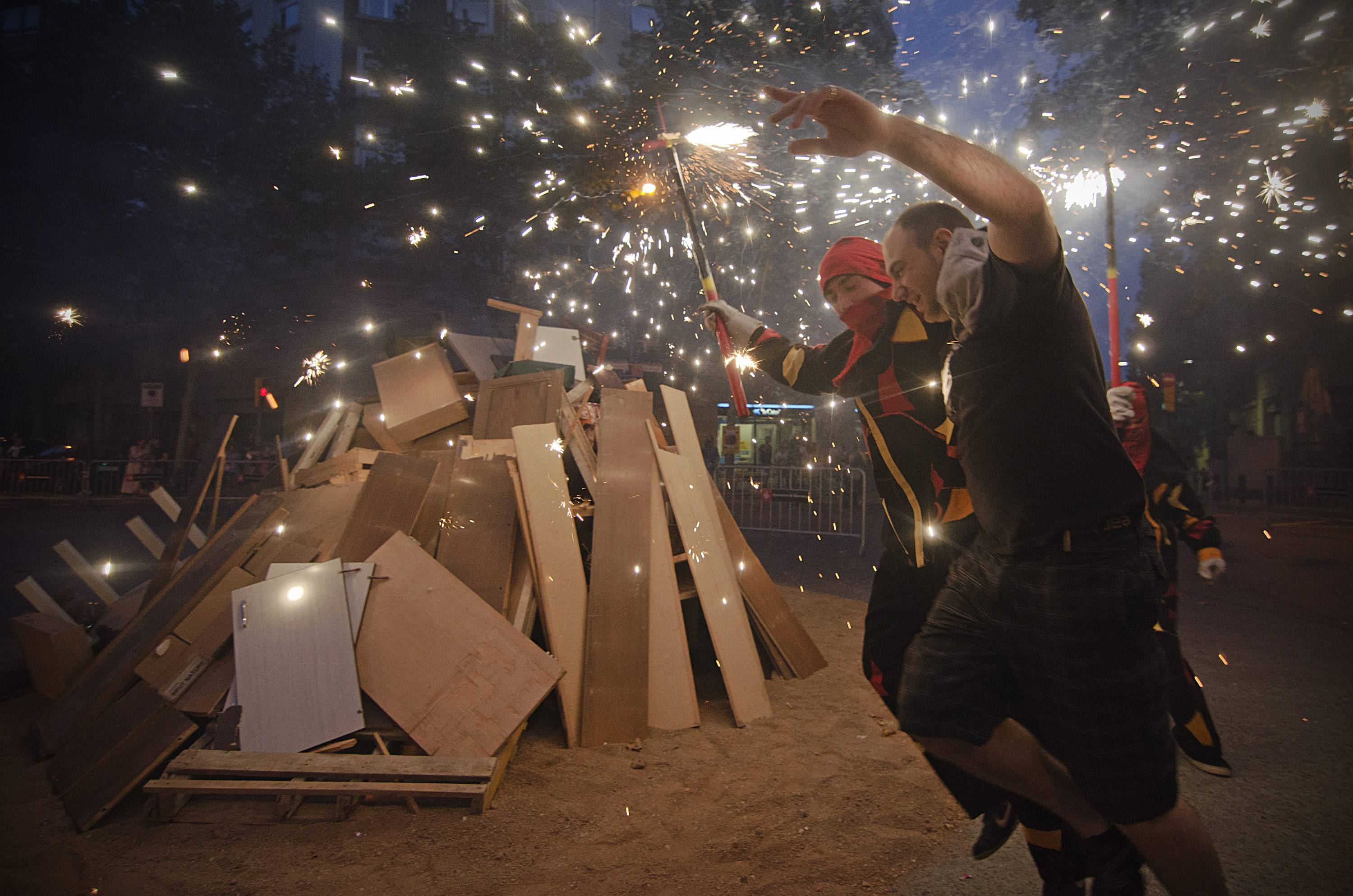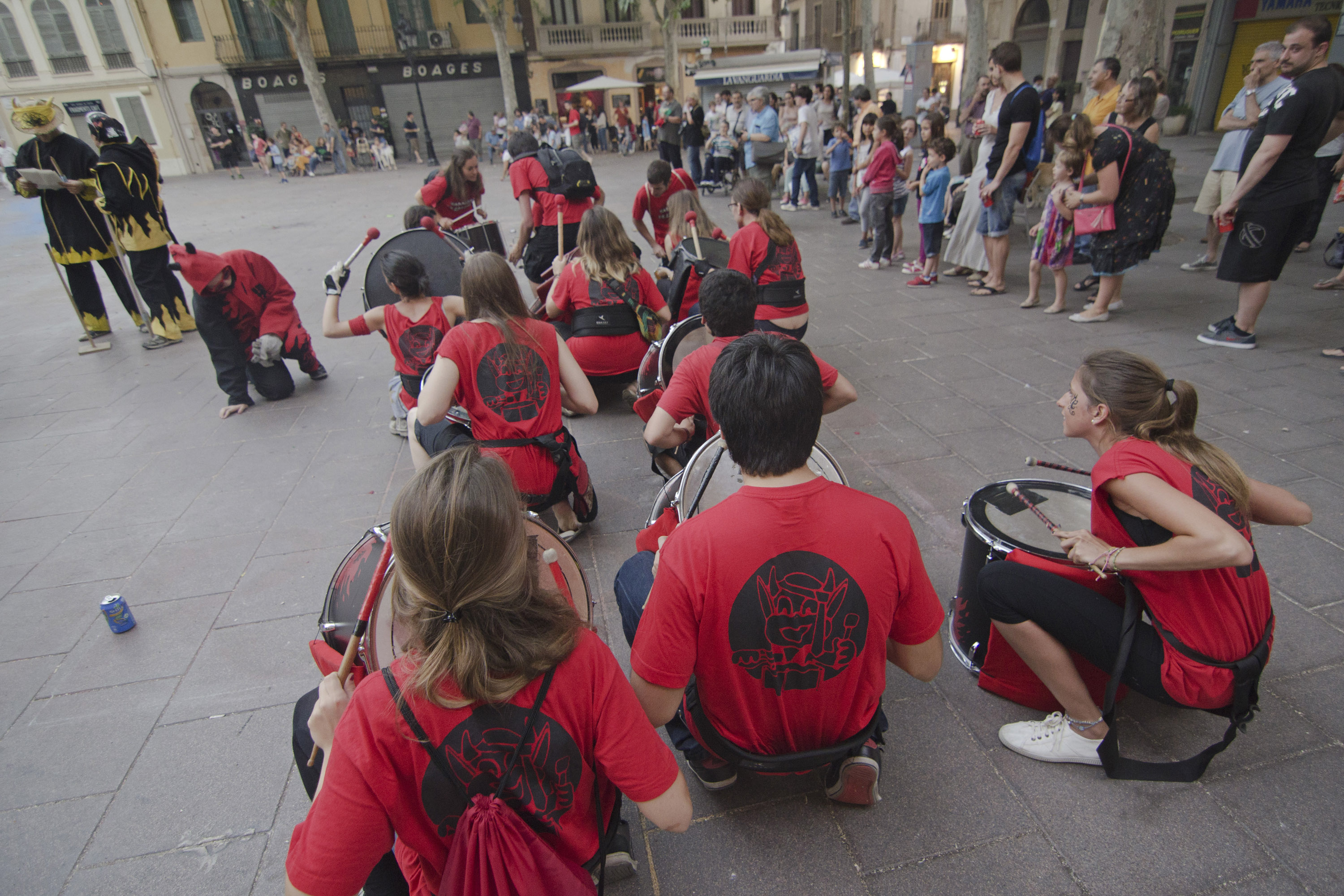 Aquest Sant Joan es el primer en que Diables col·labora i s’implica en una de les tradicions mes arrelades al país. Una tradició recuperada per l’Ateneu i els companys de foc i percu del barri -Bocs- que esperem tornar a repetir any rere any. Tot va començar amb la tabalada inicial a Plaça Concòrdia, coincidint amb l’arribada de la Flama del Canigó a Les Corts.