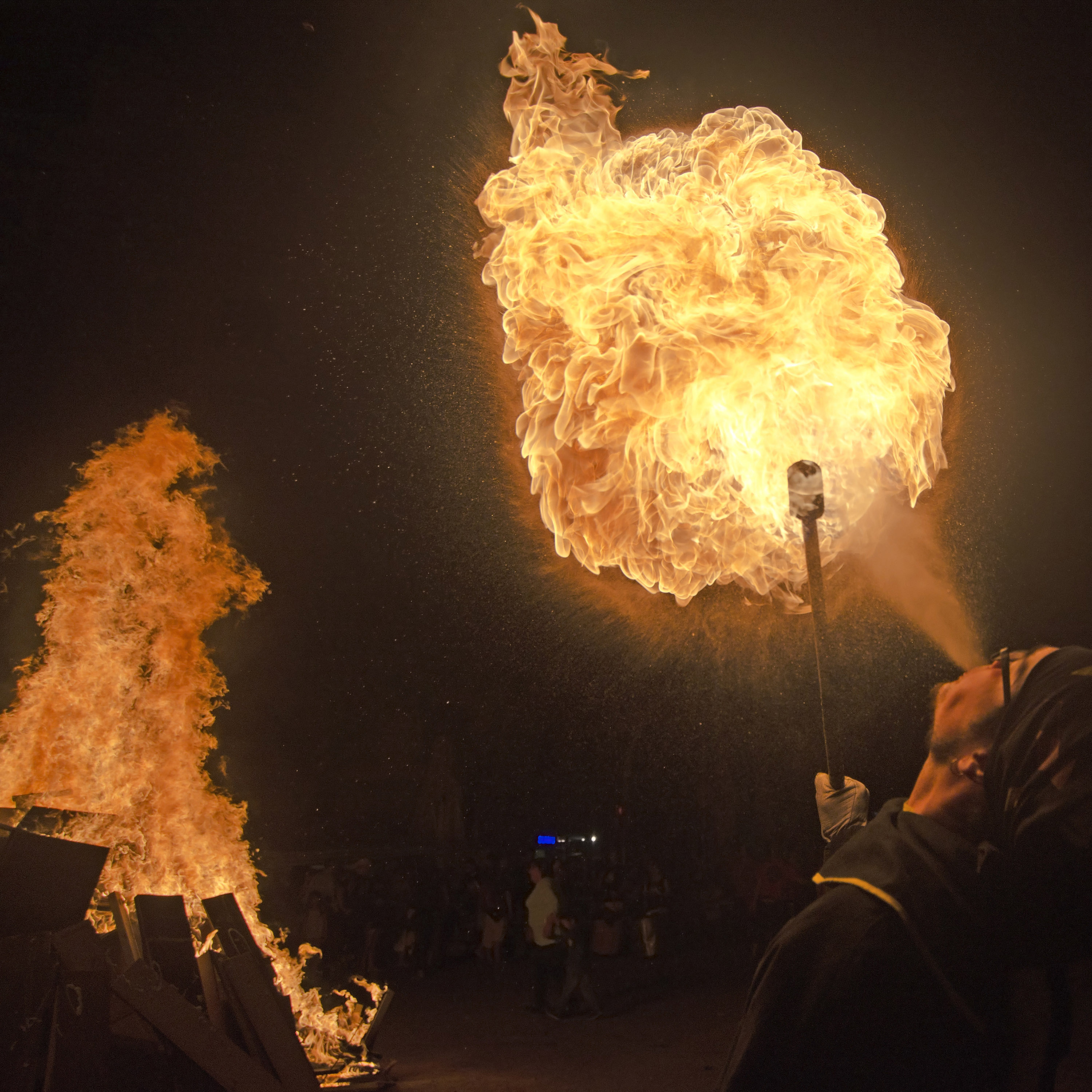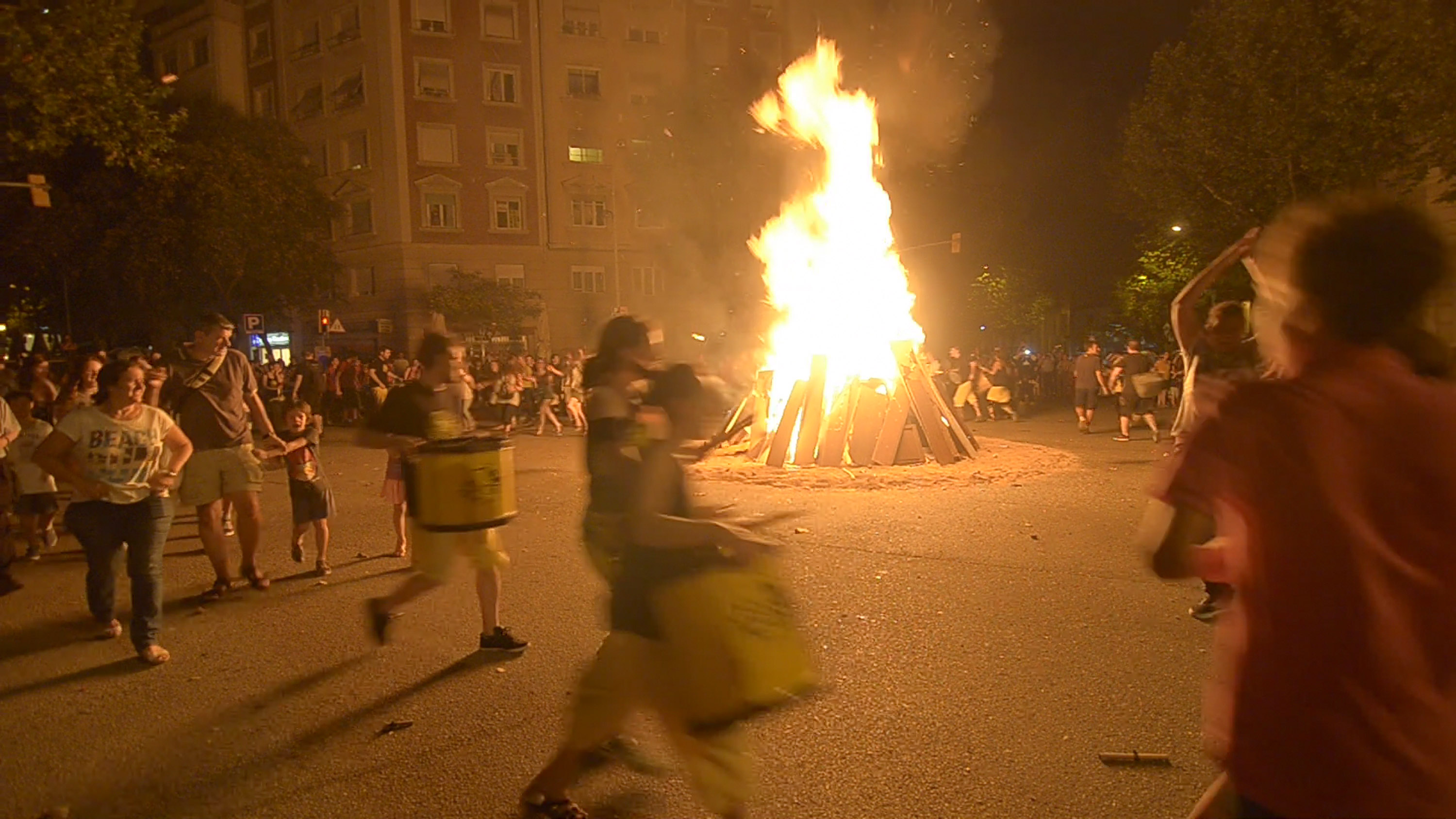 Just desprès, el seguici festiu del foc i la percussió va acompanyar a la flama fins el recinte de la foguera, on es va realitzar l’espectacle de foc amb la temàtica de la nit de Sant Joan i els Països Catalans. El moment més màgic va arribar al finalitzar l’espectacle, quan vam encendre les entitats de foc la foguera i moltíssims veïns i veïnes, de totes les edats, van ballar fent voltes a les flames al ritme dels tabals de Bocs i Diables.