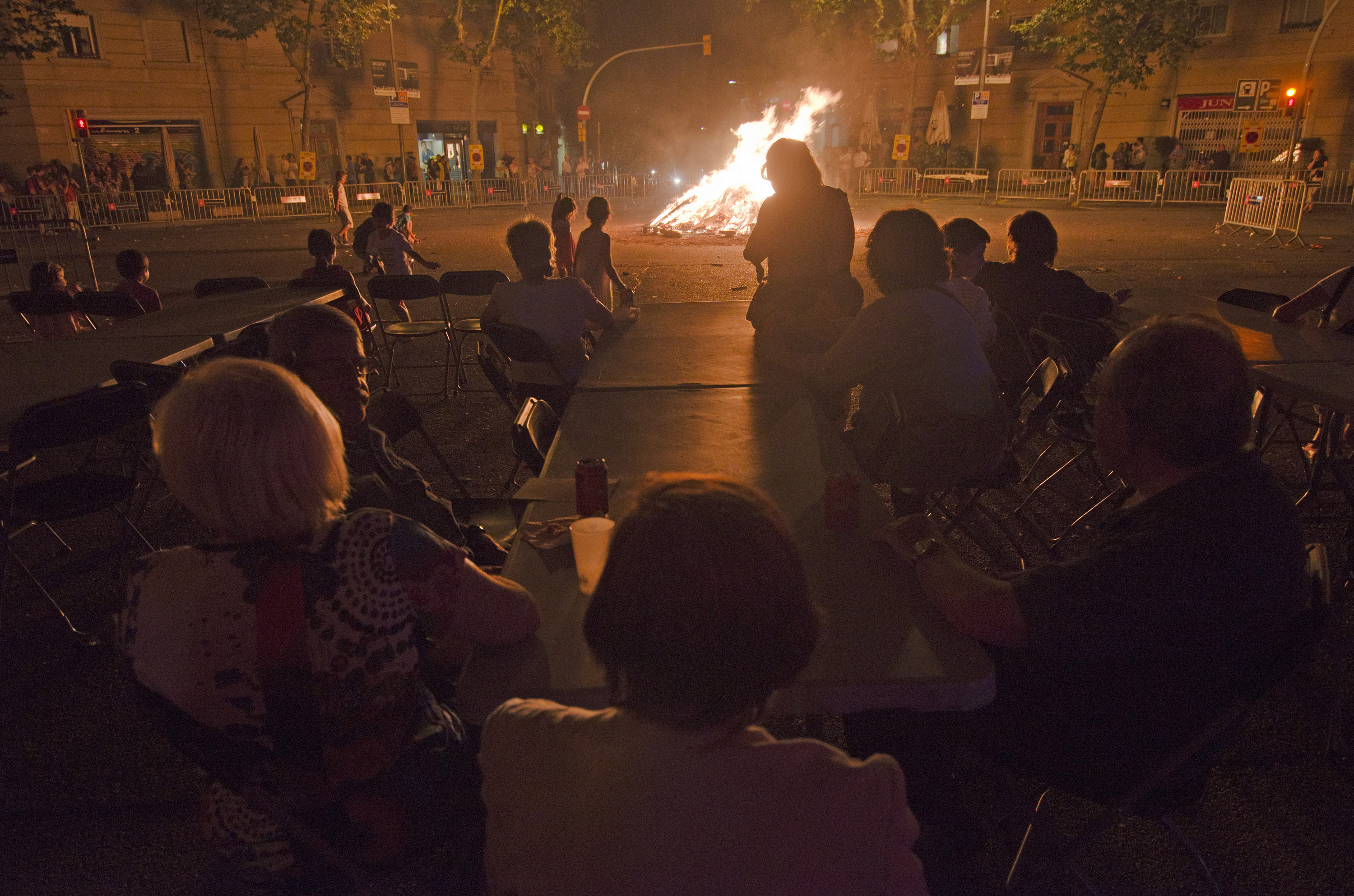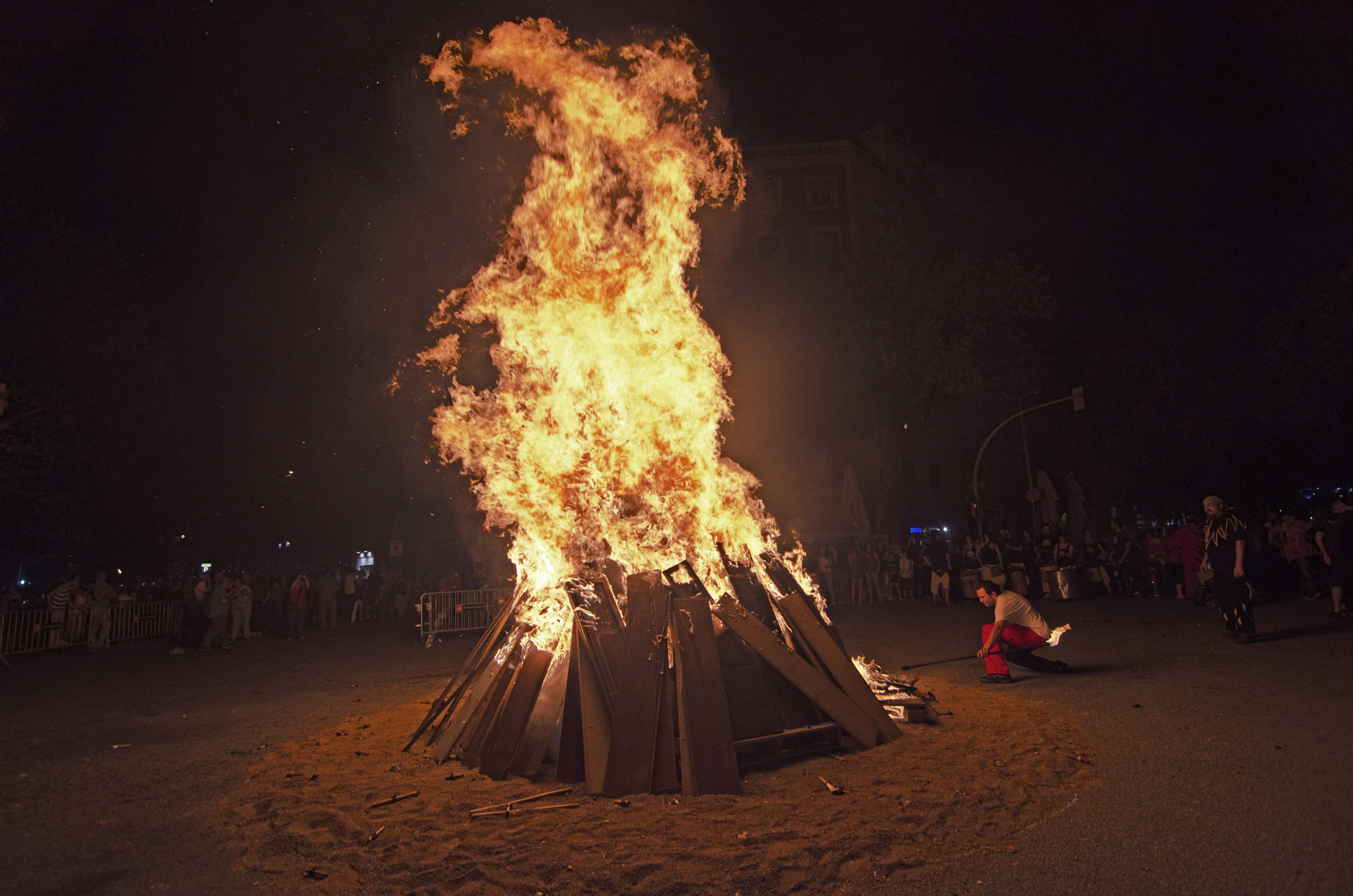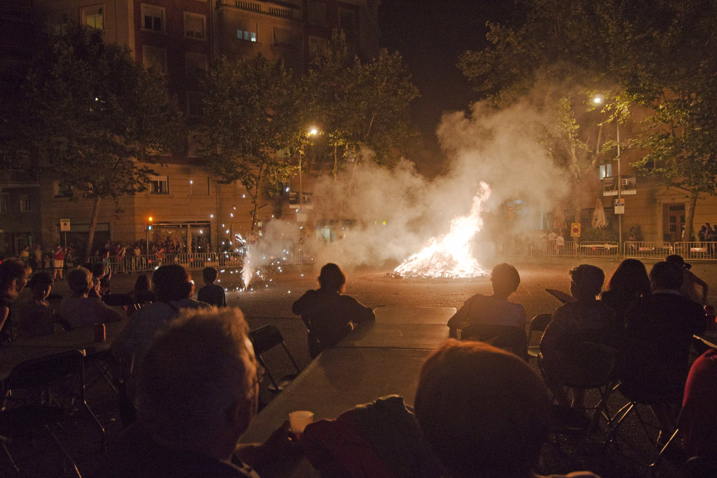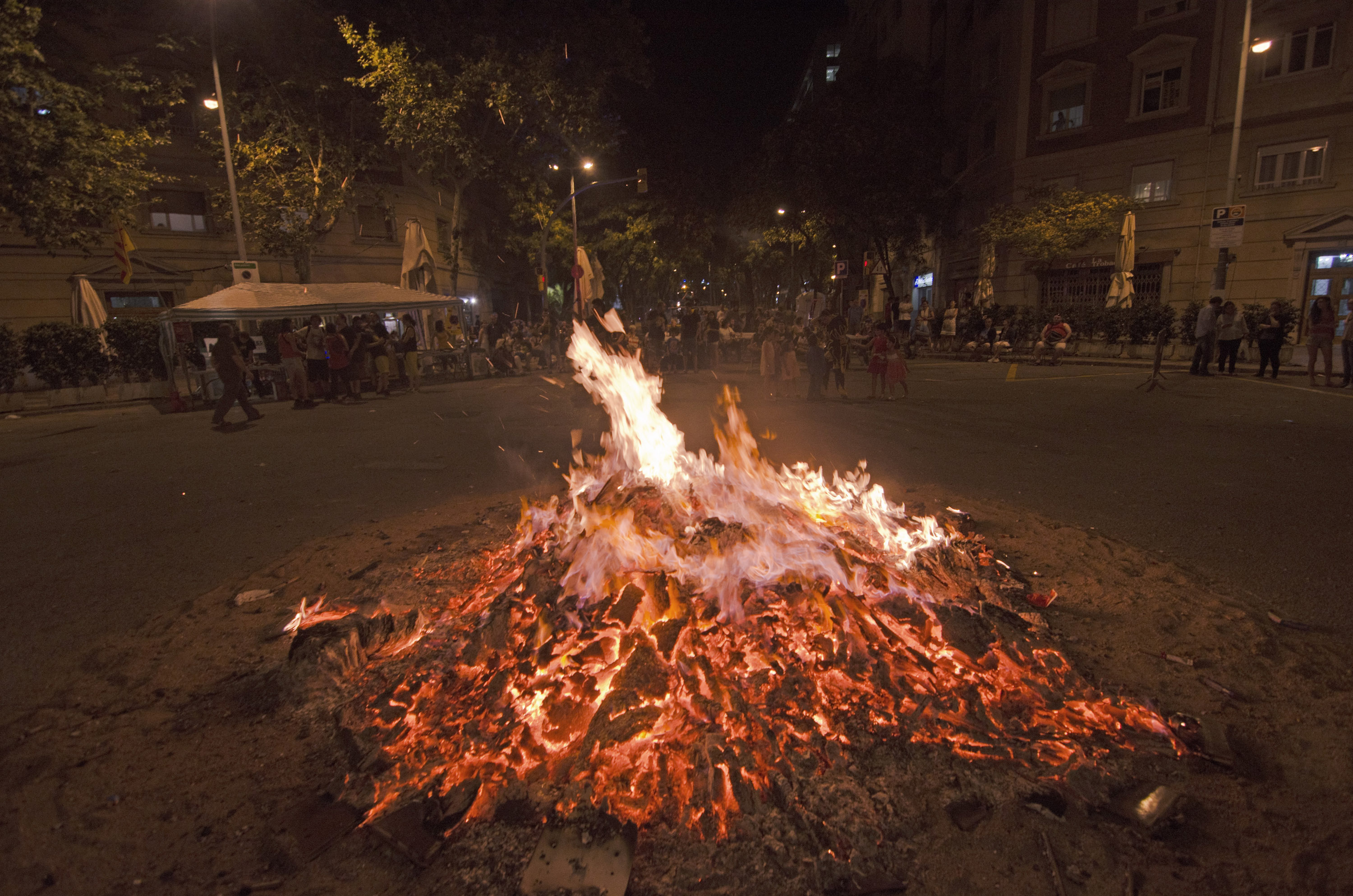 Una nit on el foc es tan present i protagonista al barri no podria ser una altra que la Revetlla de Sant Joan. El passat dilluns 23 de juny, Les Corts celebrava, gràcies als esforços de l’Ateneu Popular de Les Corts i dels Bocs de Can Rosés, la III Nit de Foc Cortsenca. Una nit curta, calorosa i plena de espurnes i com a símbol de la vetllada, la foguera encesa al C/Europa amb C/Gandesa.