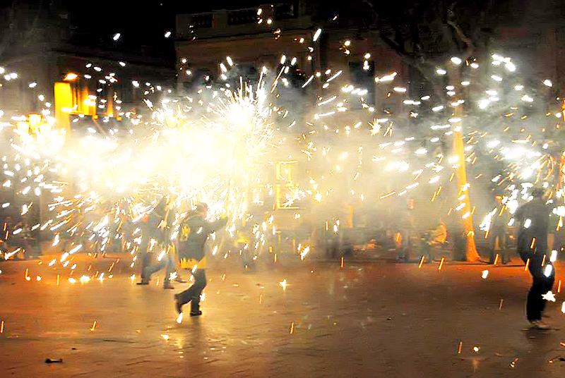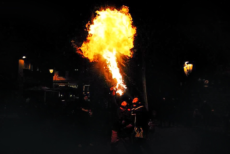 Tot començà a les 21:30 del passat dijous 31 d’octubre amb un petit espectacle de foc i percussió a la Plaça Concòrdia, sens dubte un dels espais més estimats pels cortsencs i cortsenques. Al ritme dels tabals dels Bocs de Can Rosés i de Diables de Les Corts, les espurnes van envair la plaça. Molts nens i nenes disfressats amb els seus pares van poder gaudir del acte. Fins i tot els més petits del barri es van arrancar a ballar amb els tabalers!