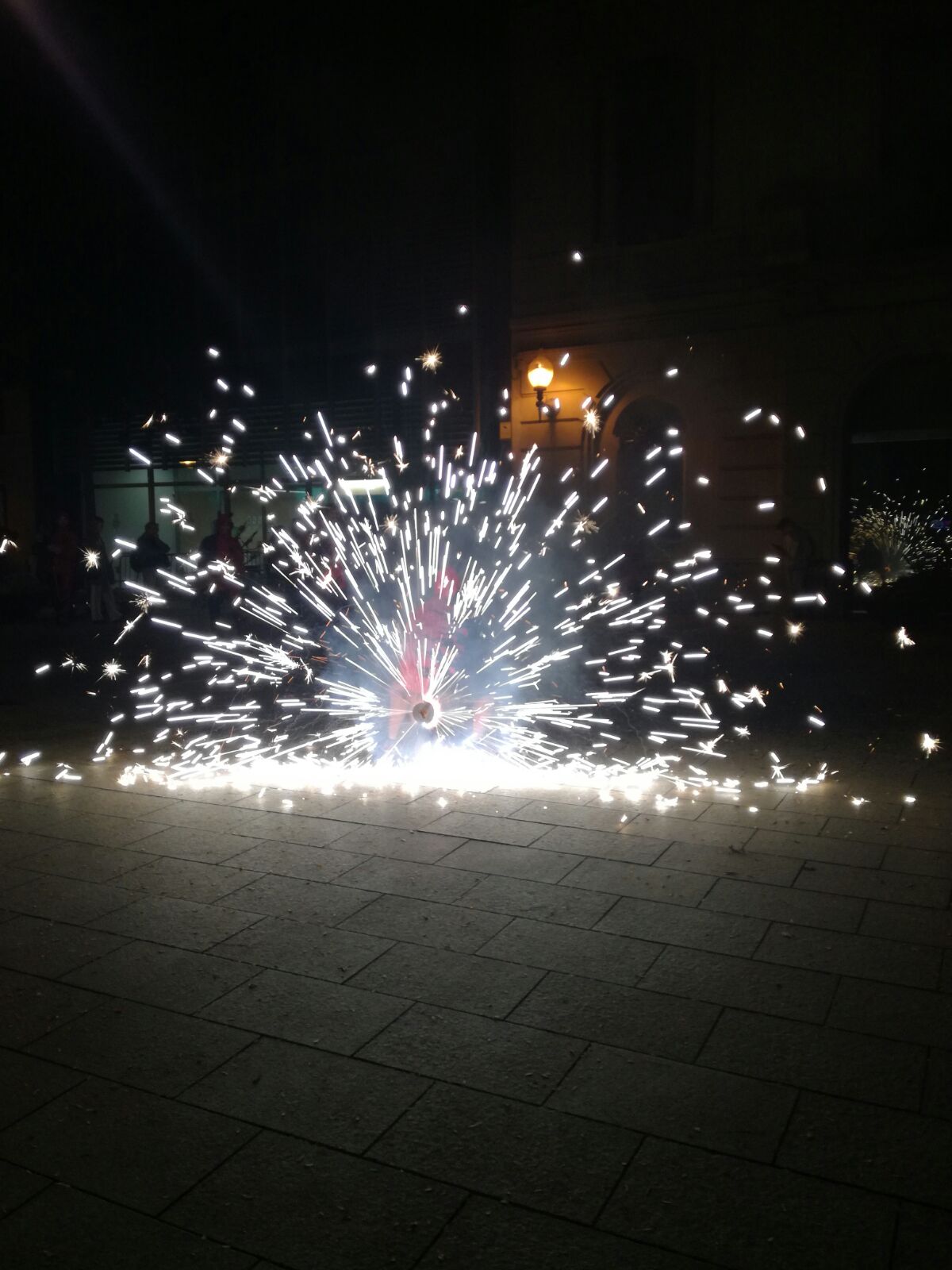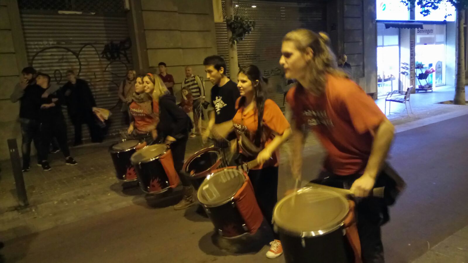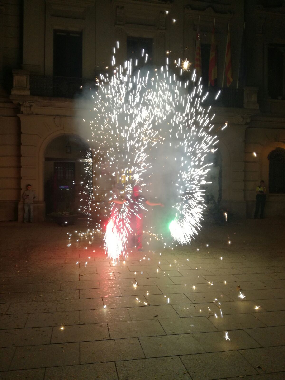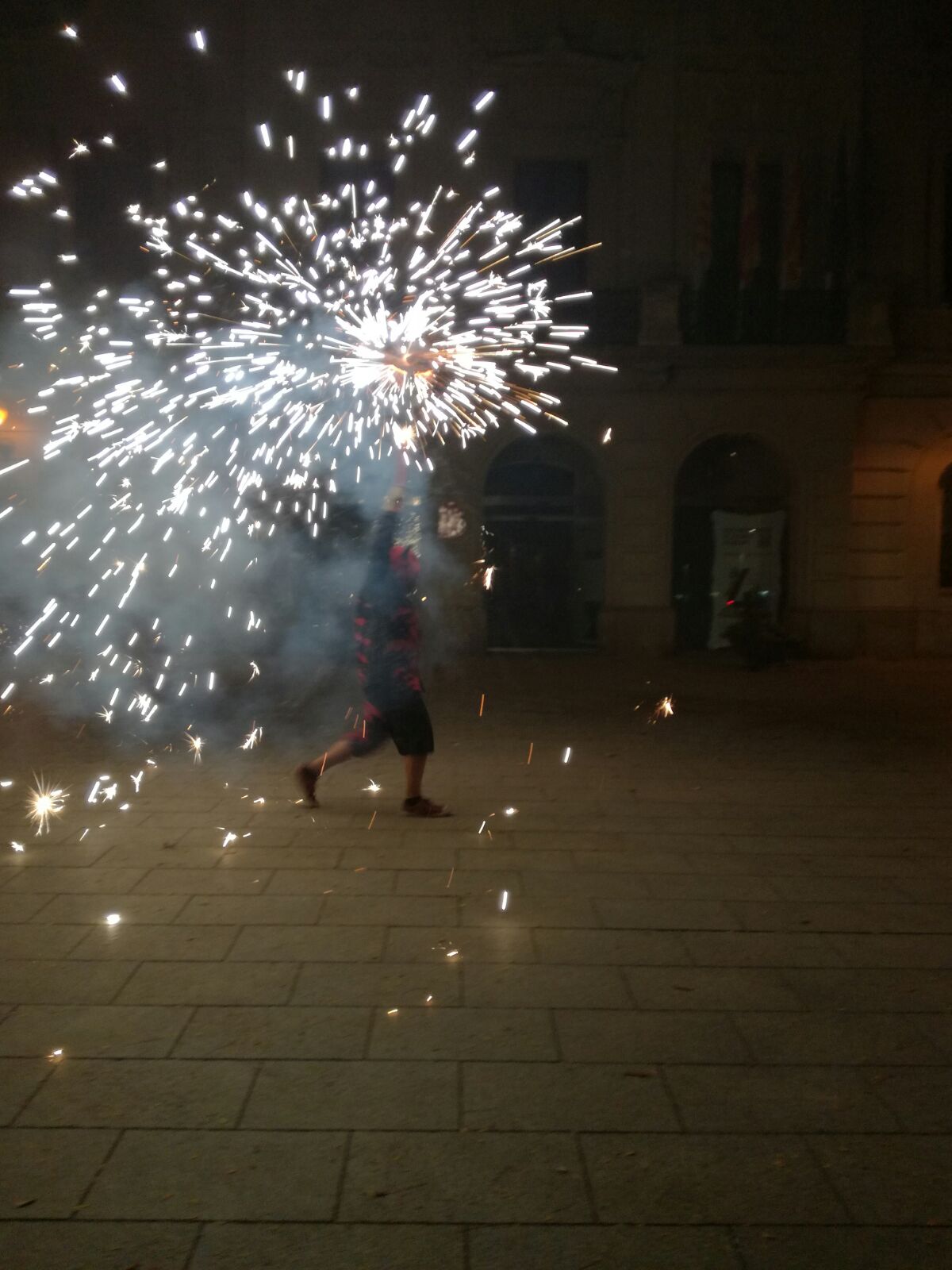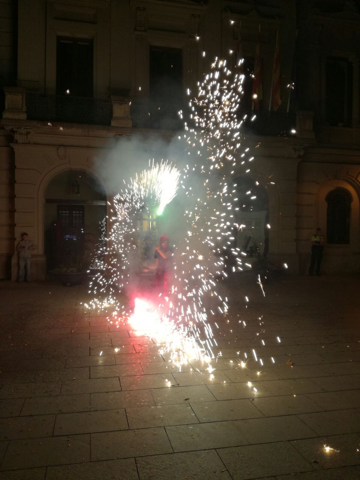 Tot va començar amb un espectacle de foc i percussió a la plaça Comas… Entre la festa i el foc, un diable va morir de manera sobtada. D’entre el públic va sorgir una figura sinistre que cridava esbojarradament coses sense sentit. Així va començar una processó fúnebre cap al Casal de Joves, on ja hi vam trobar una cua de gent esperant per entrar al passatge del terror.