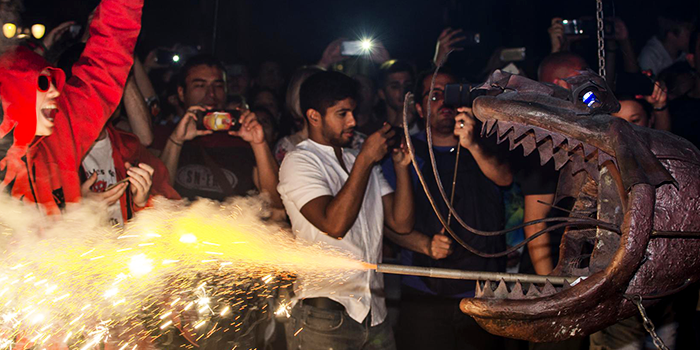 Una nova edició de les festes majors de Barcelona: La Mercè! Enguany, repetim la nostra presencia a la Passejada de Bèsties portant El Guardià de Les Corts, el drac de foc del barri, a remenar les ales pels carrers del casc antic de la ciutat.