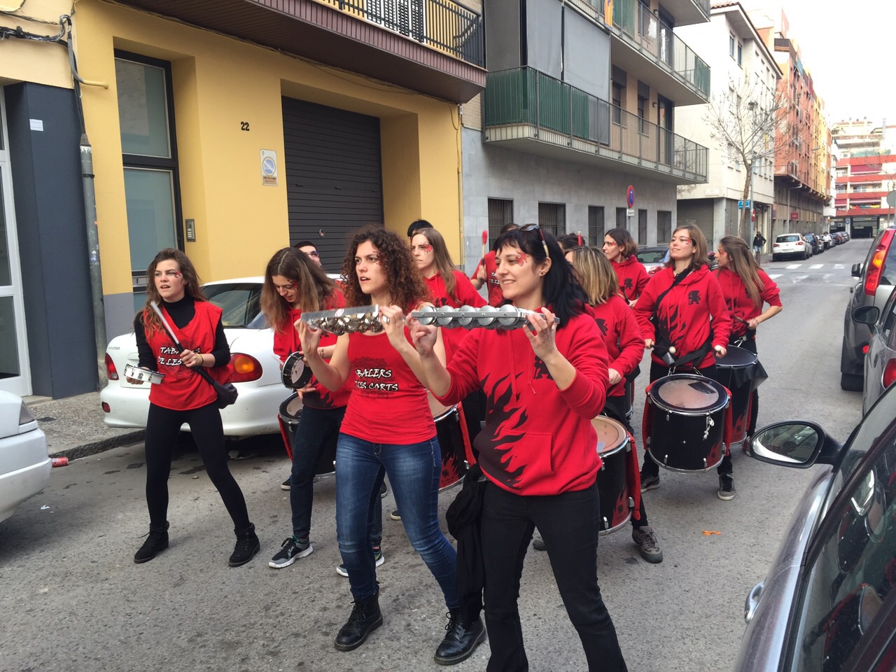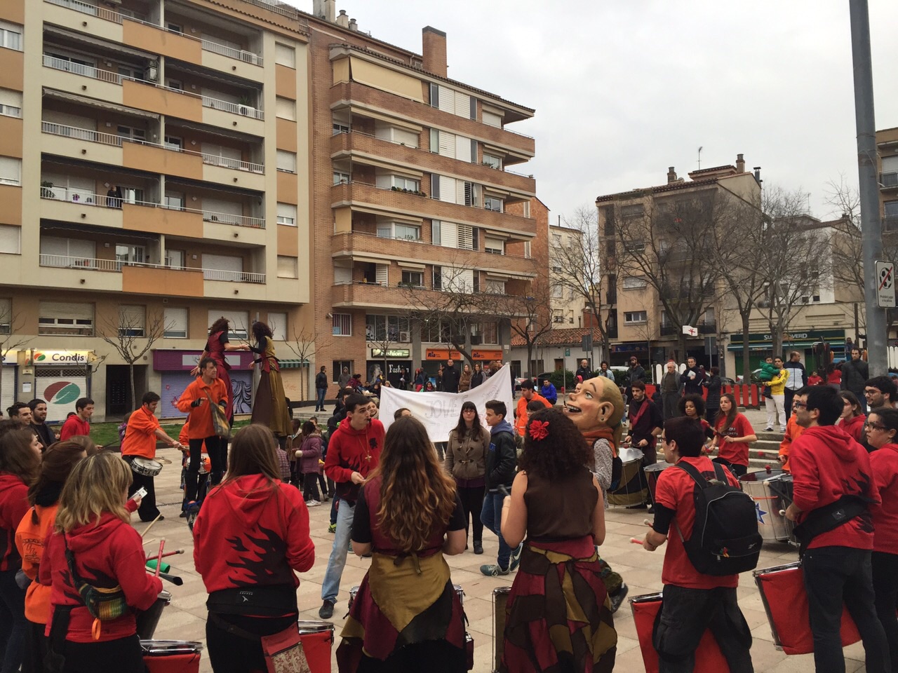 A les 11 del matí ens trobàvem obrint el Casal de Joves de Les Corts i traient tots els tabals i estris necessaris per afrontar una jornada fora del barri. Amb els cotxes carregats fins el sostre i amb una mica de mandra als ulls, vam emprendre camí cap a Girona.