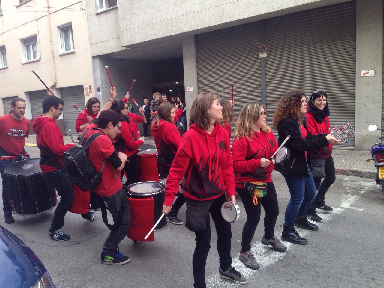Què millor que una tabalada per acabar bé la setmana? El diumenge 22 de març es preveia plujós i avorrit i va acabar sent un gran dia en què vàrem coneixer la colla dels Xirois del barri de Santa Eugènia de Ter (Girona), tot ajudant-los a donar veu al jovent de la zona.