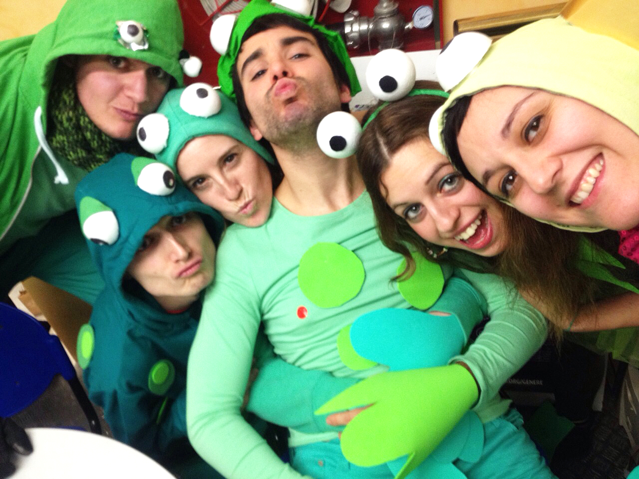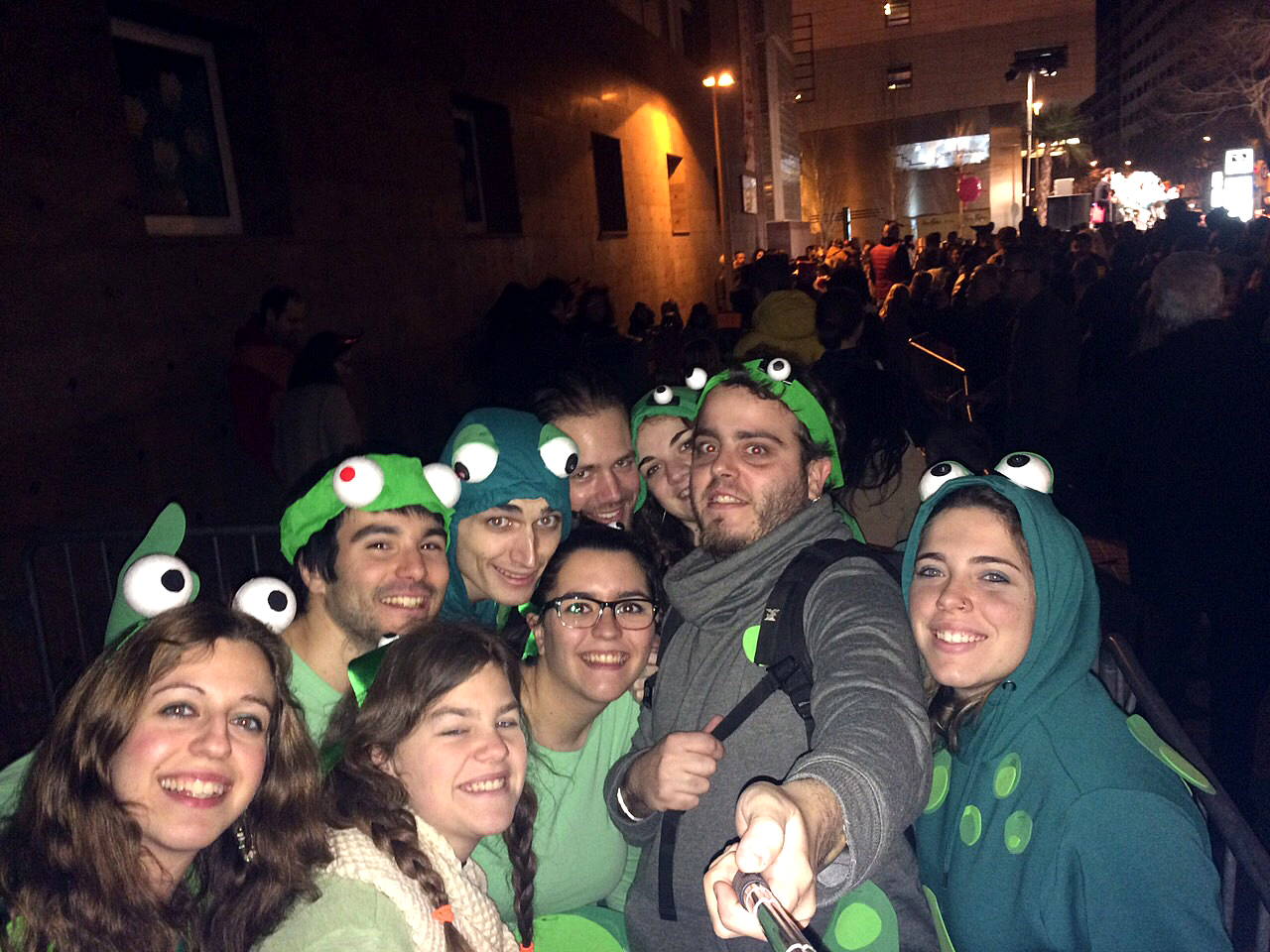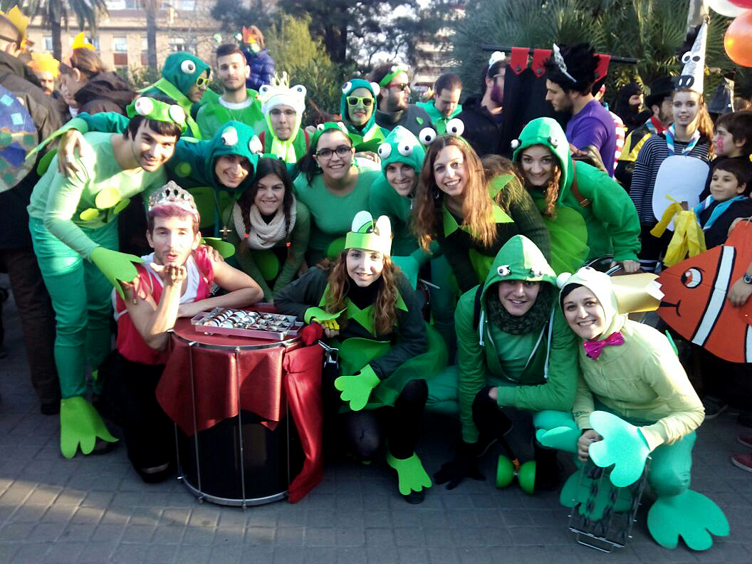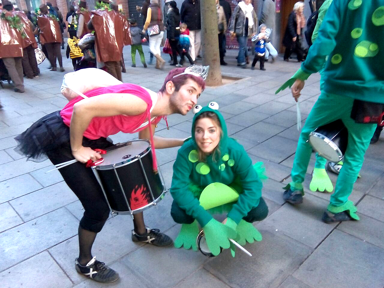La Plaça Comas era ben plena per veure passar totes les comparses, i per que aquestes fessin els seus lluïments davant del Jurat de la Rua, prenent nota al balcó de la Seu del Districte. Els Princesots i Croacs de Les Corts, la comparsa de Diables de Les Corts d’enguany, va donar la nota -tant pel ritme i la diversió dels tabals- com per la munió de granotes i gripaus que passaven pels ulls de la resta de comparses i veïns congregats en un acte tan nostrat i per totes les edats del barri. Amb les granotes i gripaus diableros els acompanyaven tres princeses -bé, princesots- que semblaven sortir més d’un malson que d’un compte de somni!!!
