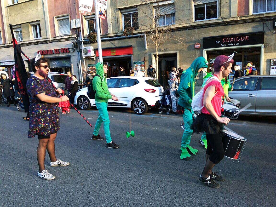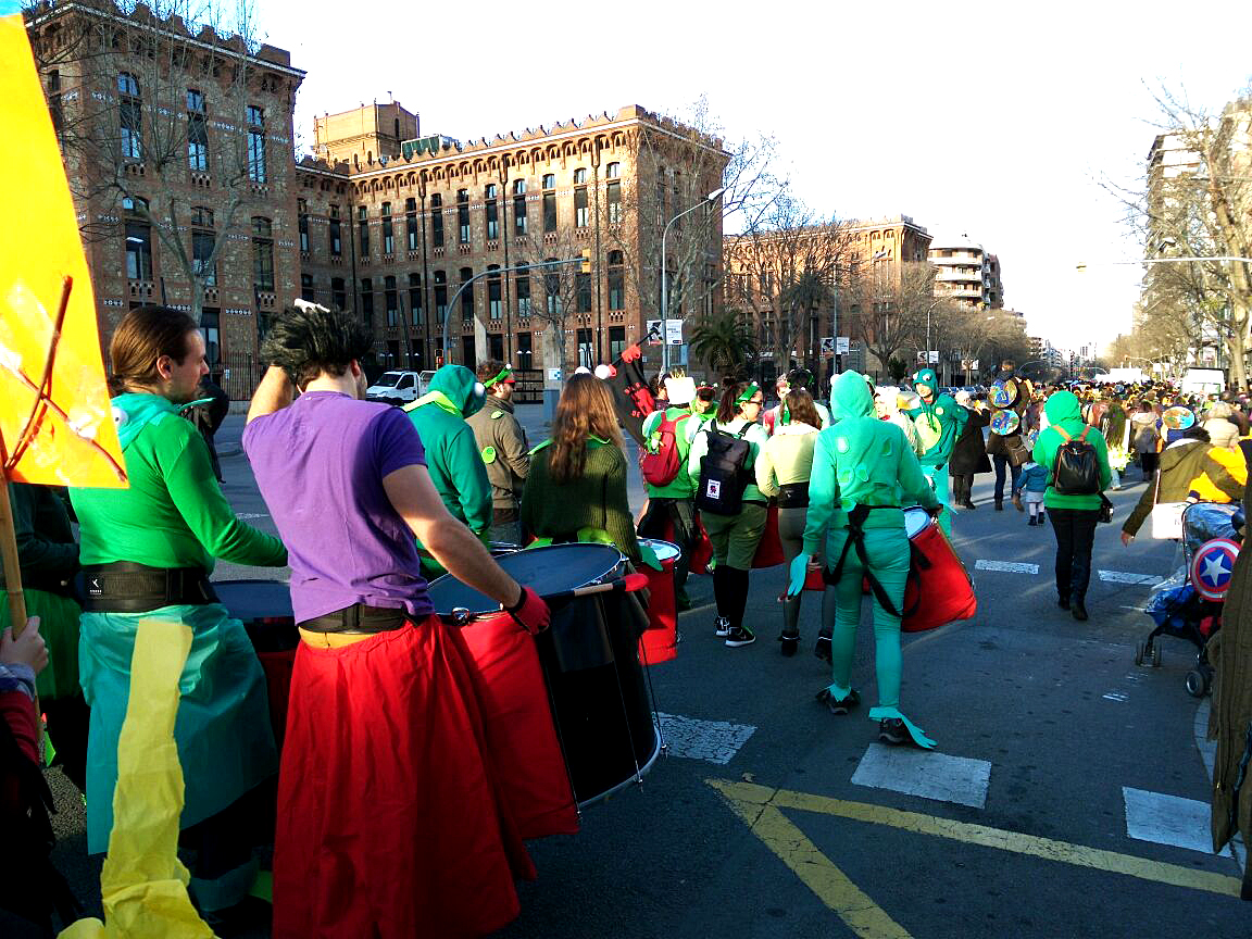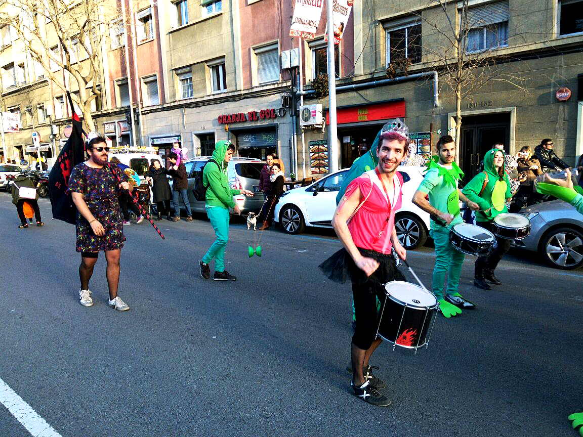 El dissabte 14 de febrer, per la tarda, desprès de recuperar forces amb un matí de Carnestoltes a Sant Gervasi prou intens, arribaba la Gran Rua de Carnaval de Les Corts! Aquest any la comitiva plena de disfresses irreverents i de fantasia partia dels Jardins de Bacardí, continuava per Travessera de Les Corts i enfilava Carles III, amb un recorregut innovador: passar pel Casc Antic del barri des de Carles III amb Dolors Masferrer. Continuant amb Plaça Comas, Remei, Plaça Concòrdia, Solà, Numància i Plaça de Can Rosés, on finalitzava la rua.