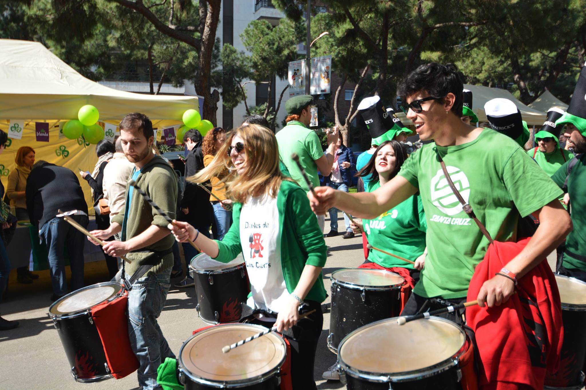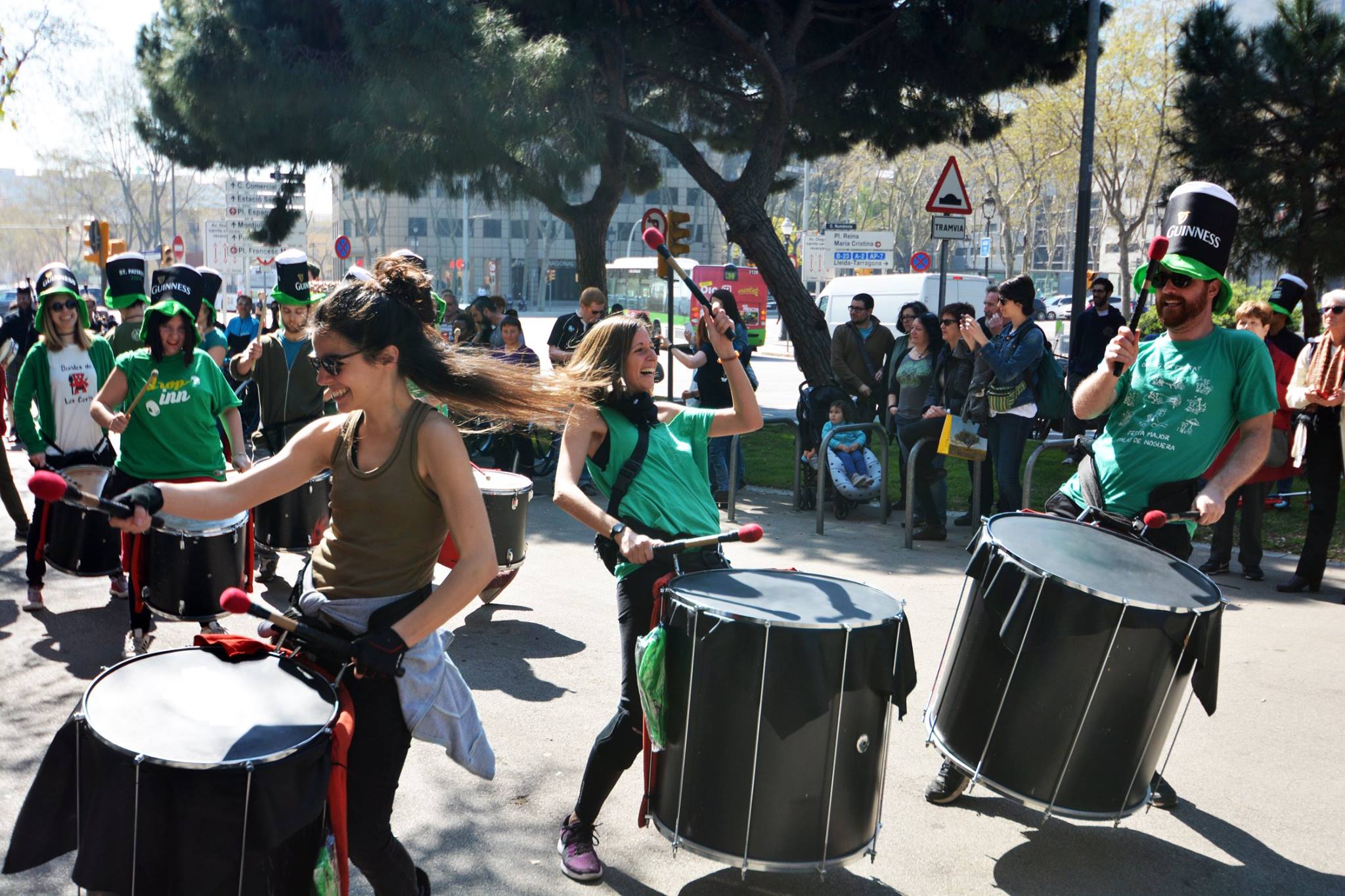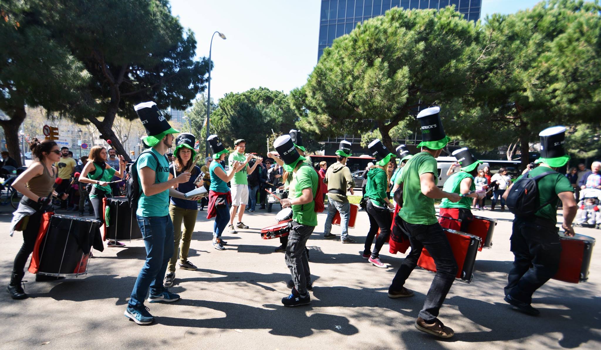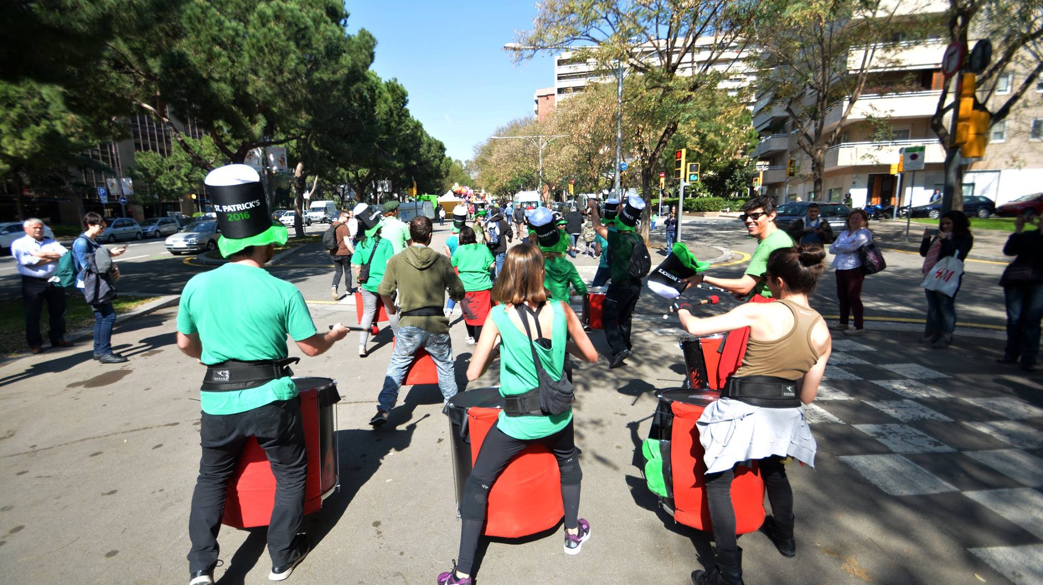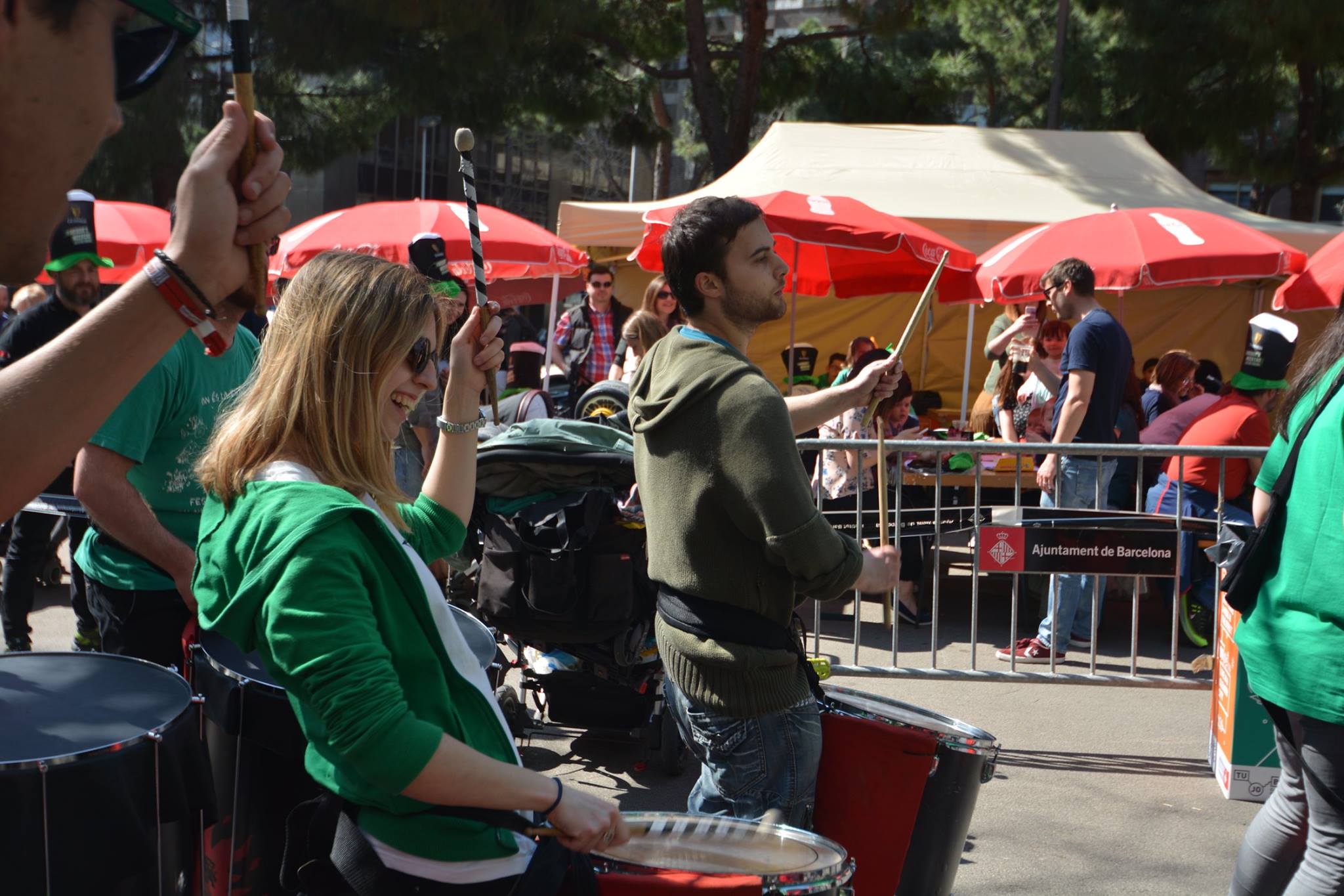 A les 11:30 vam fer una gran tabalada pujant des de la Diagonal fins quasi bé a dalt de tot de Numància, on vam poder compartir un moment únic d’unió de cultures catalana i irlandesa, tocant juntament amb el grup de gaites celta, la City of Barcelona Pipe Band. Un cop vam acabar vam gaudir de la música irlandesa i dels balls típics que ens feien moure sense parar.