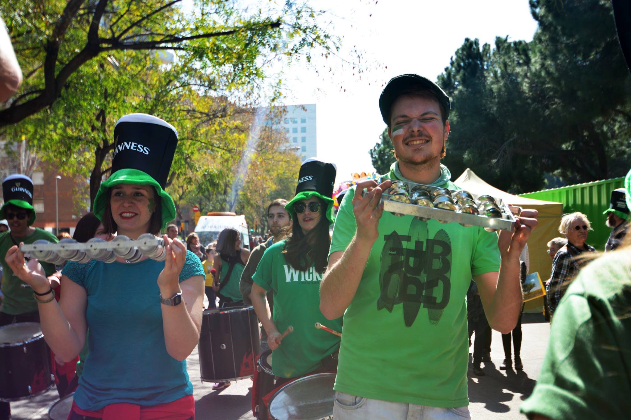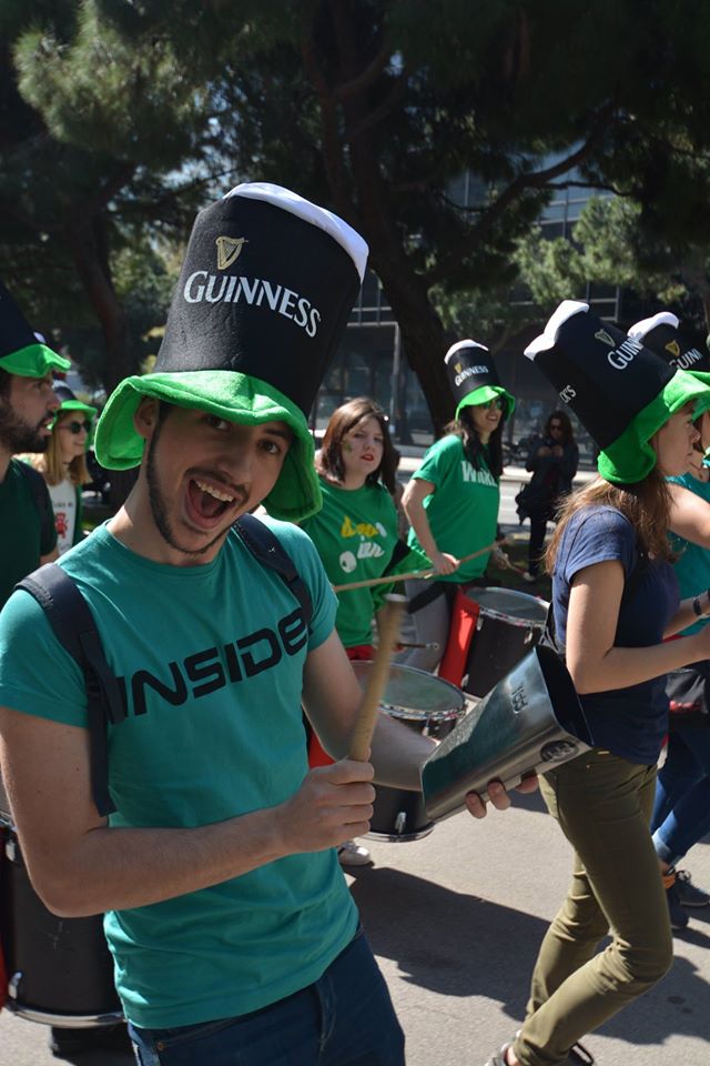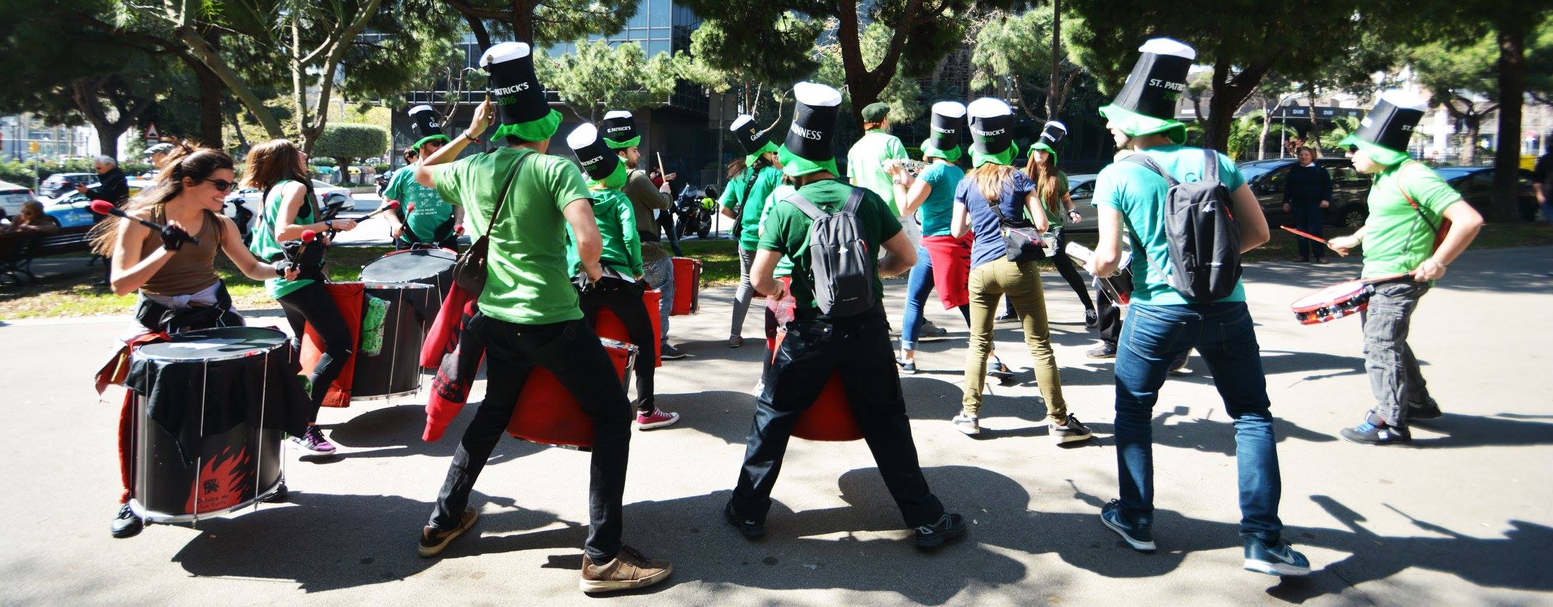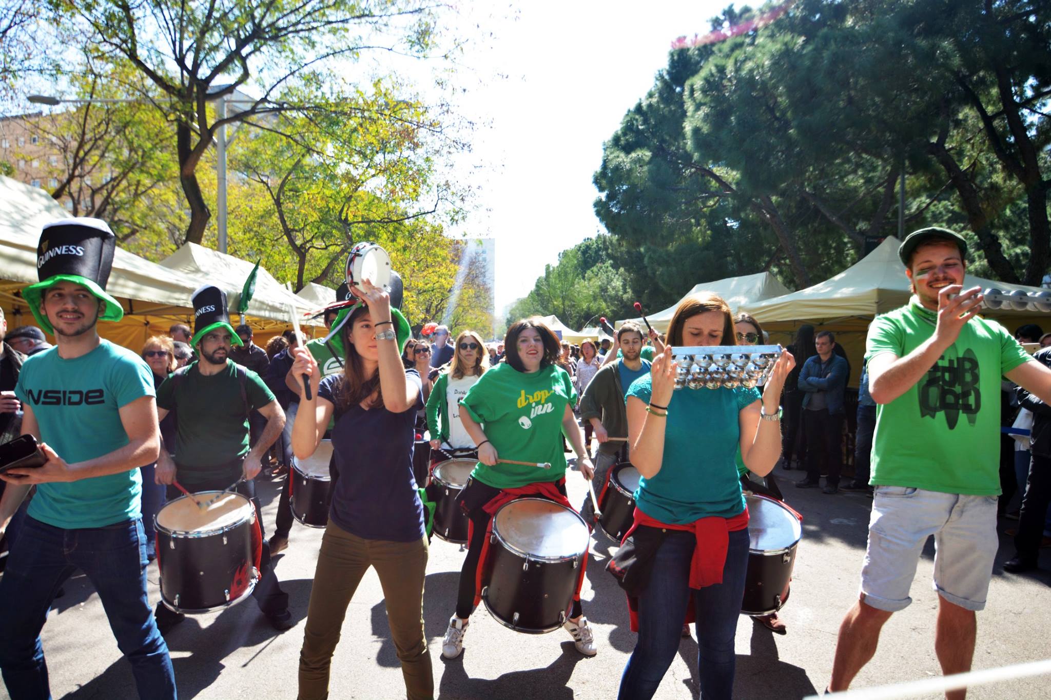 A les 11:30 vam fer una gran tabalada pujant des de la Diagonal fins quasi bé a dalt de tot de Numància, on vam poder compartir un moment únic d’unió de cultures catalana i irlandesa, tocant juntament amb el grup de gaites celta, la City of Barcelona Pipe Band. Un cop vam acabar vam gaudir de la música irlandesa i dels balls típics que ens feien moure sense parar.